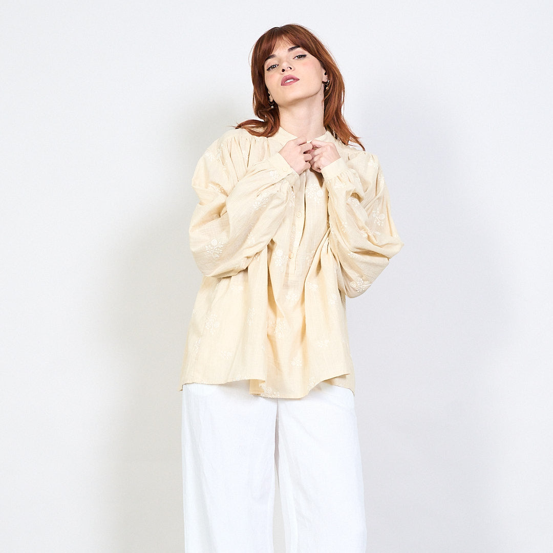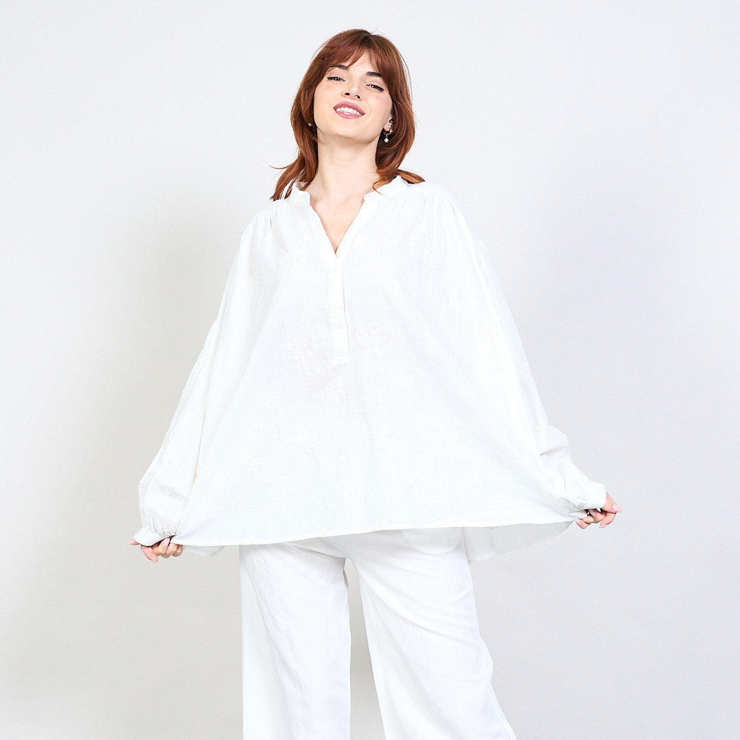 Κεντημένη μπλούζα floral V-λαιμό με πλεκτό χονδρικό ώμο