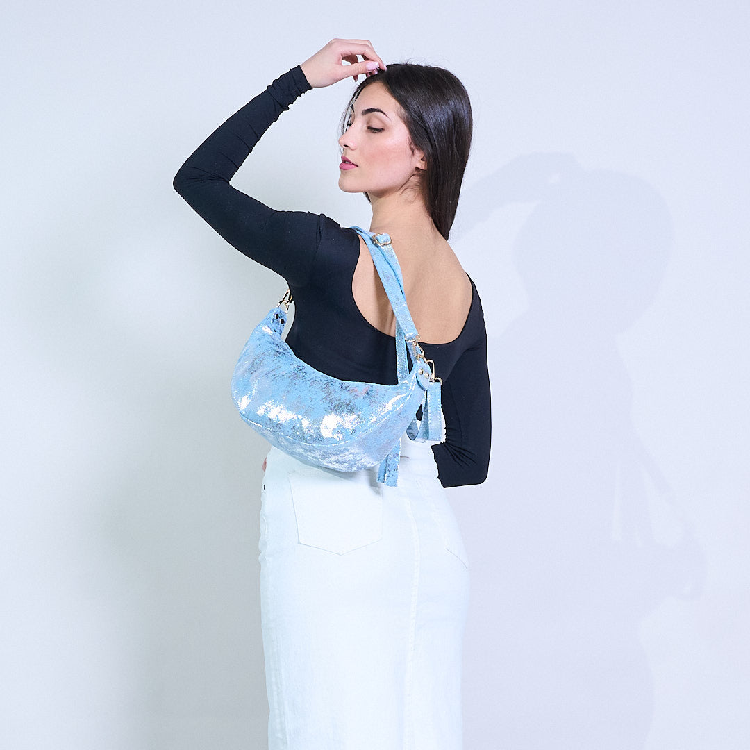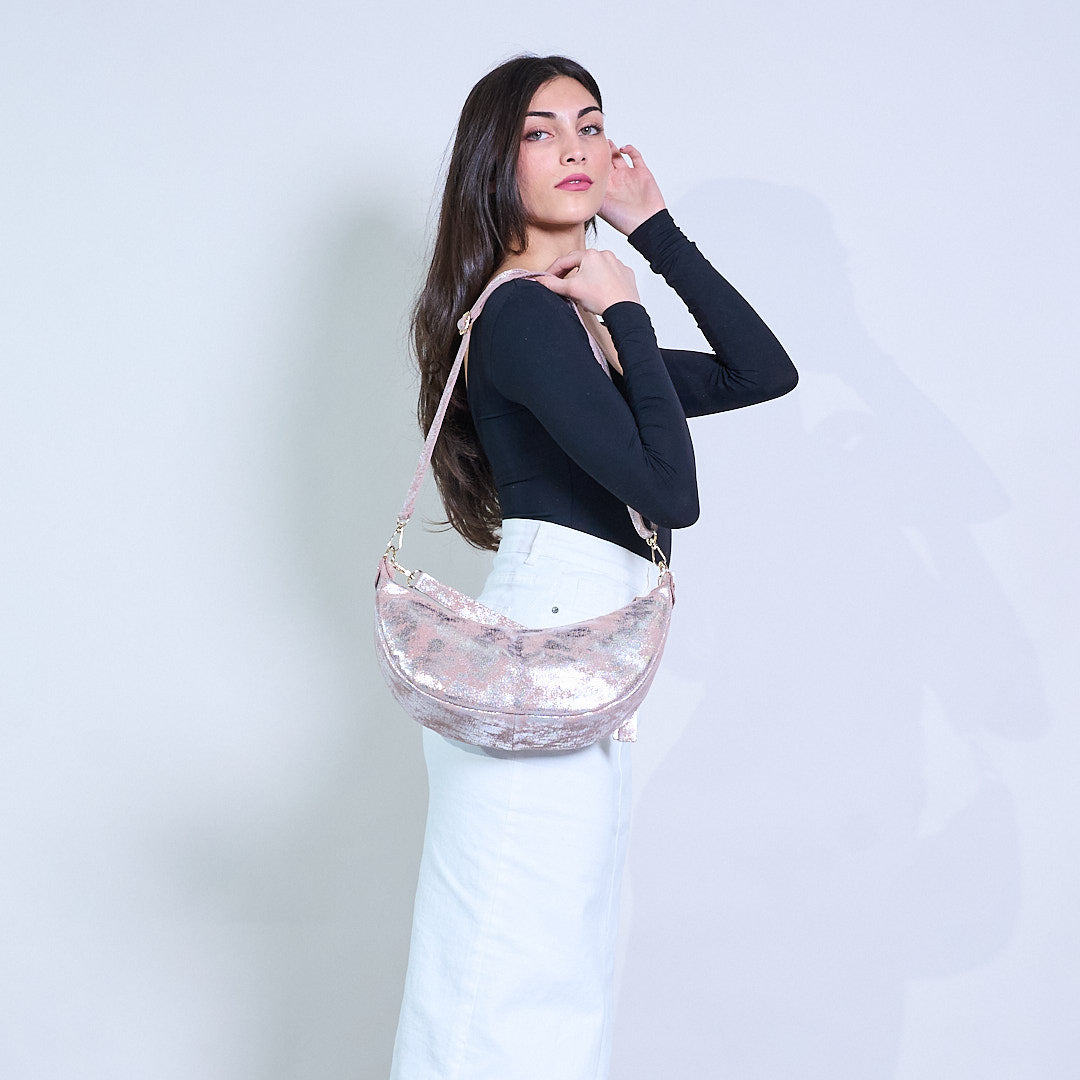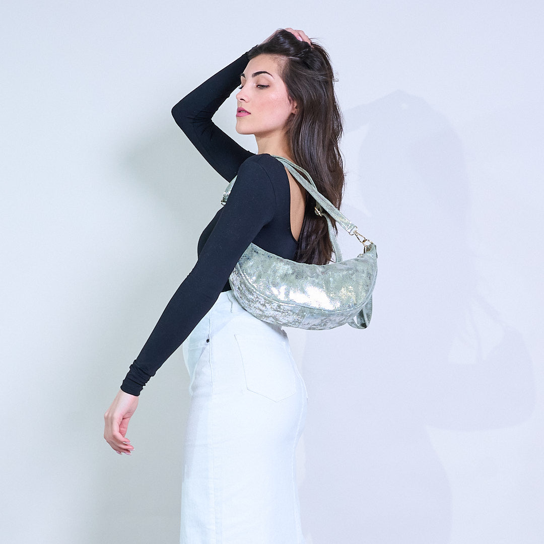 - Μαλακό ημισέληνο σιλουέτα κατασκευασμένη από λεπτό μεταλλικό δέρμα
