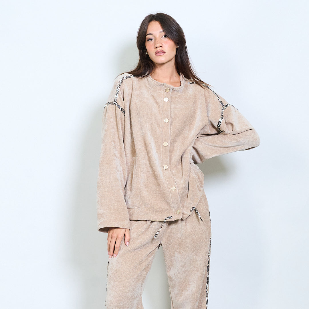 Κουμπί μπροστινό χαλαρό κατάλληλο ζακέτα με χονδρική εκτύπωση ζωικών εκτύπωσης