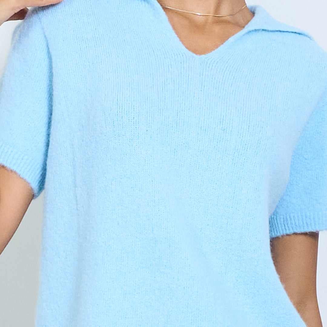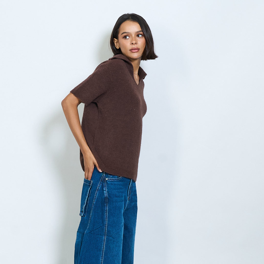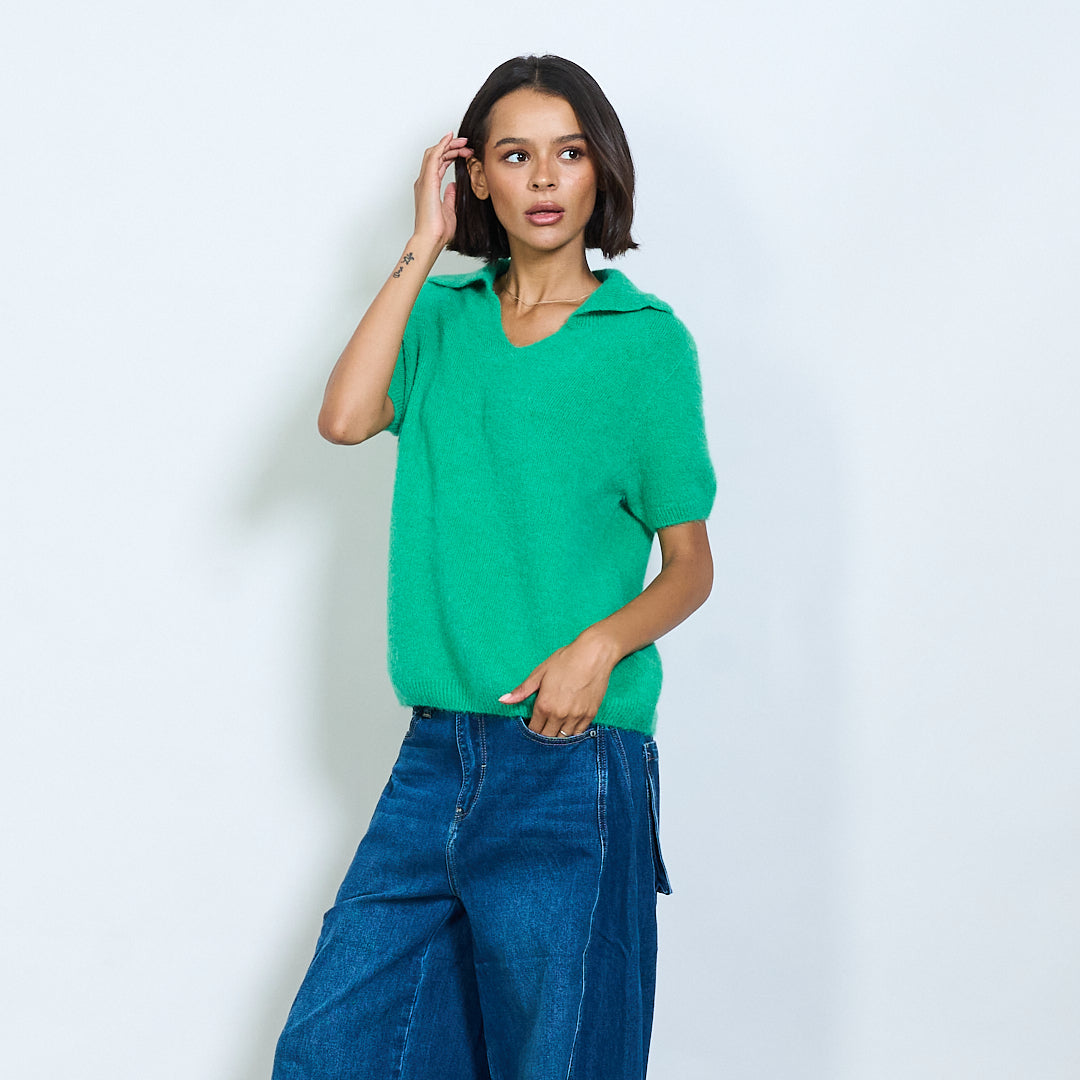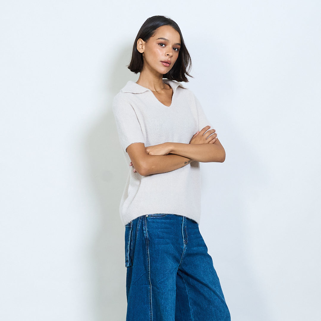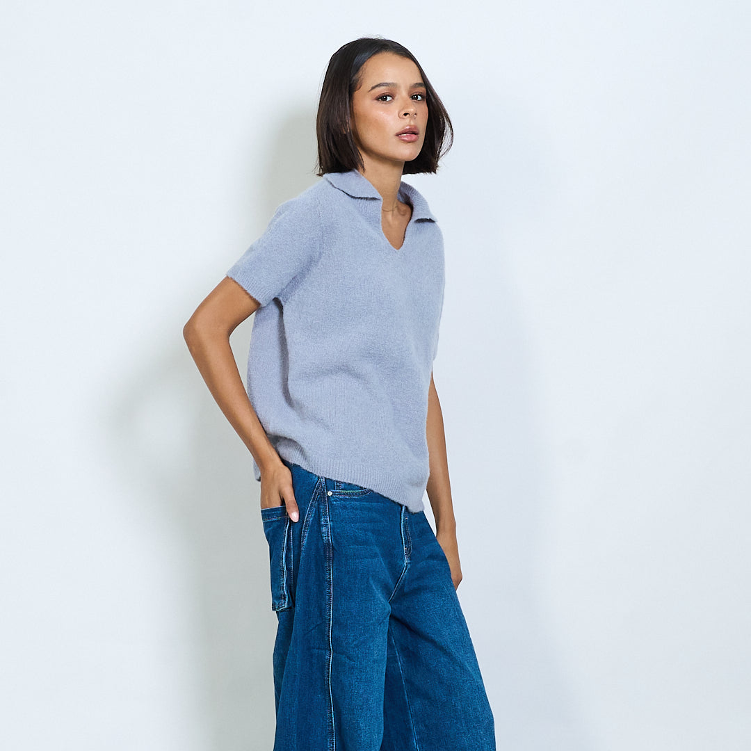 Μαλακό πλεκτό κοντό μανίκι Polo Collar Pullover Χονδρικό