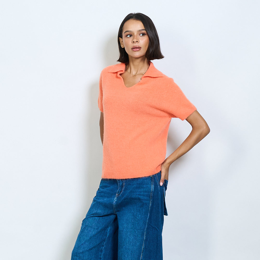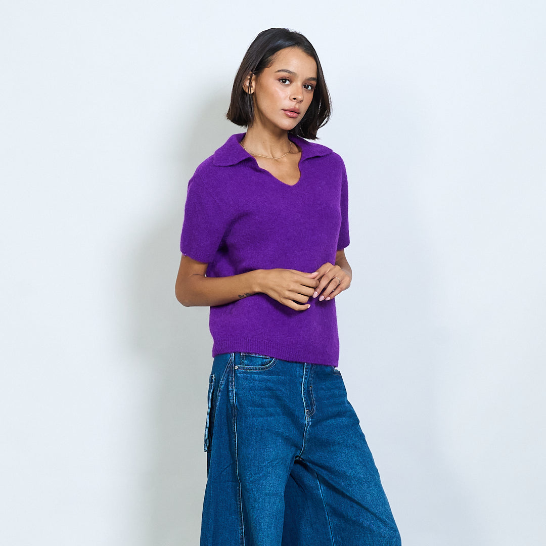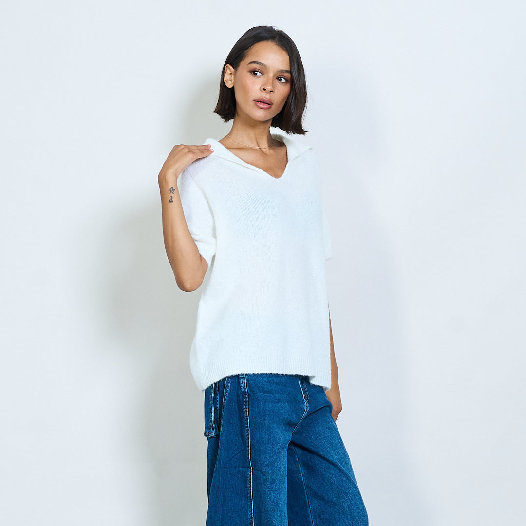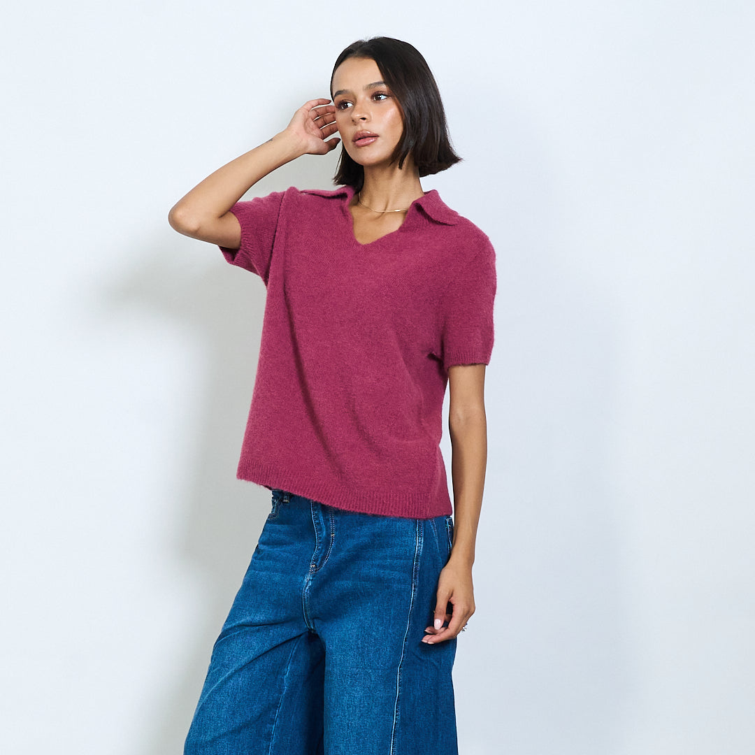 Μαλακό πλεκτό κοντό μανίκι Polo Collar Pullover Χονδρικό