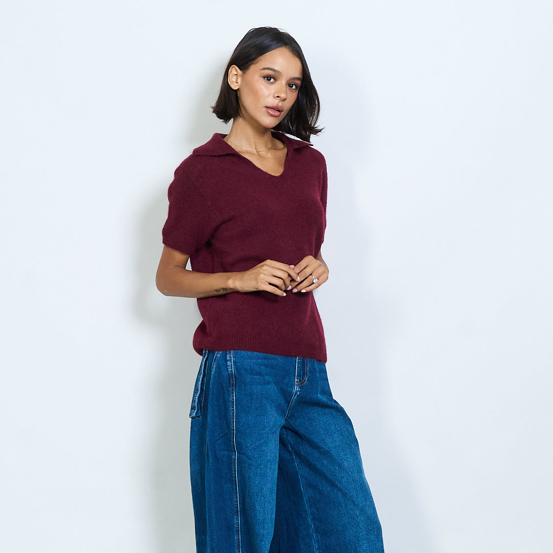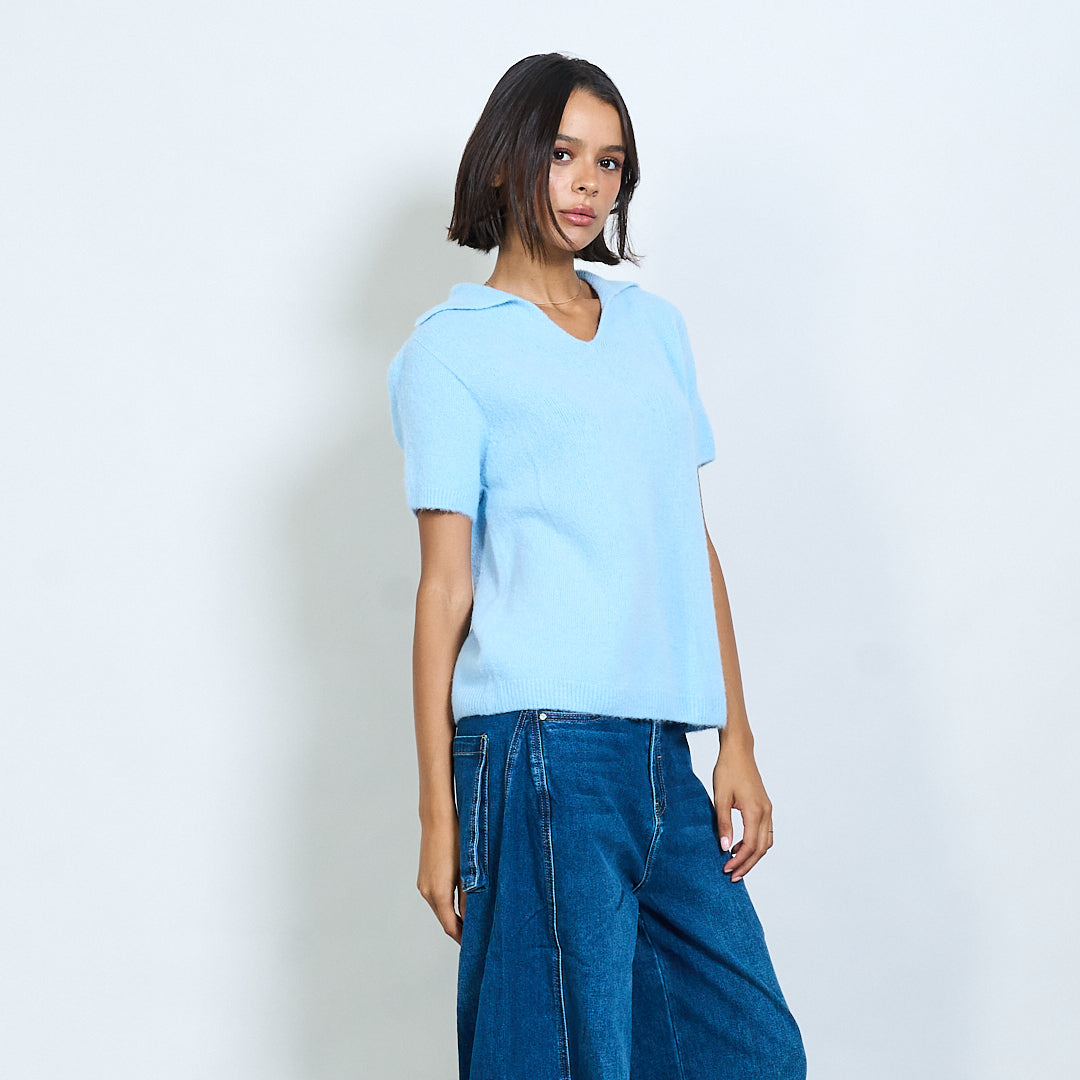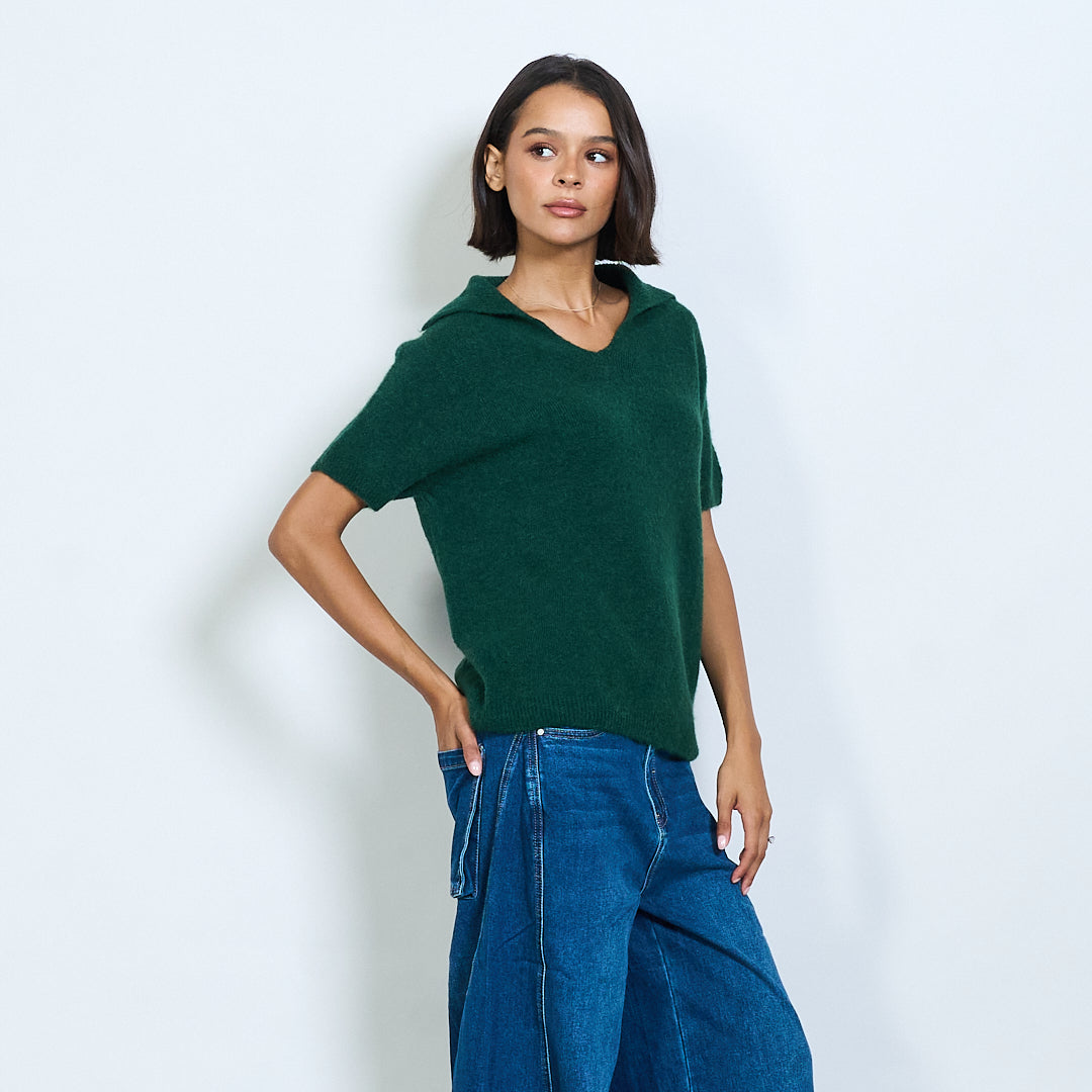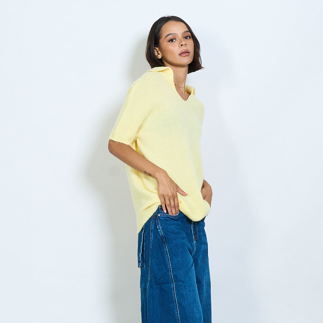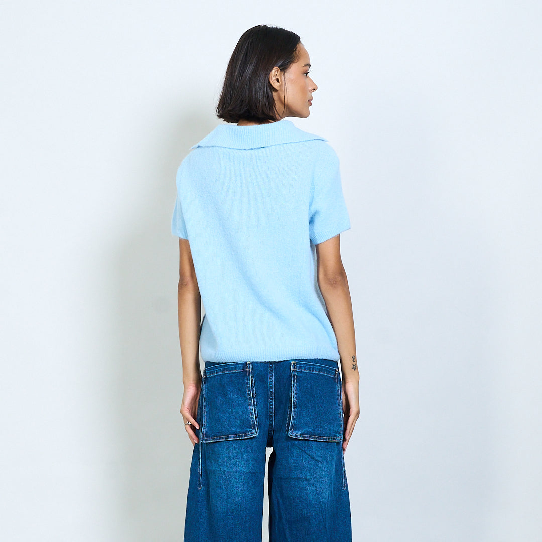Μαλακό πλεκτό κοντό μανίκι Polo Collar Pullover Χονδρικό
