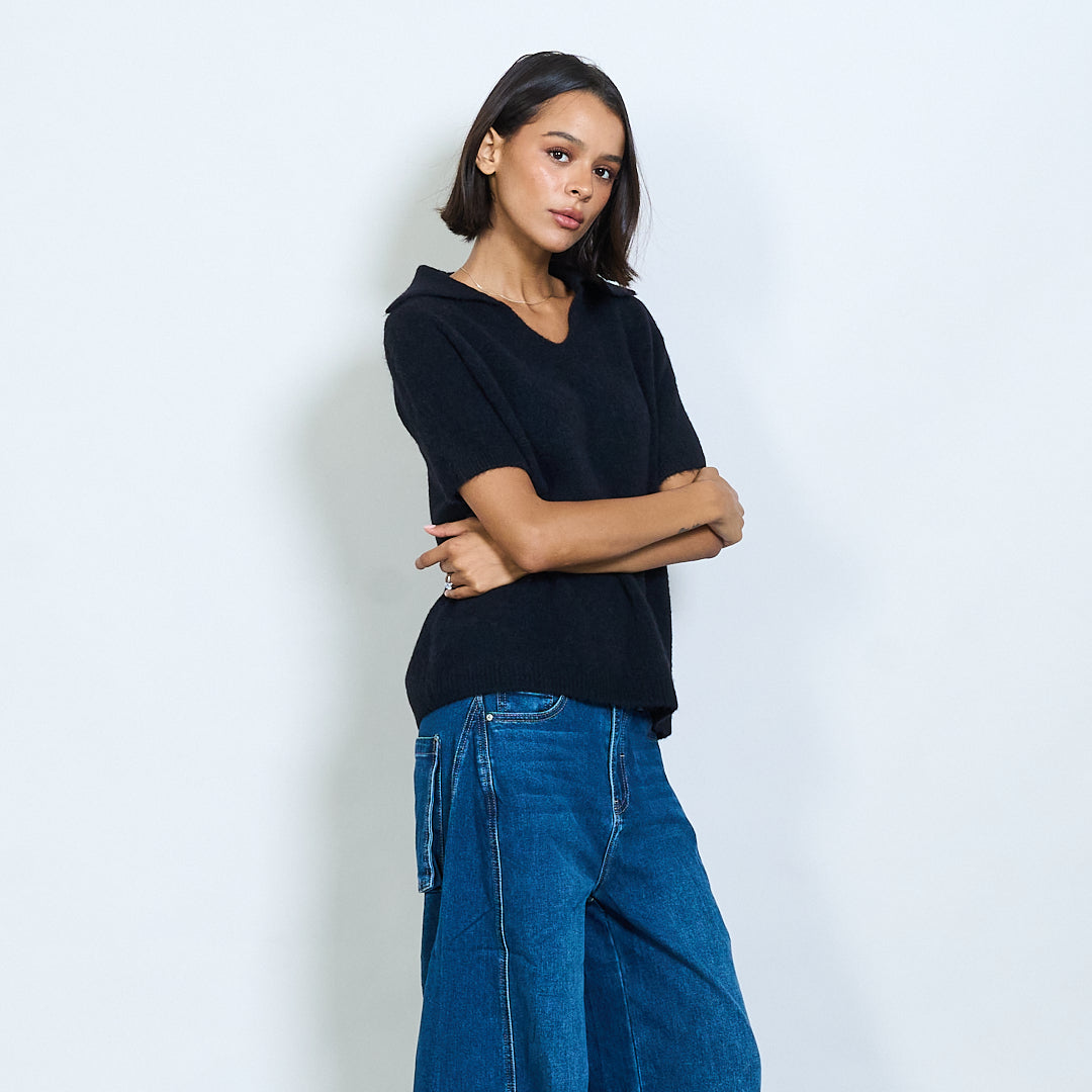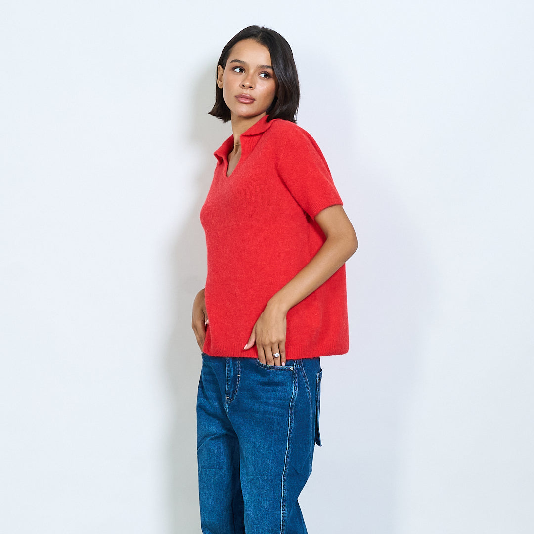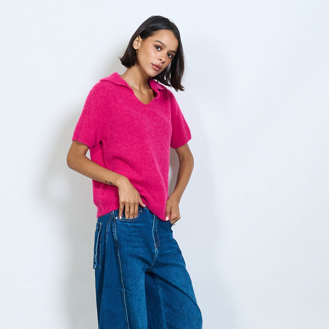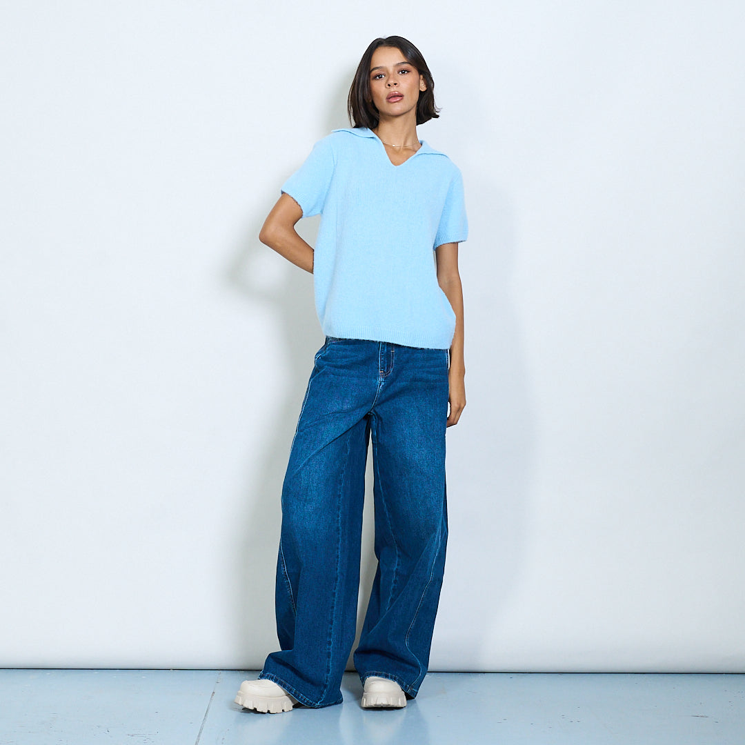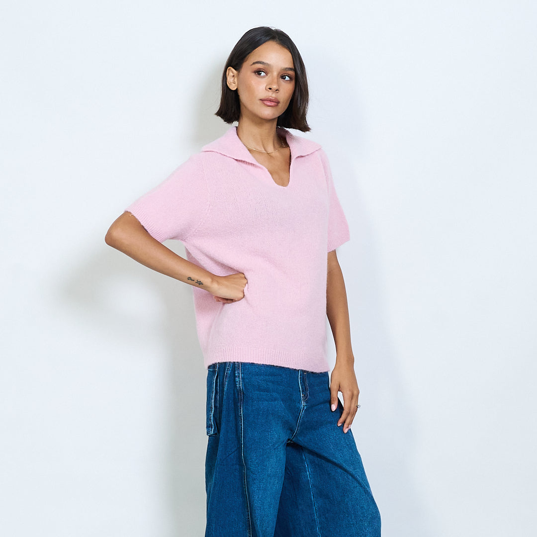 Μαλακό πλεκτό κοντό μανίκι Polo Collar Pullover Χονδρικό