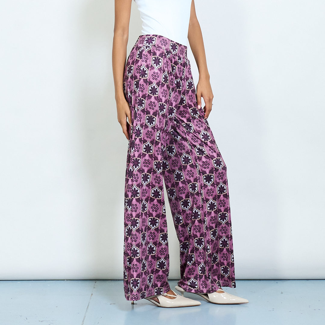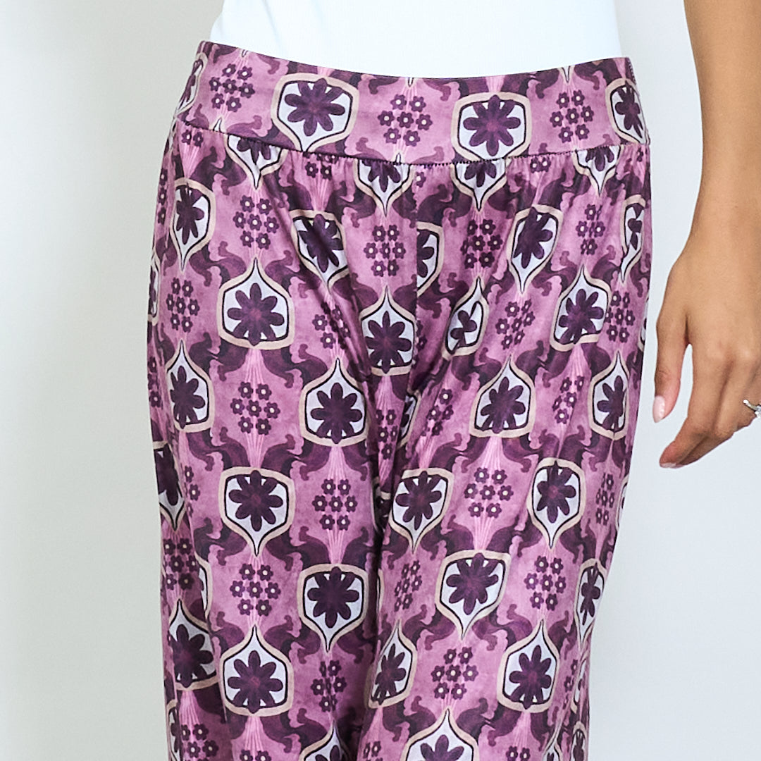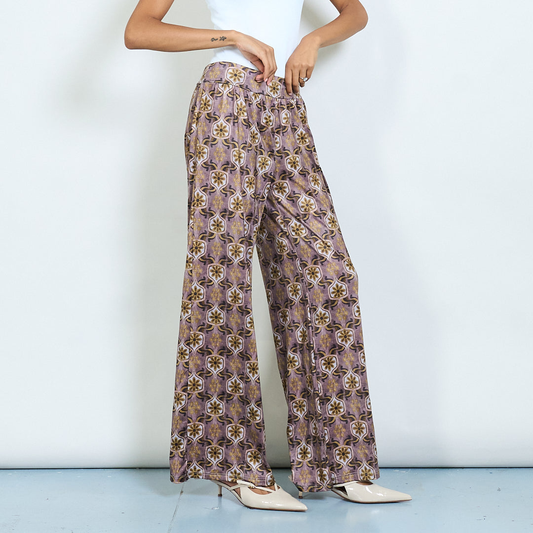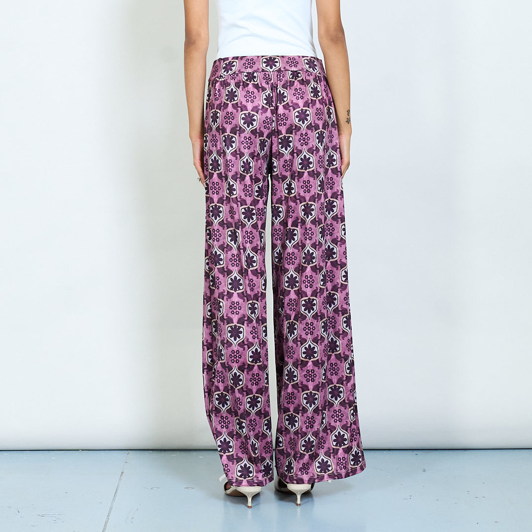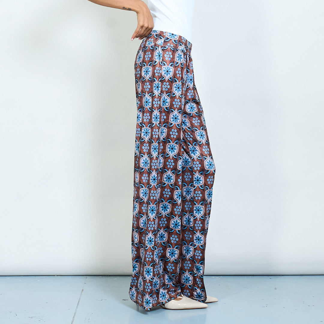 Ρετρό floral εκτύπωση σατέν παντελόνι χονδρικής πώλησης