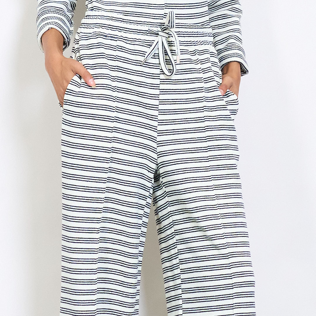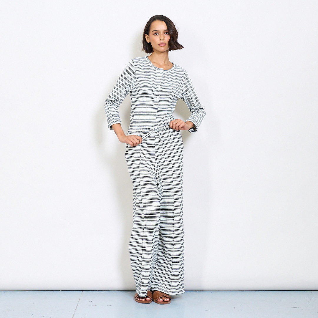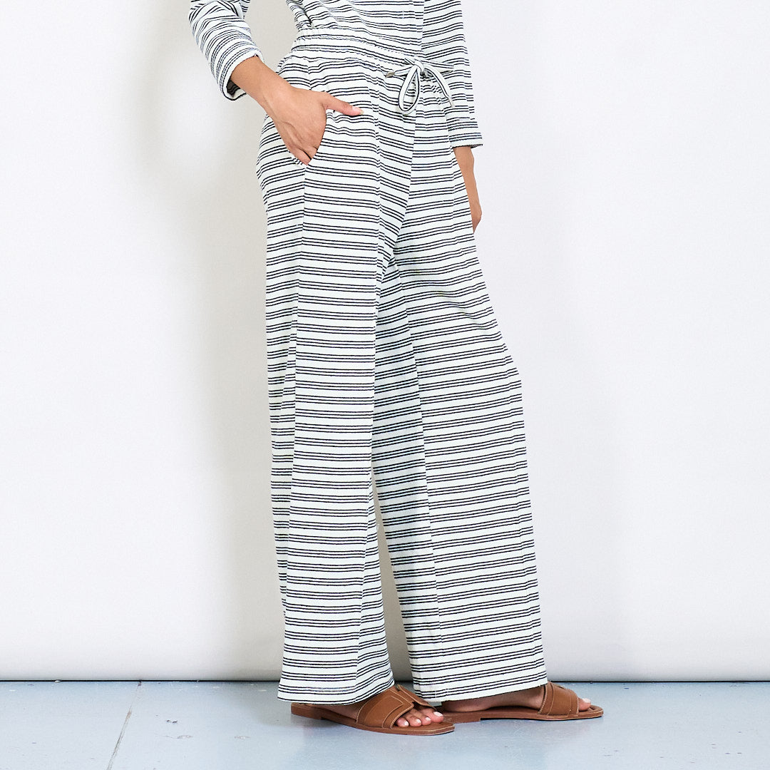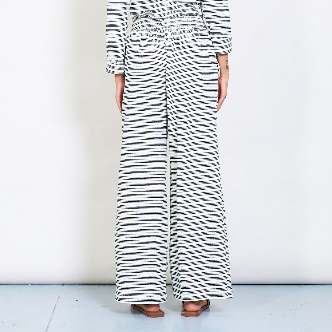 - Μαλακά και ρευστά παντελόνια ευρείας πόδι με οριζόντια λωρίδα