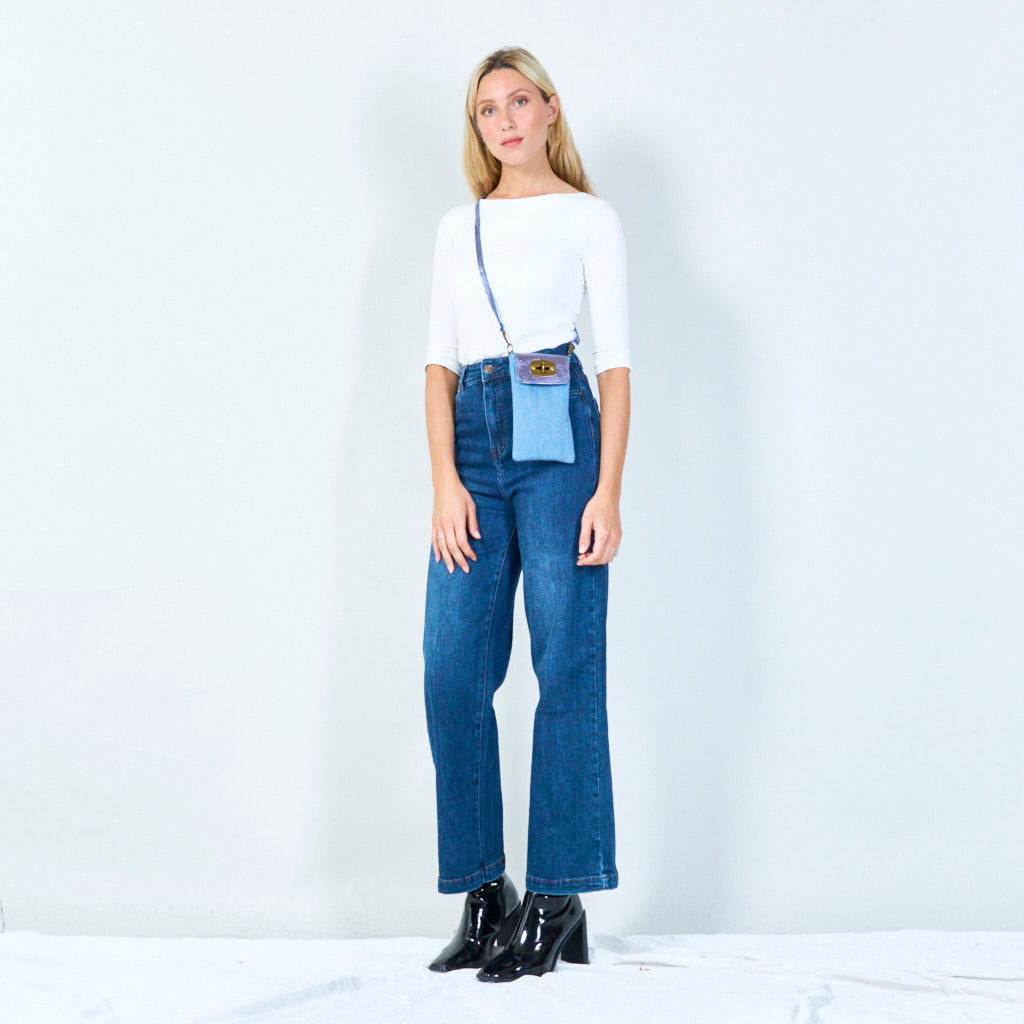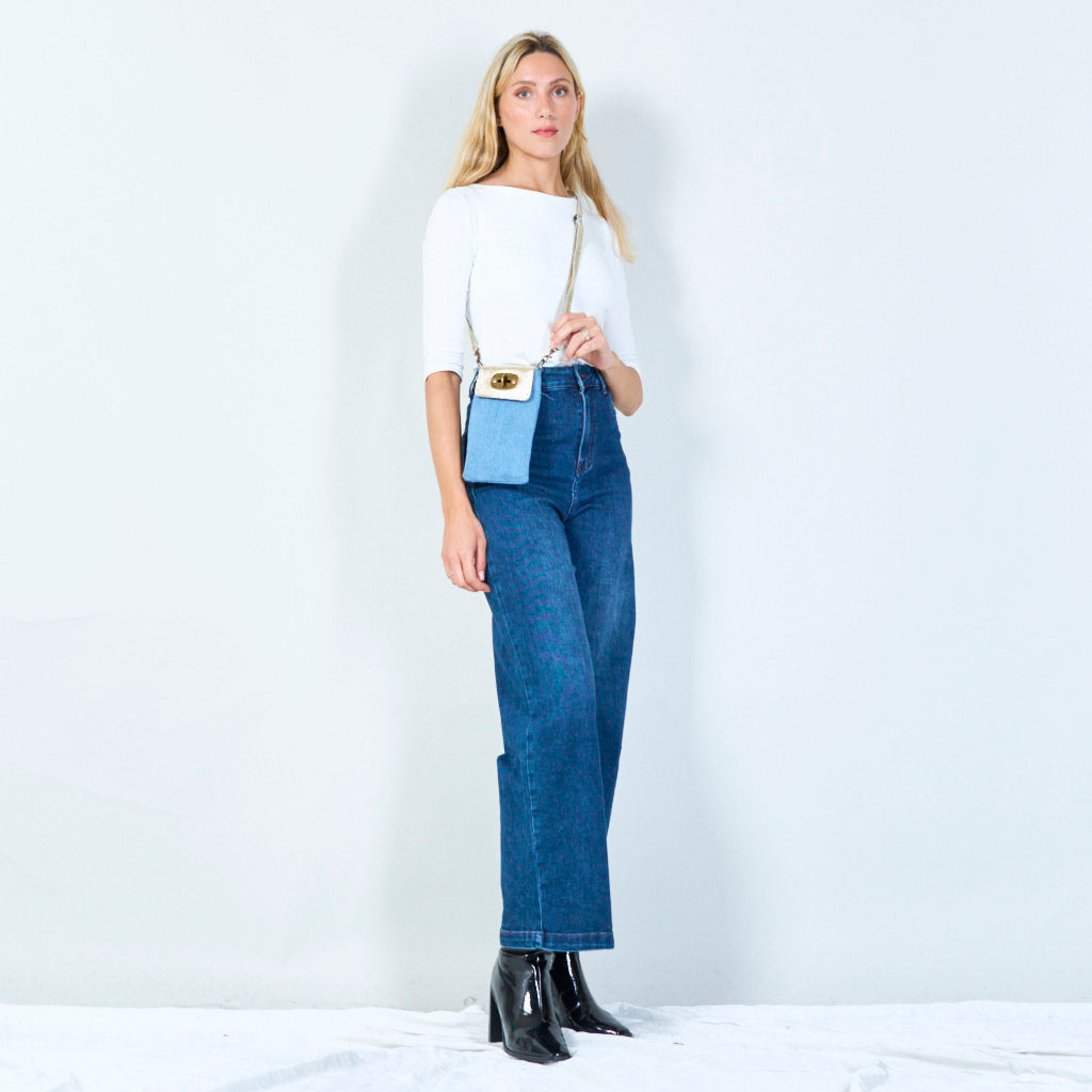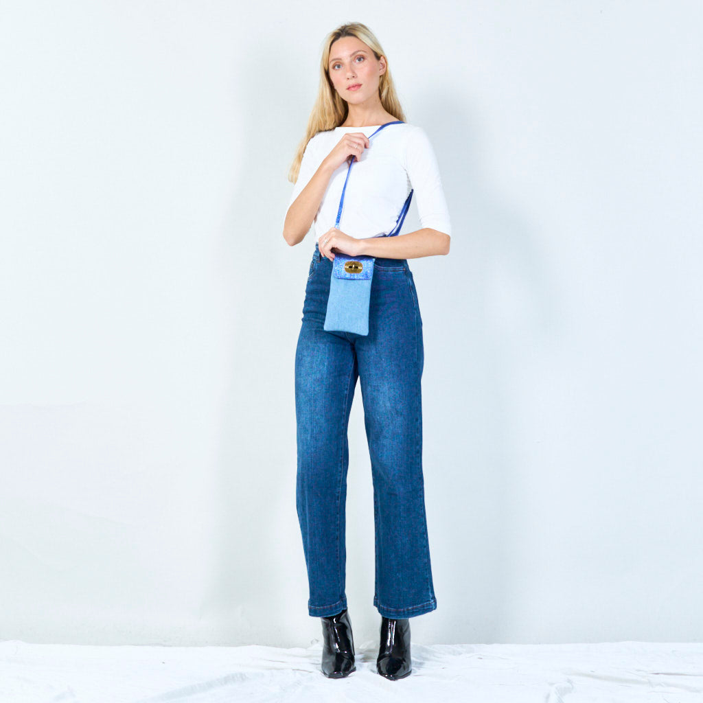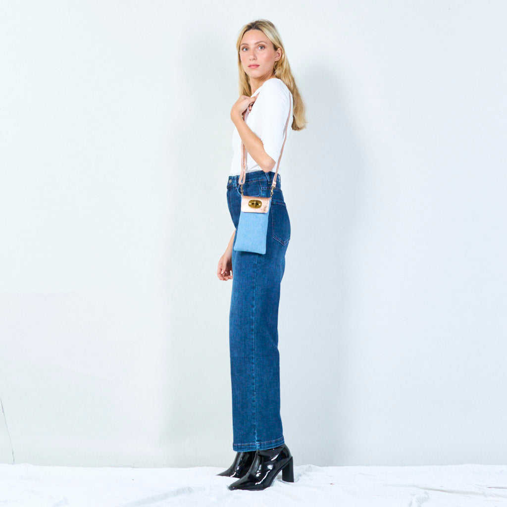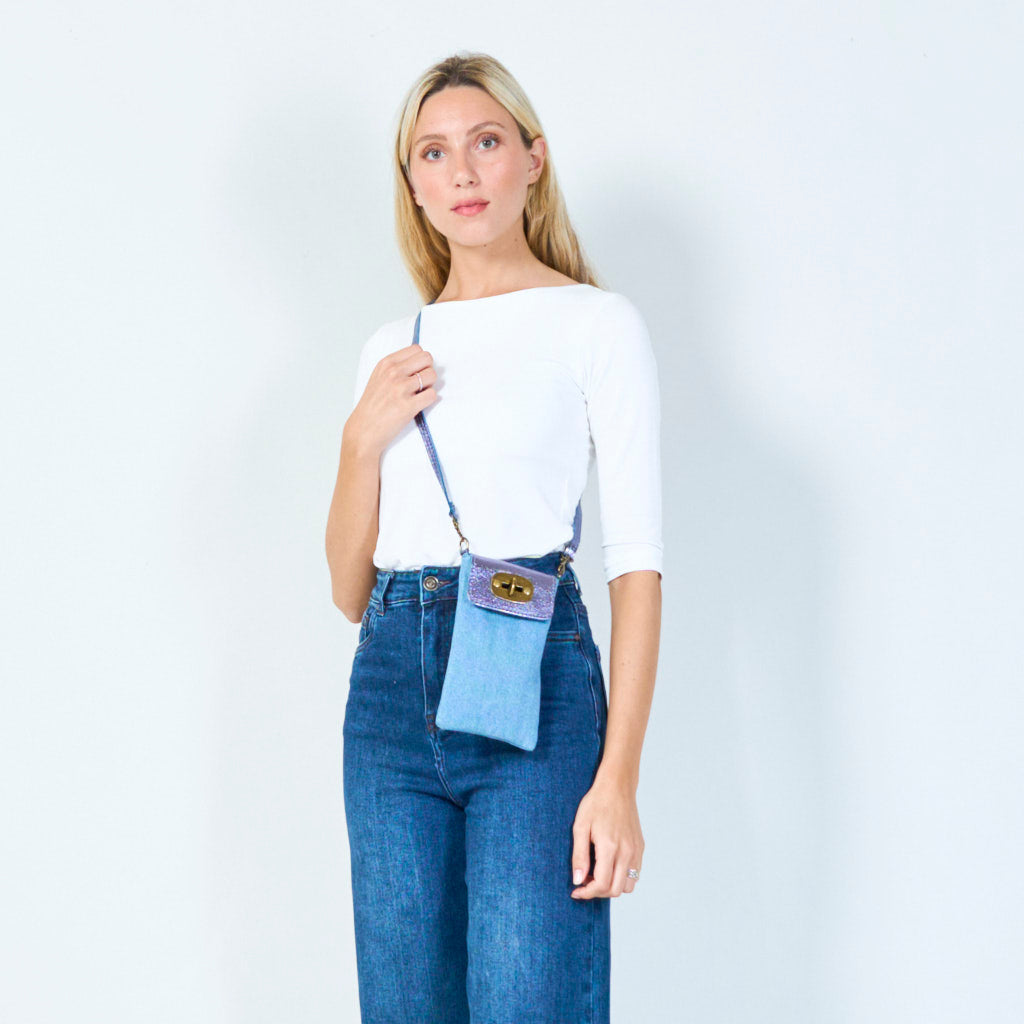 Denim και δερμάτινο crossbody pouch χονδρική πώληση