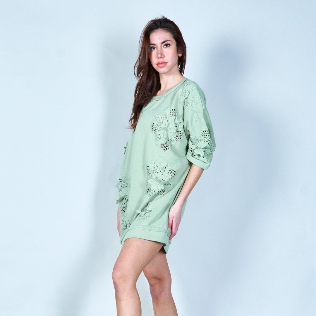 Floral κεντημένο μπλουζάκι με δυσκολίες χονδρικής πώλησης
