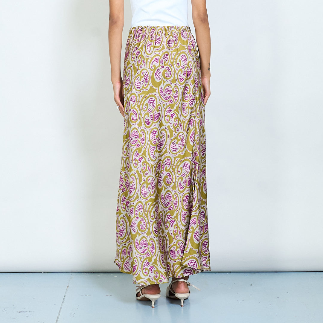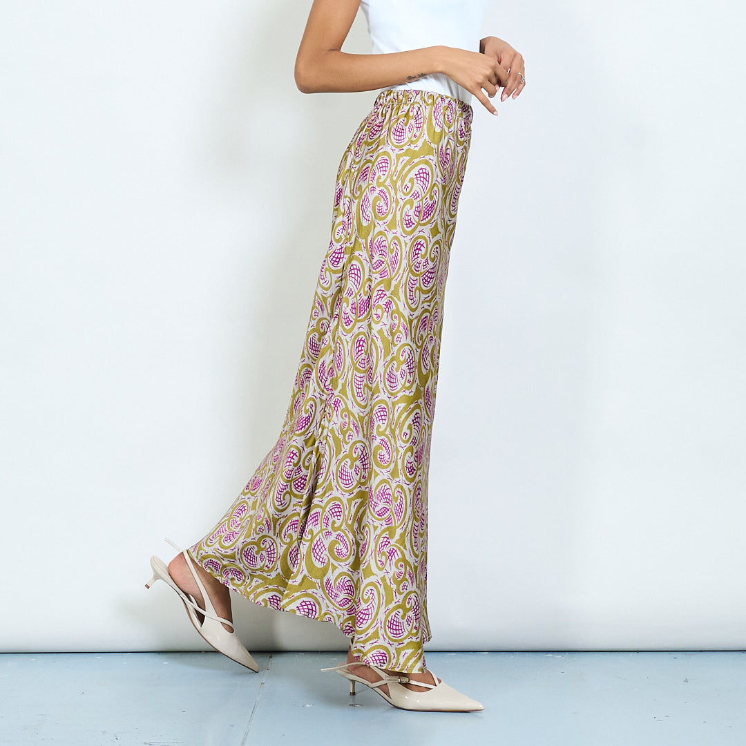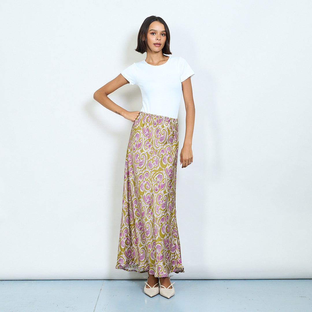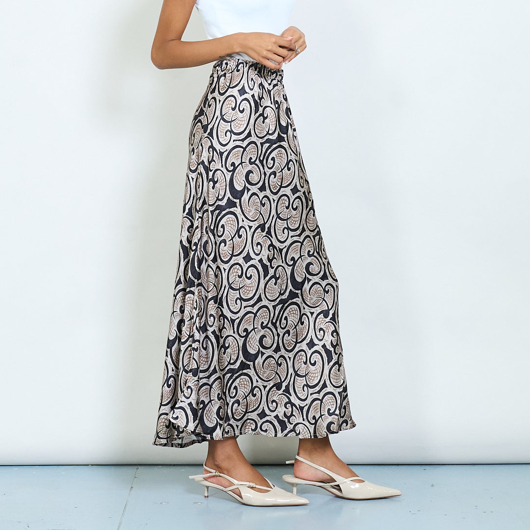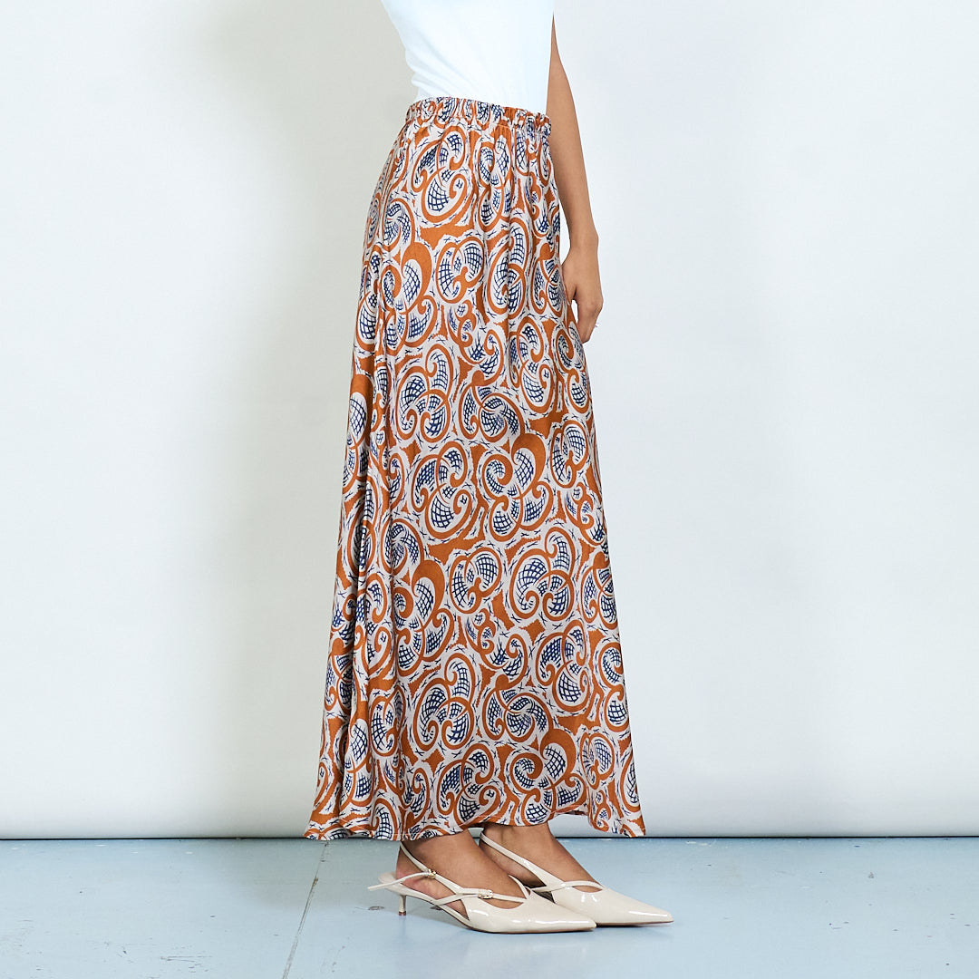 Paisley εκτύπωση σατέν midi φούστα χονδρικής πώλησης