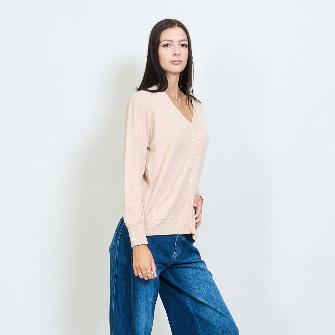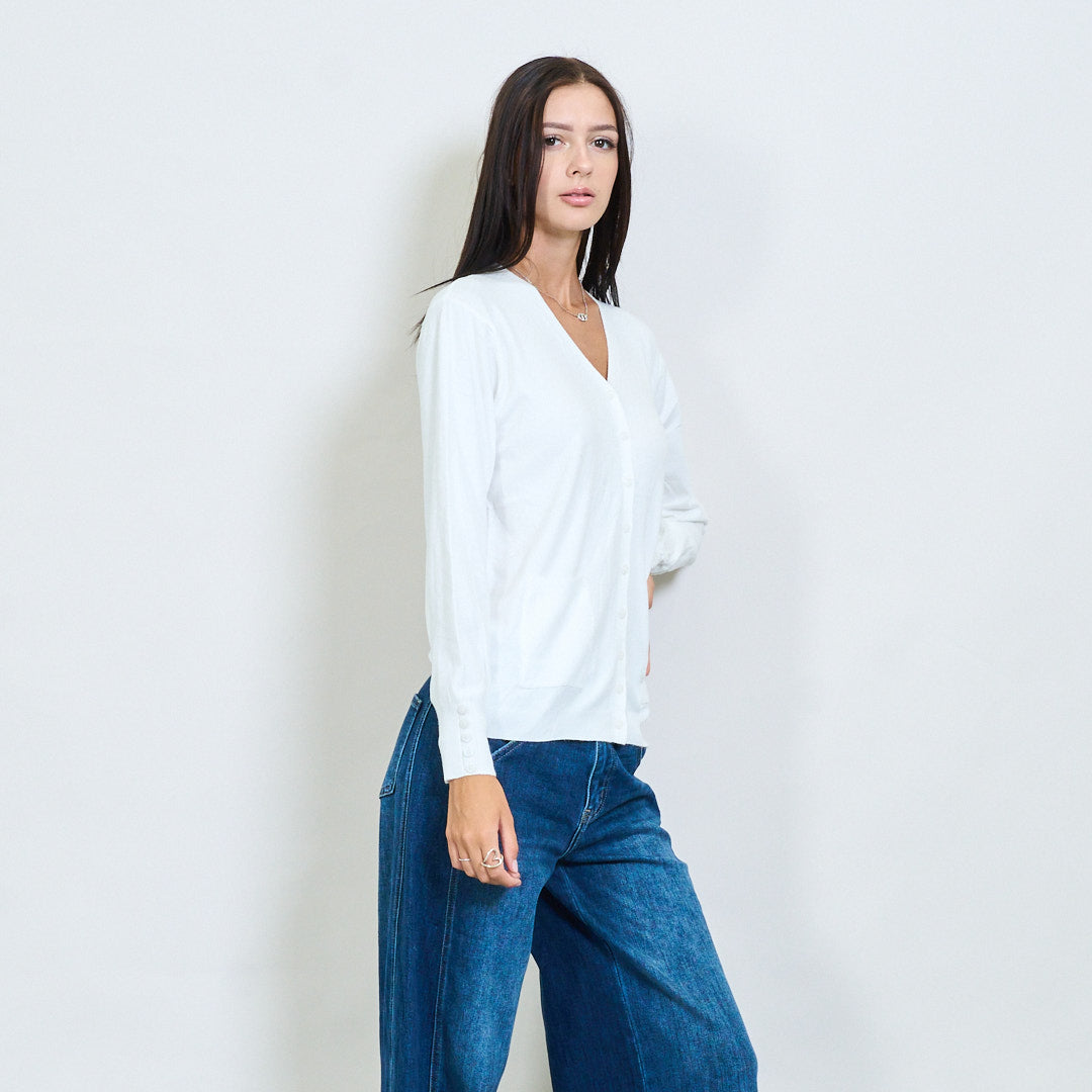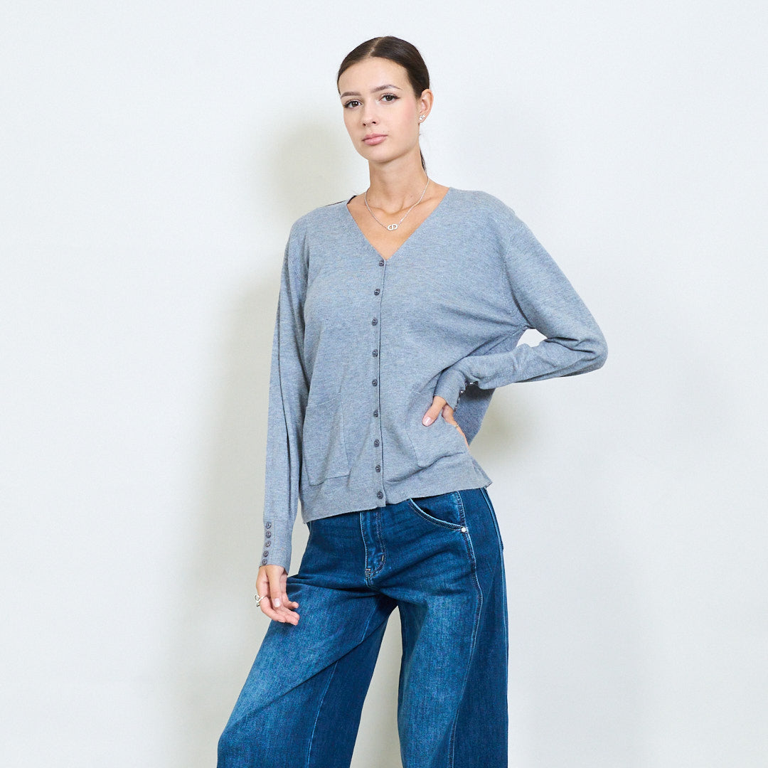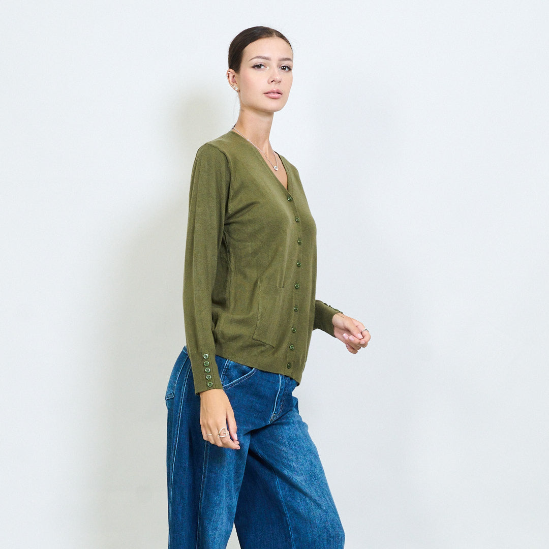 - Κλασική ζακέτα V-λαιμό με κλείσιμο κουμπιού-μπροστά