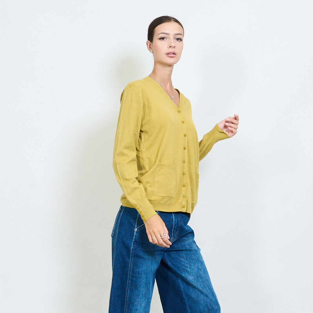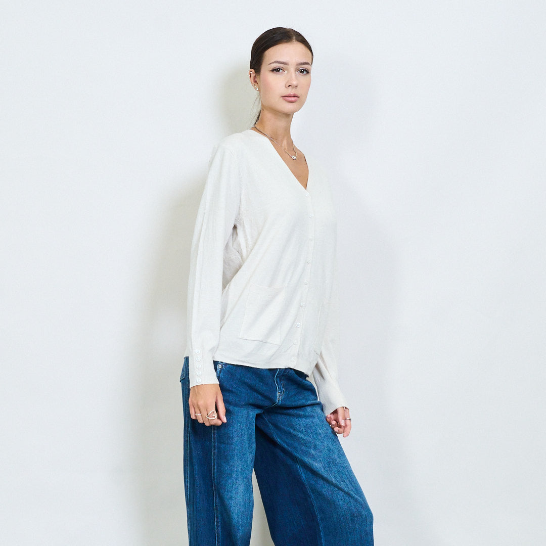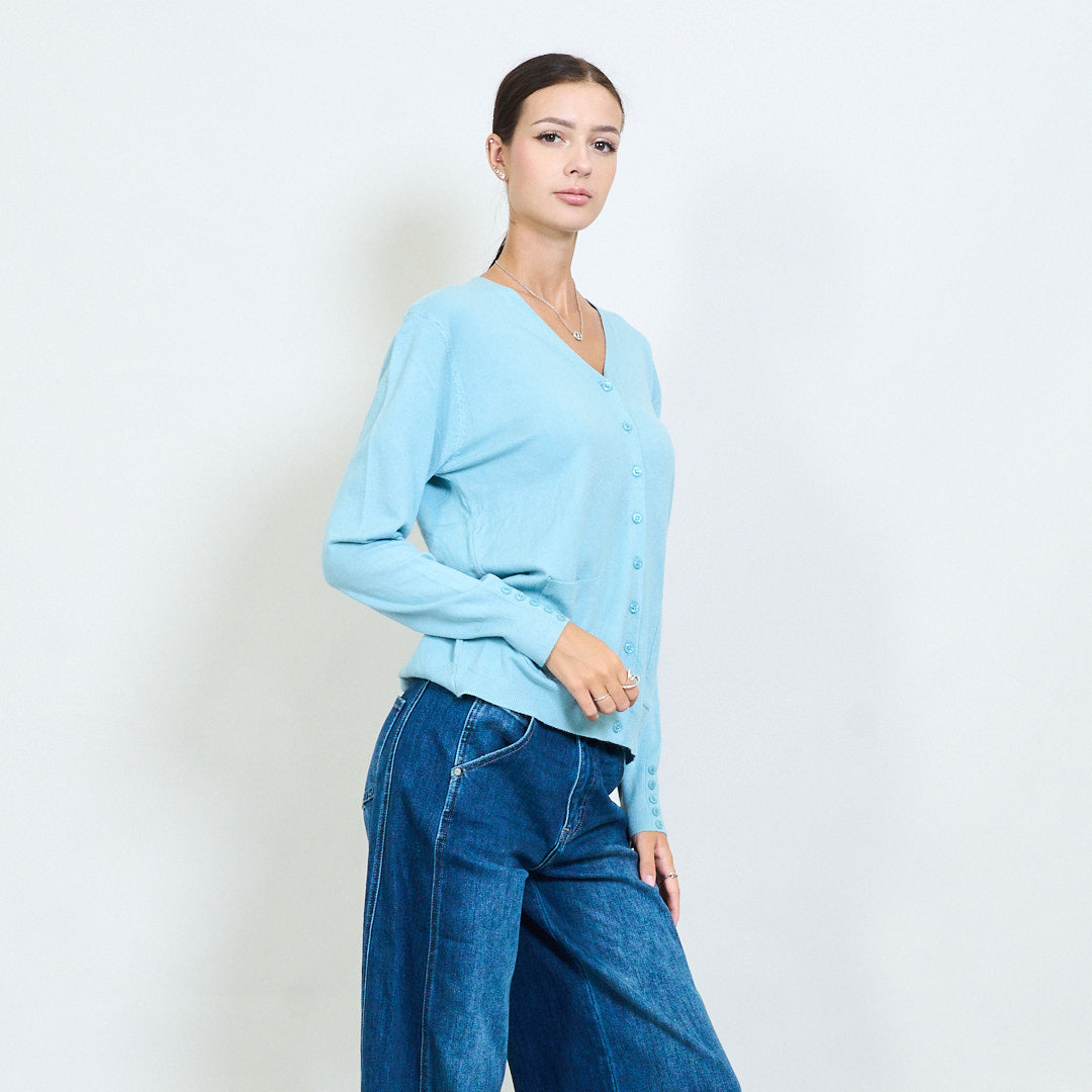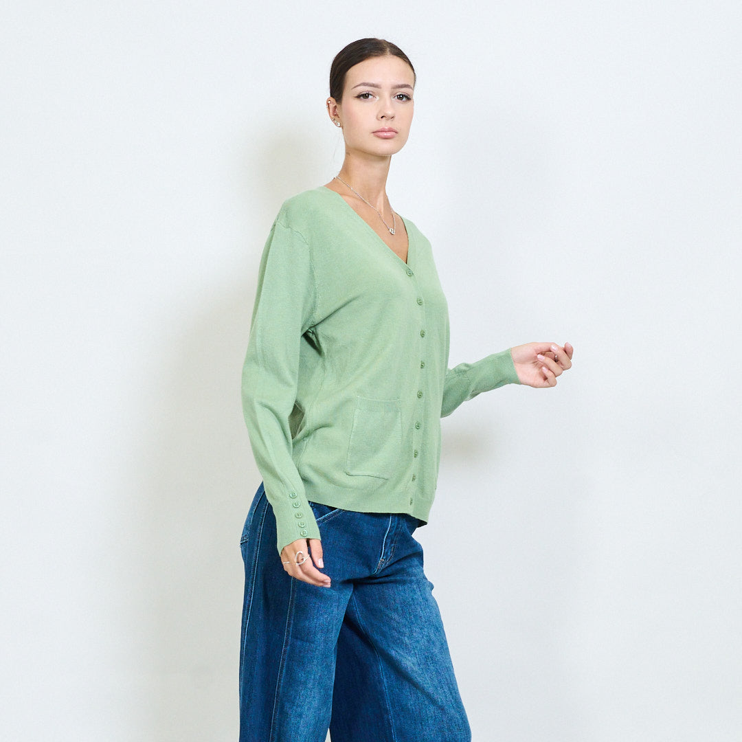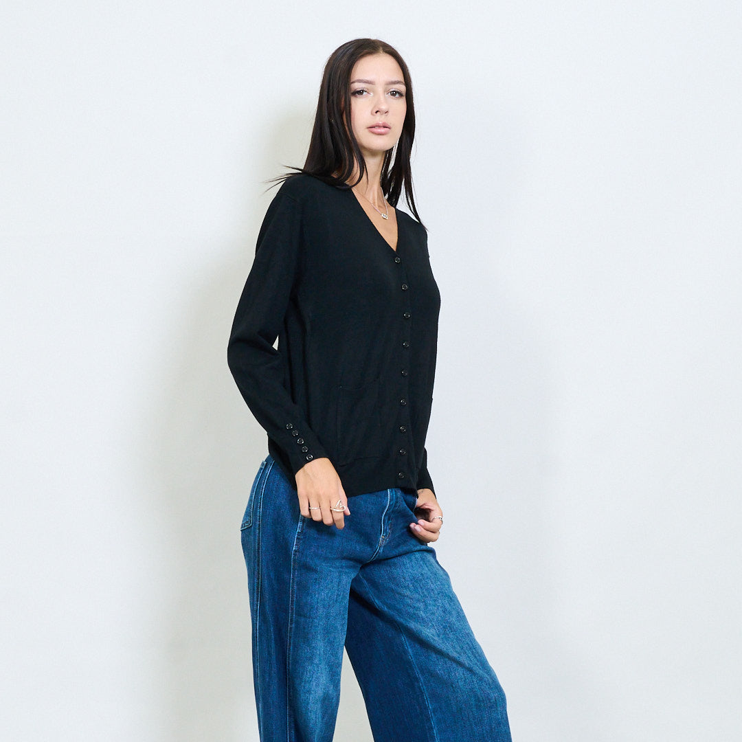 - Κλασική ζακέτα V-λαιμό με κλείσιμο κουμπιού-μπροστά