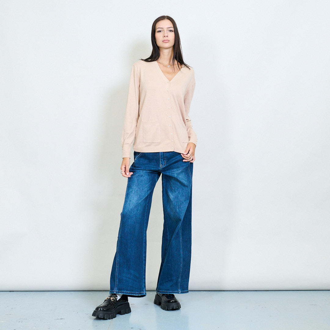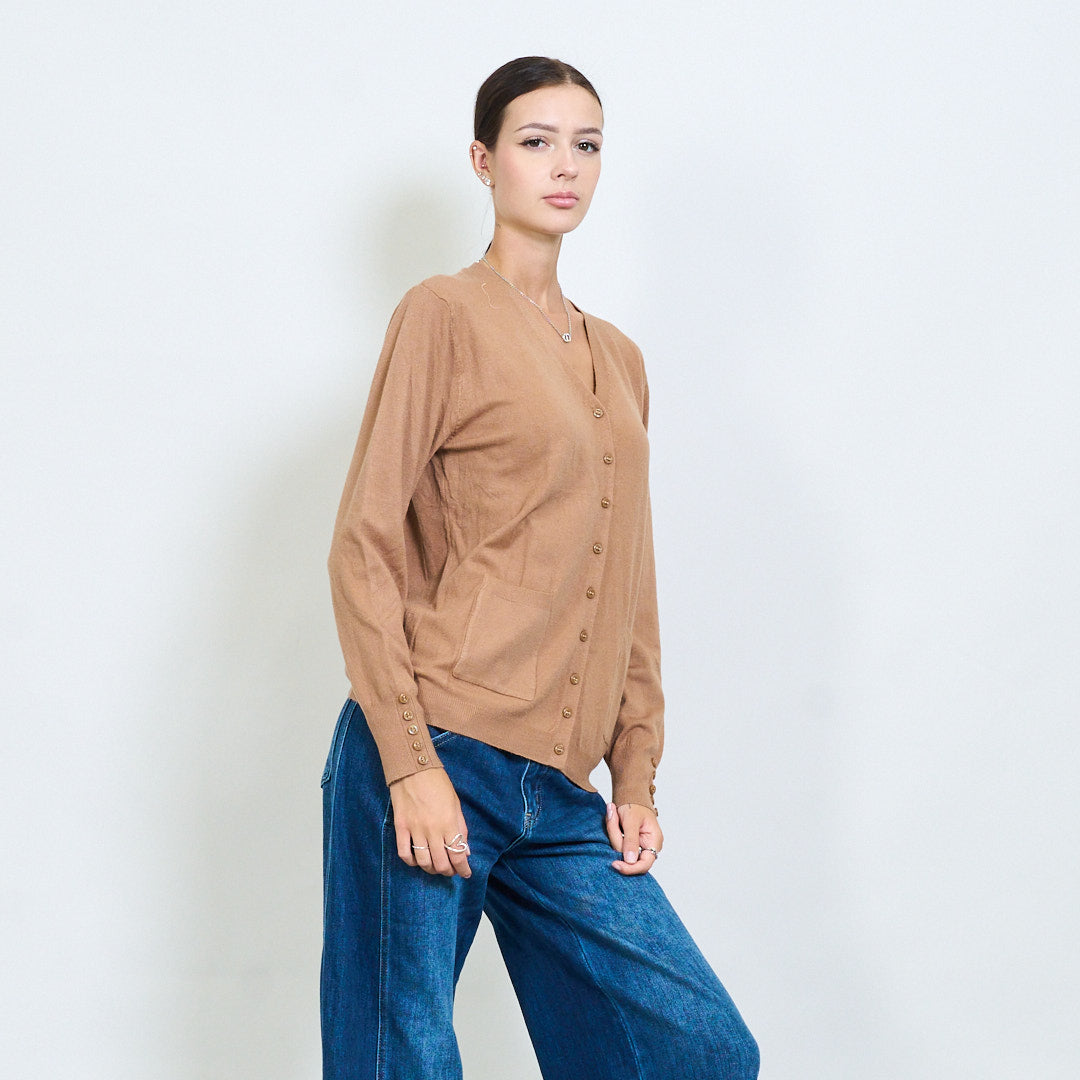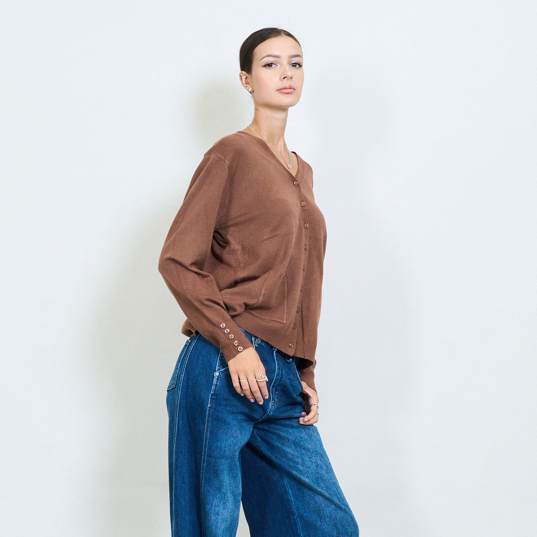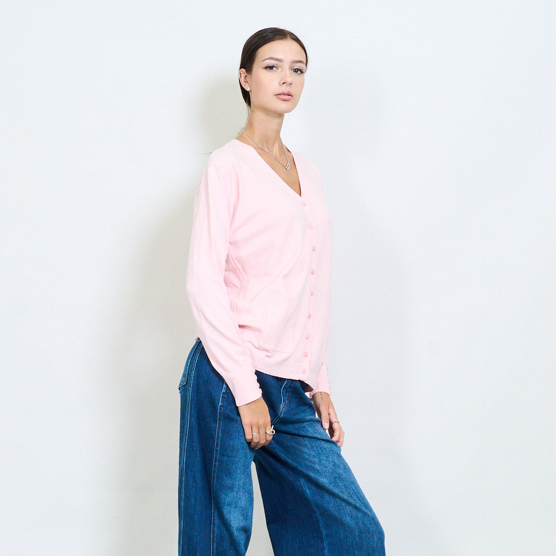 - Κλασική ζακέτα V-λαιμό με κλείσιμο κουμπιού-μπροστά