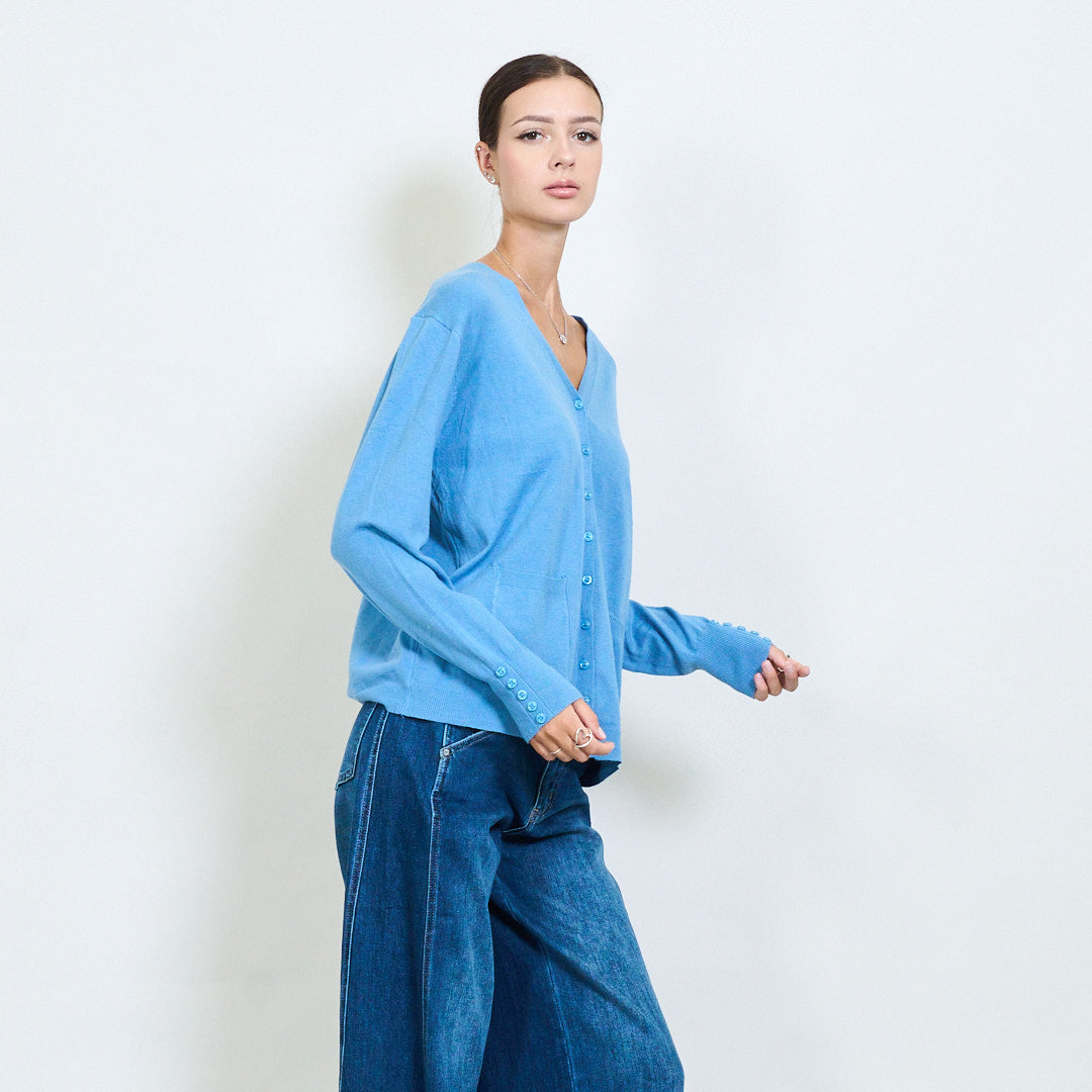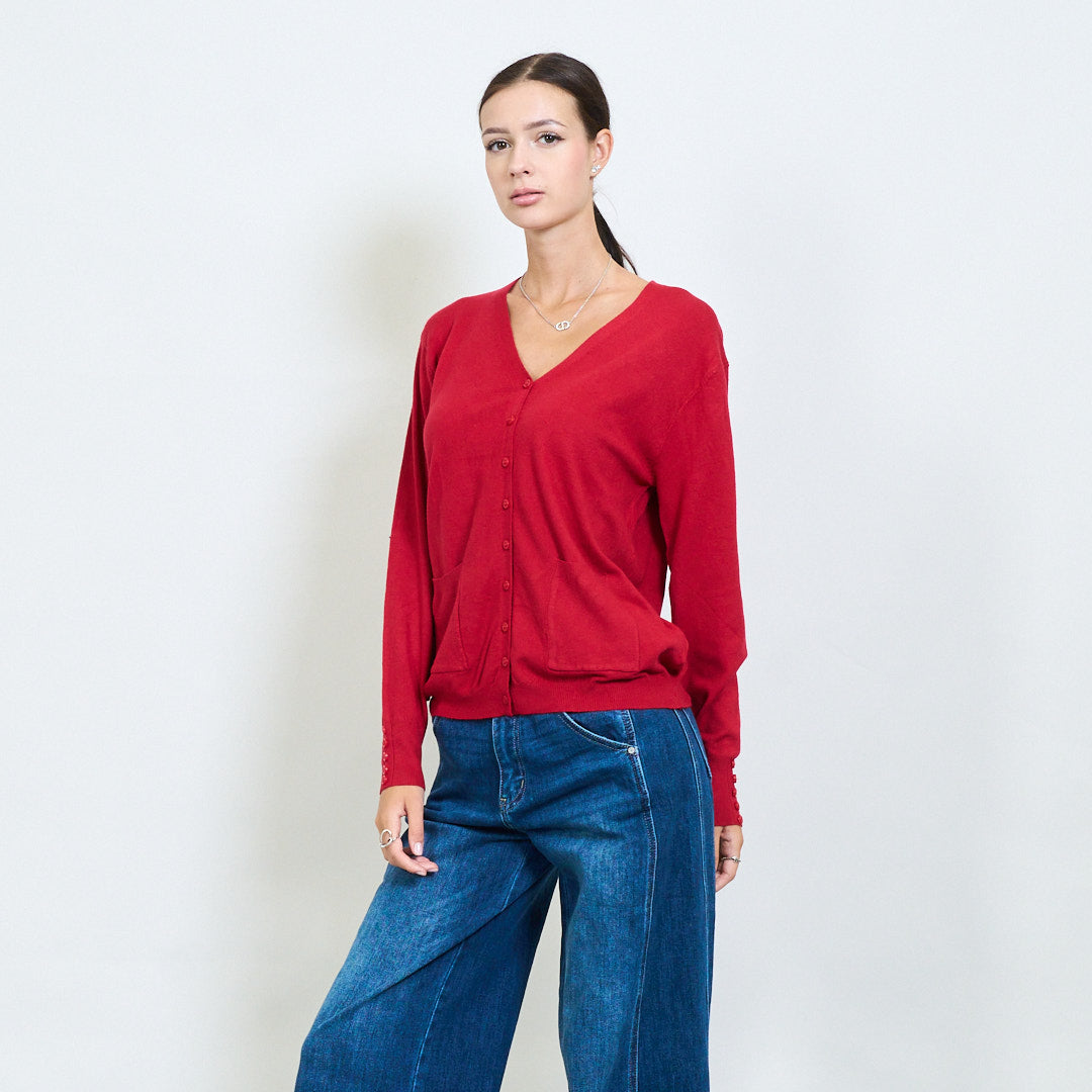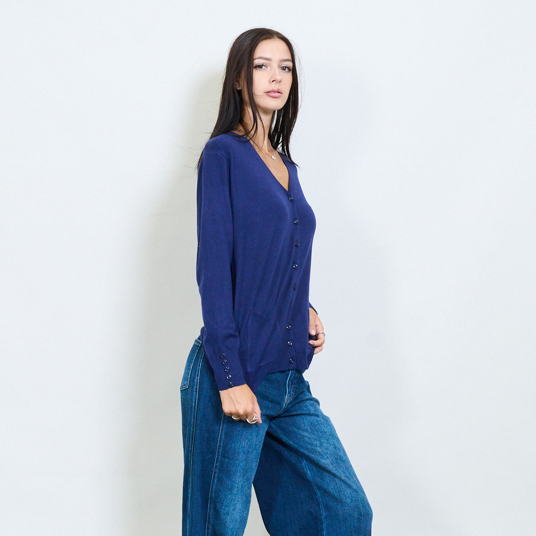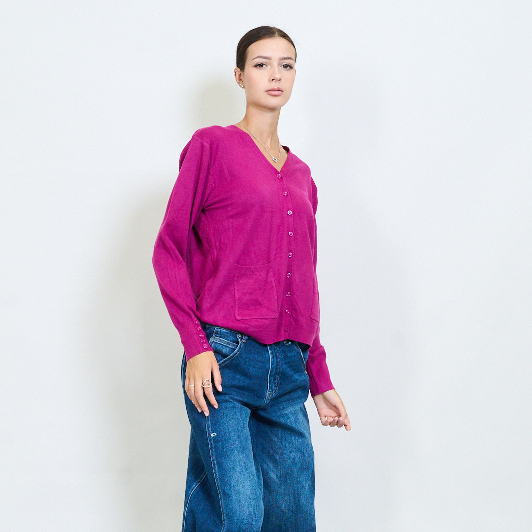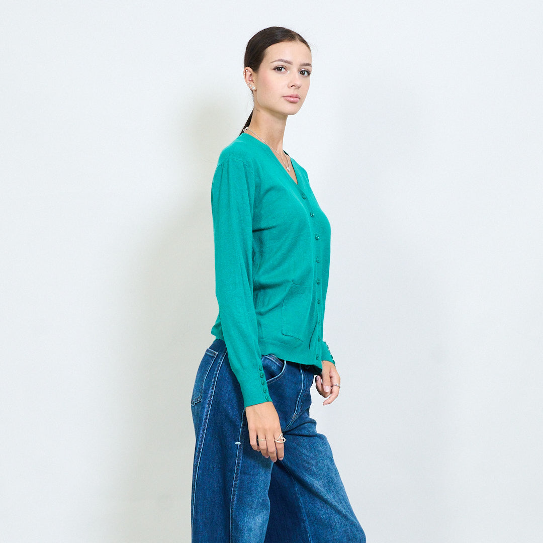 - Κλασική ζακέτα V-λαιμό με κλείσιμο κουμπιού-μπροστά