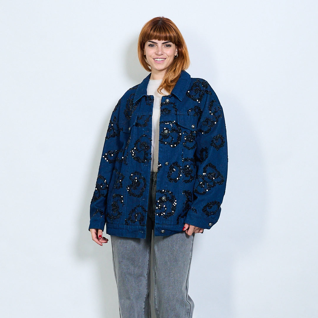 Chaqueta de mezclilla bordada de lentejuelas abstractas al por mayor