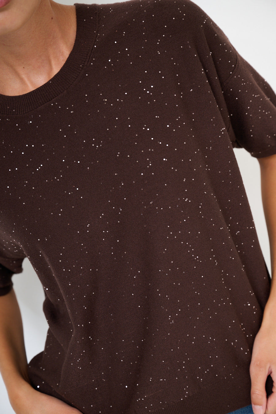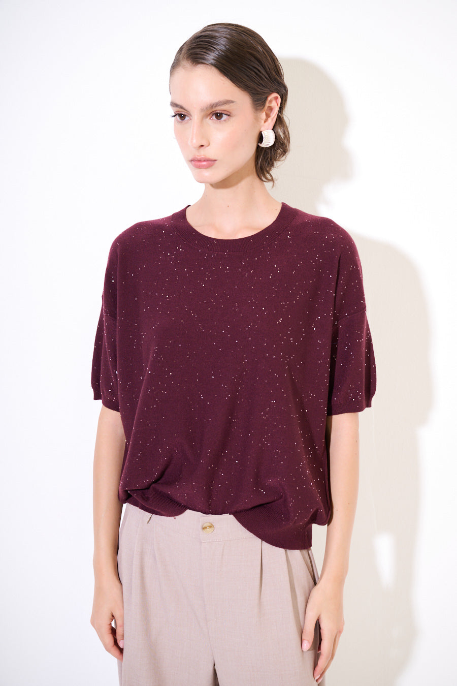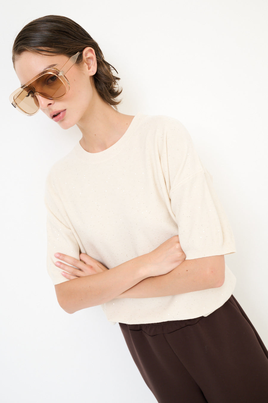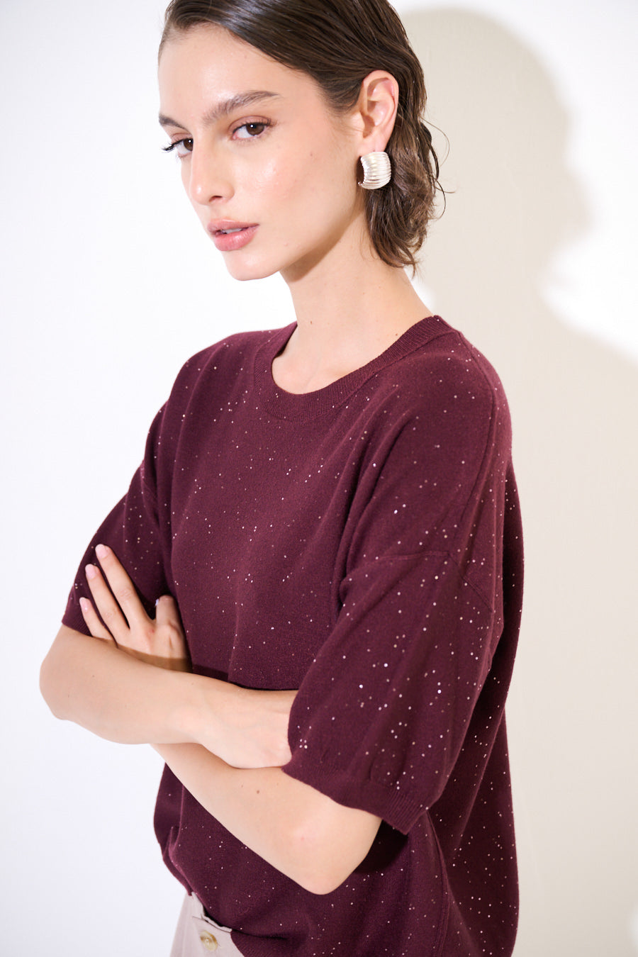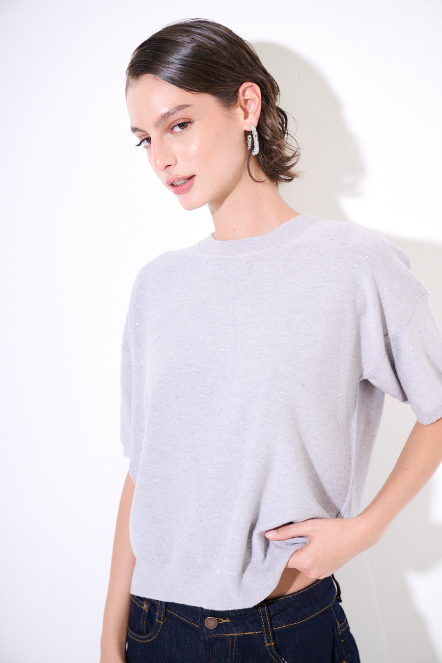 Suéter de manga de hojaldre corta de punto brillo al por mayor