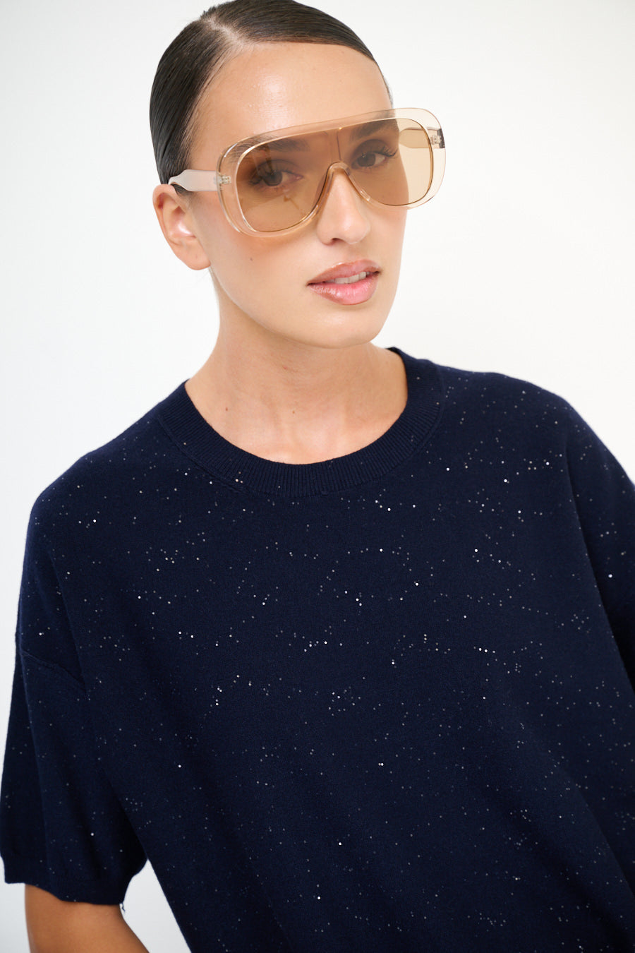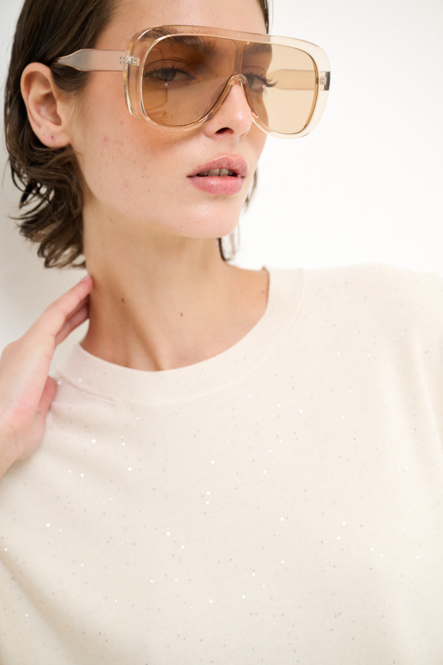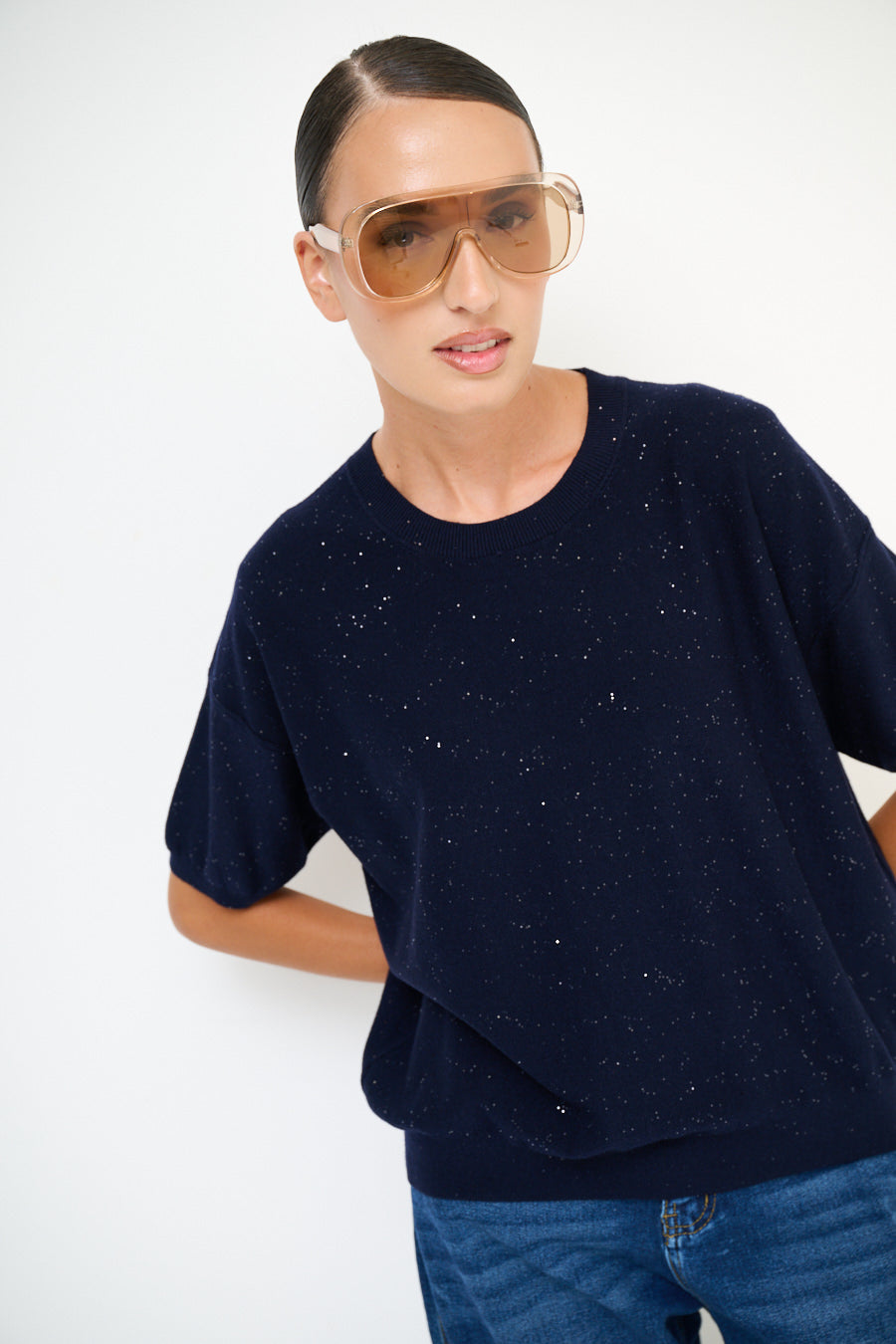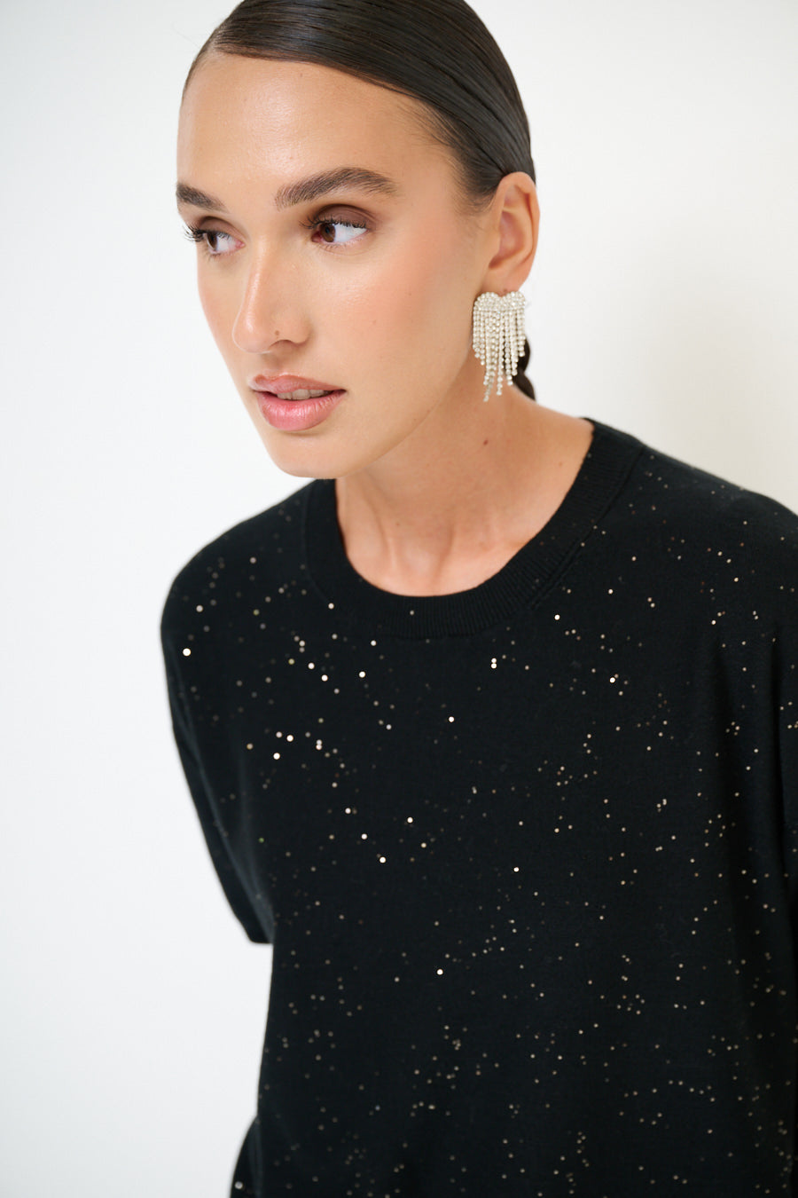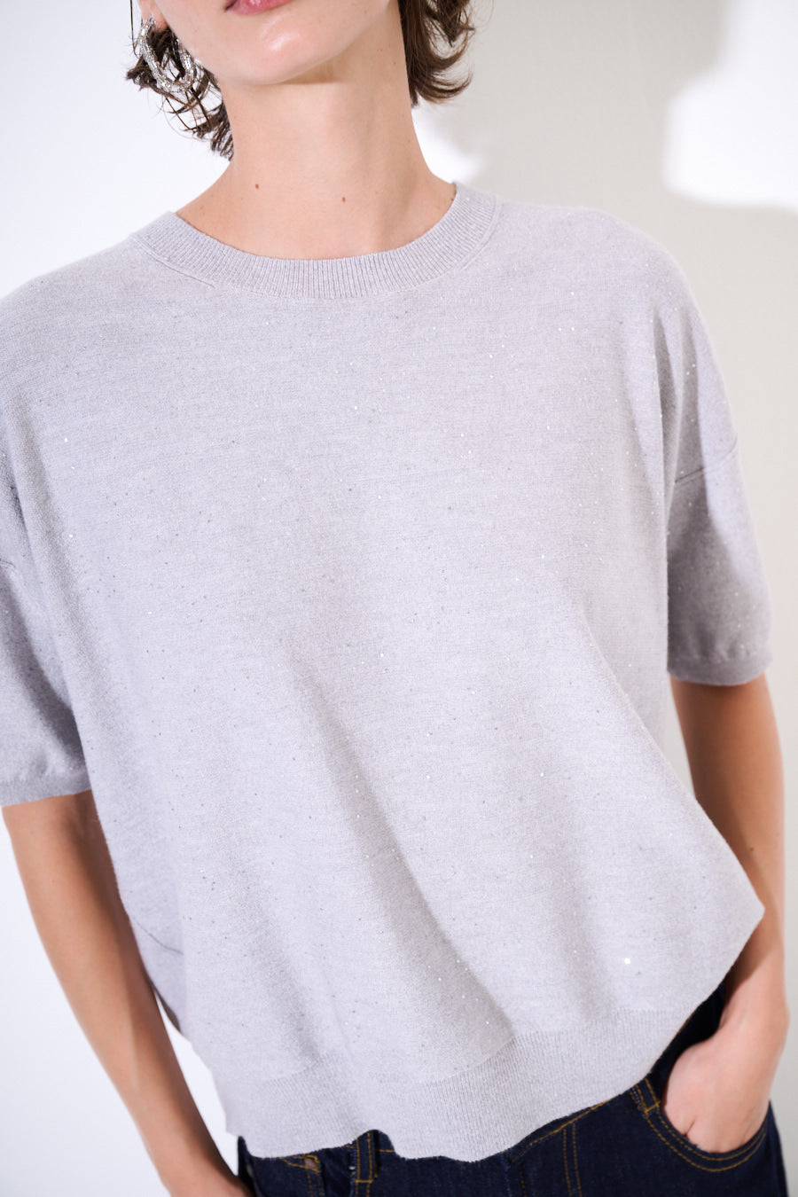Suéter de manga de hojaldre corta de punto brillo al por mayor