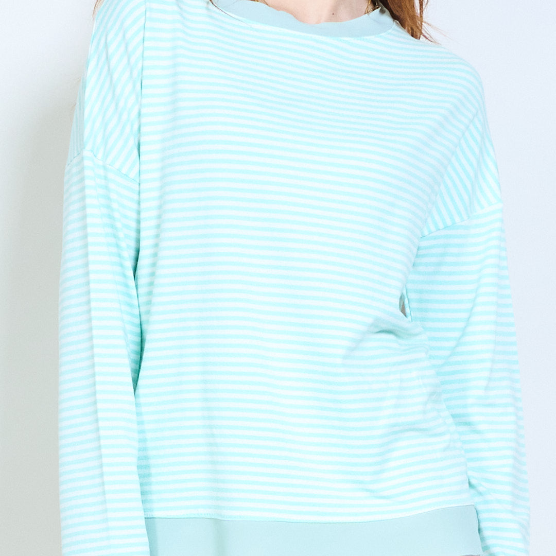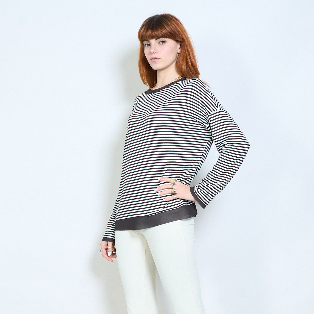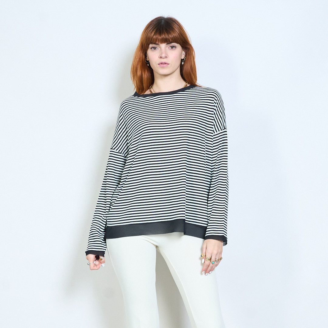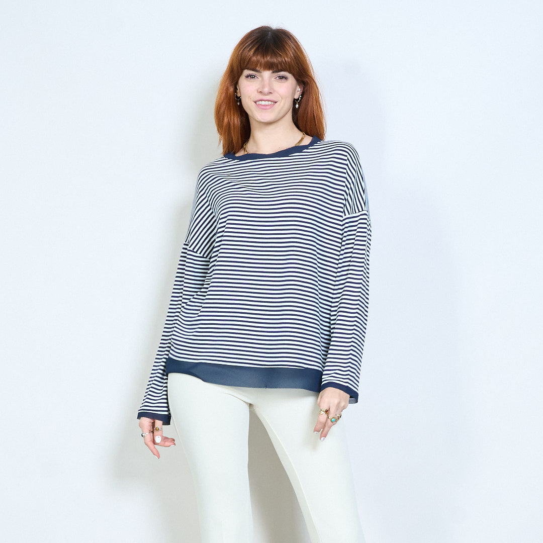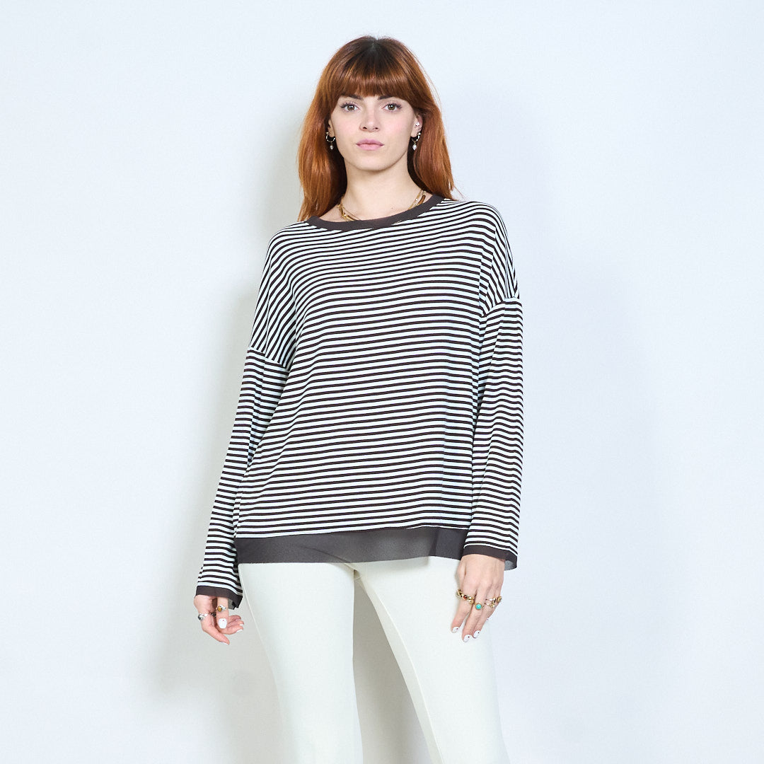 Top a rayas de manga larga y corte relajado con dobladillo acanalado al por mayor