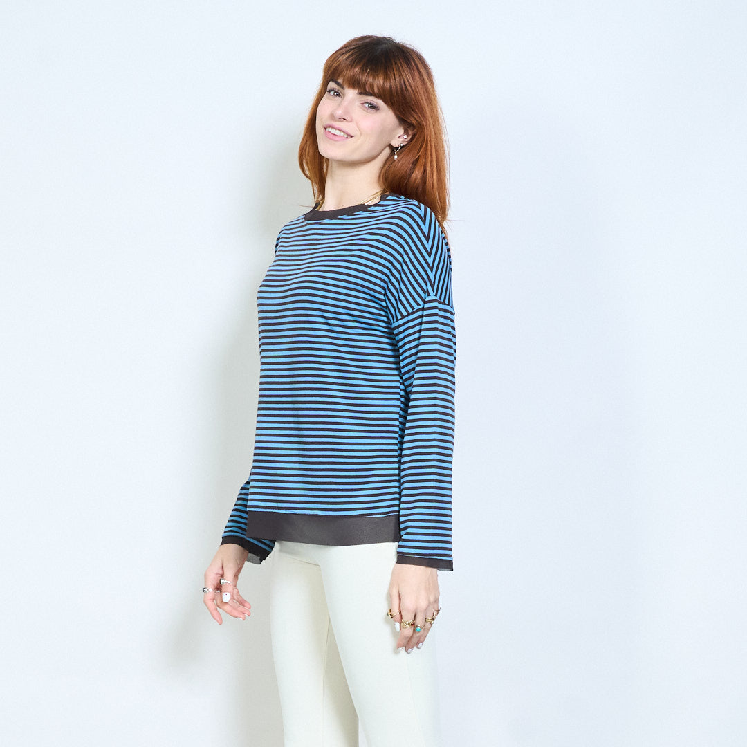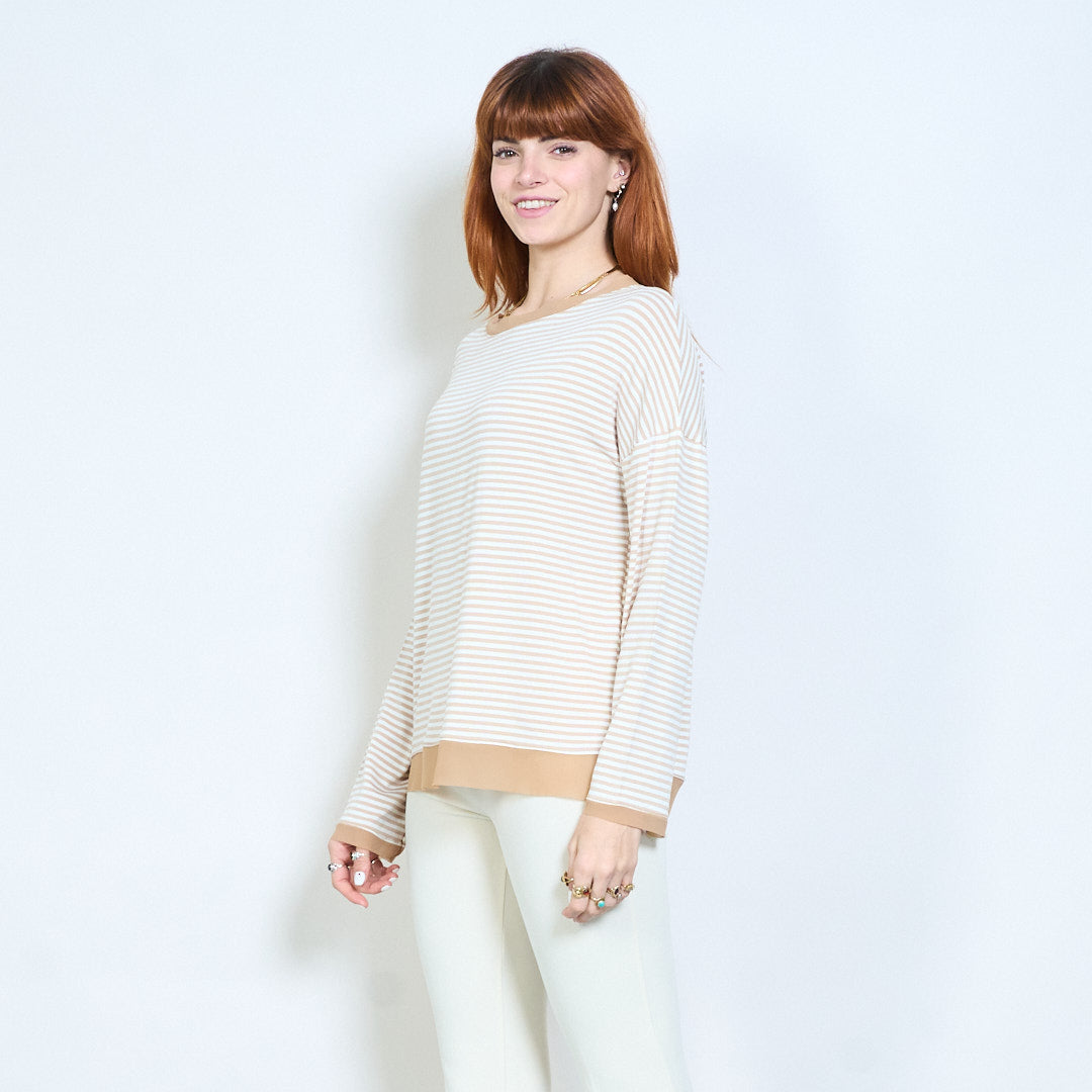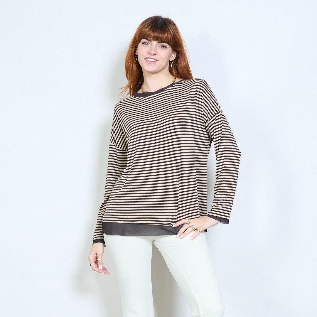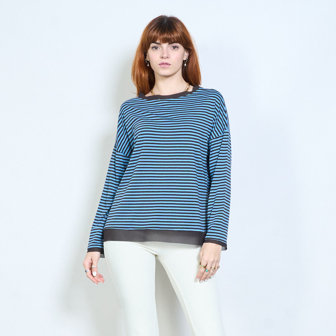 Top a rayas de manga larga y corte relajado con dobladillo acanalado al por mayor