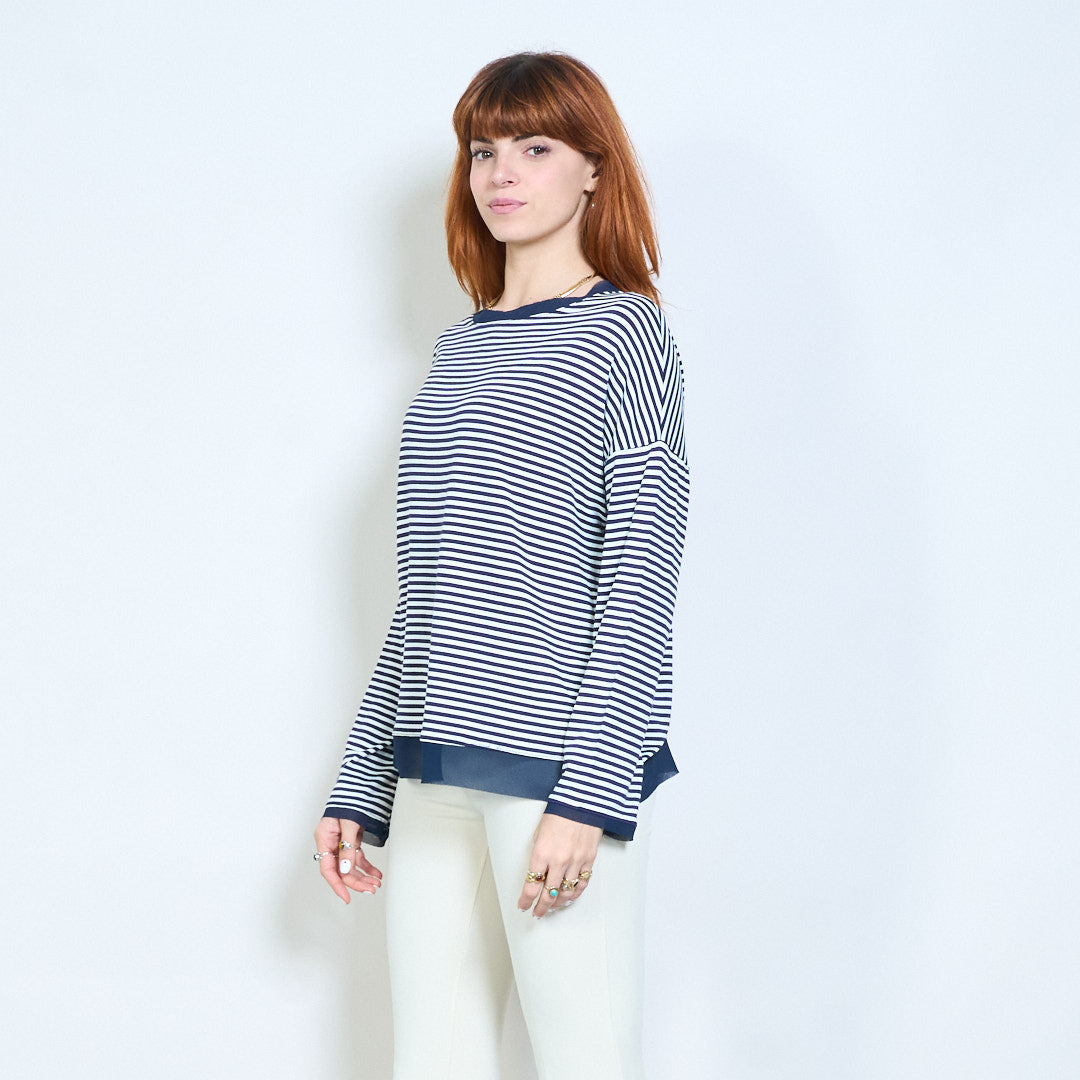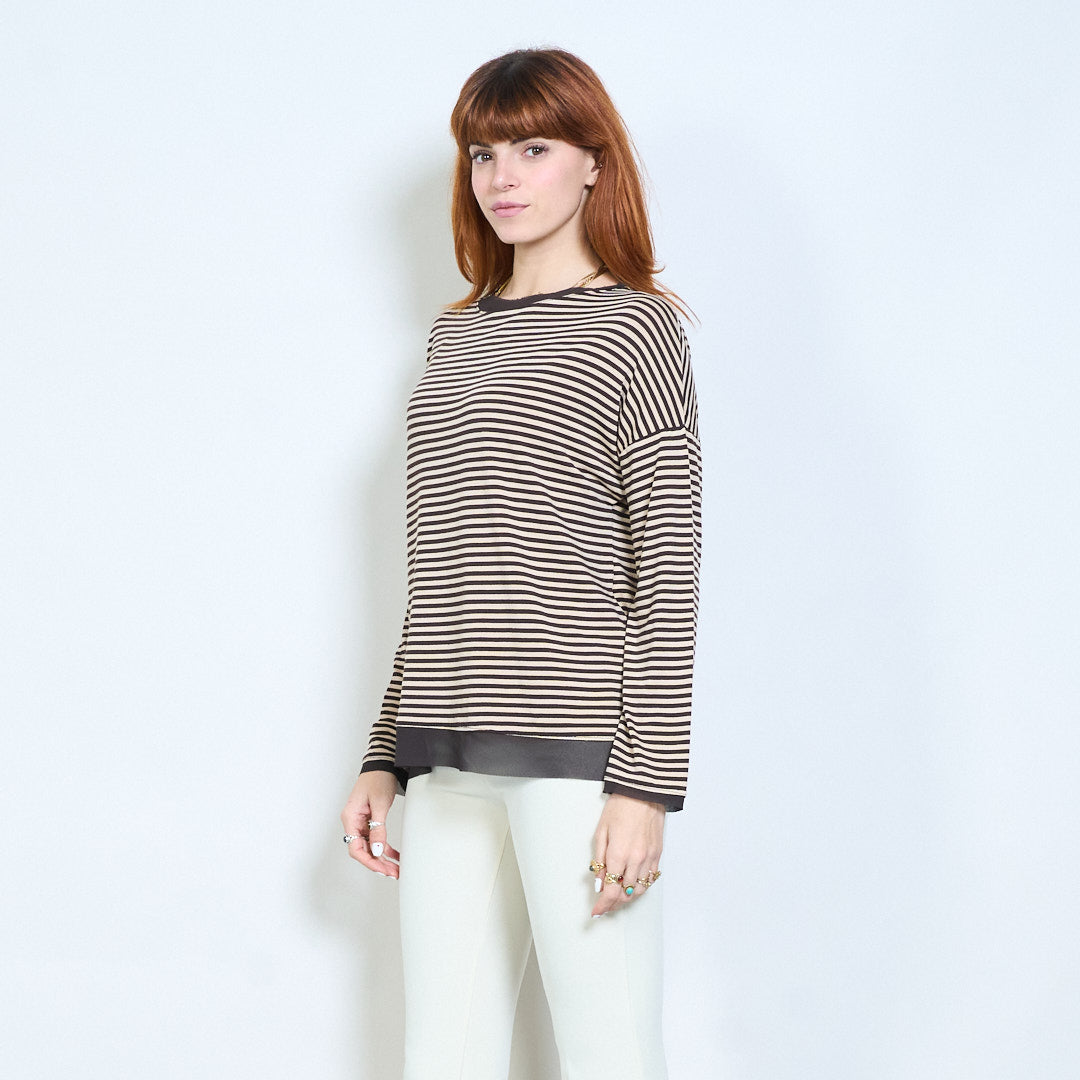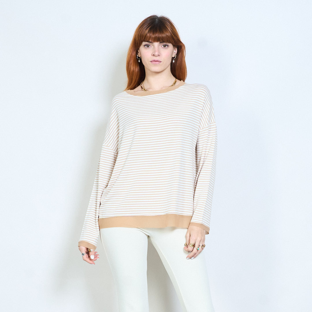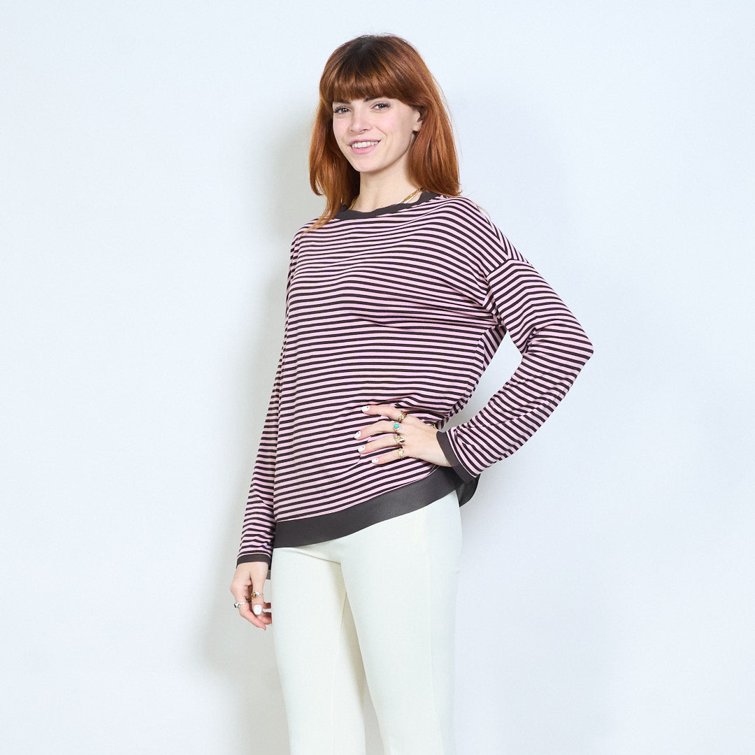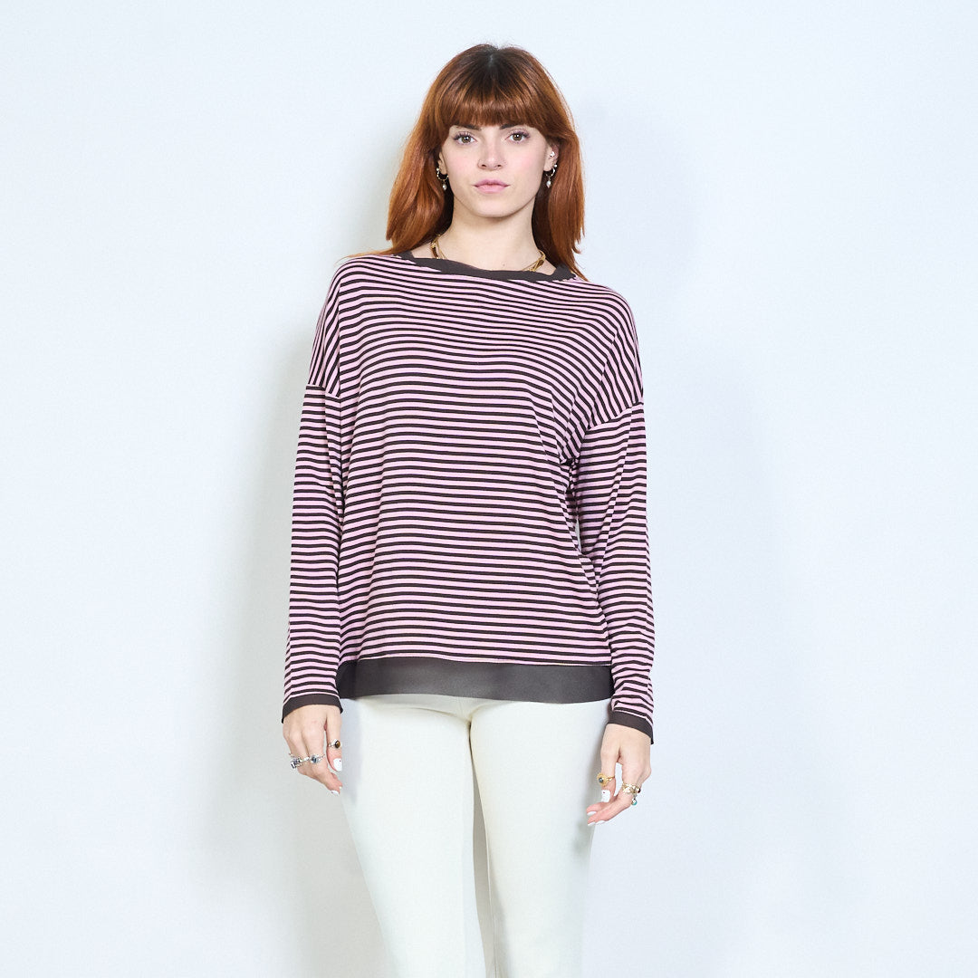 Top a rayas de manga larga y corte relajado con dobladillo acanalado al por mayor