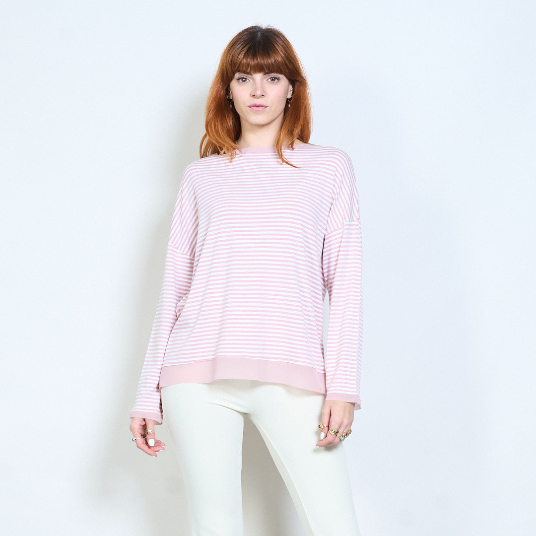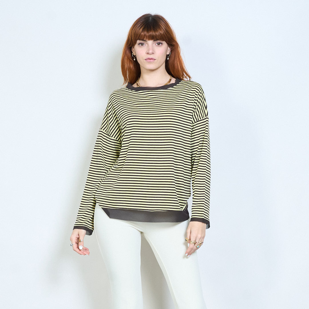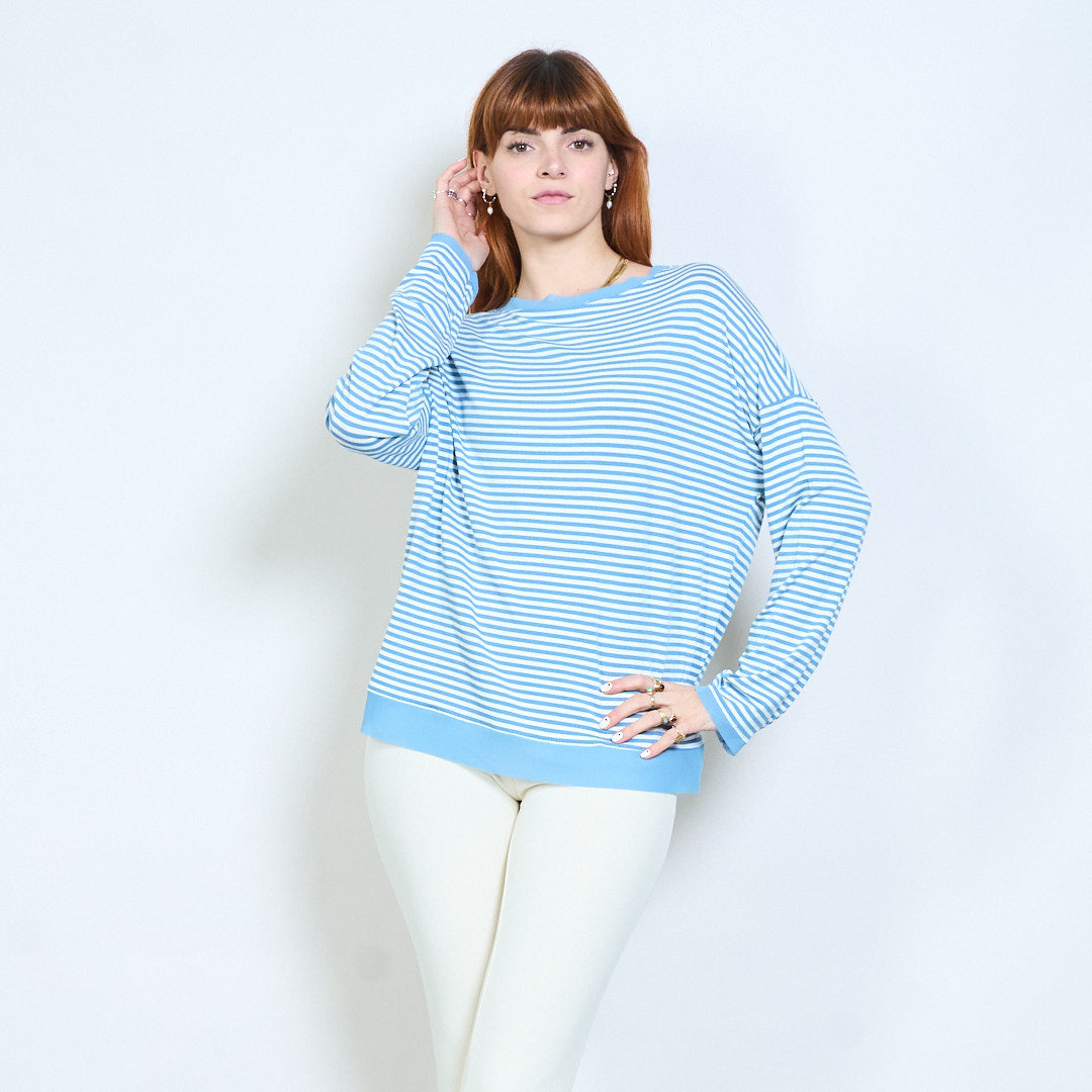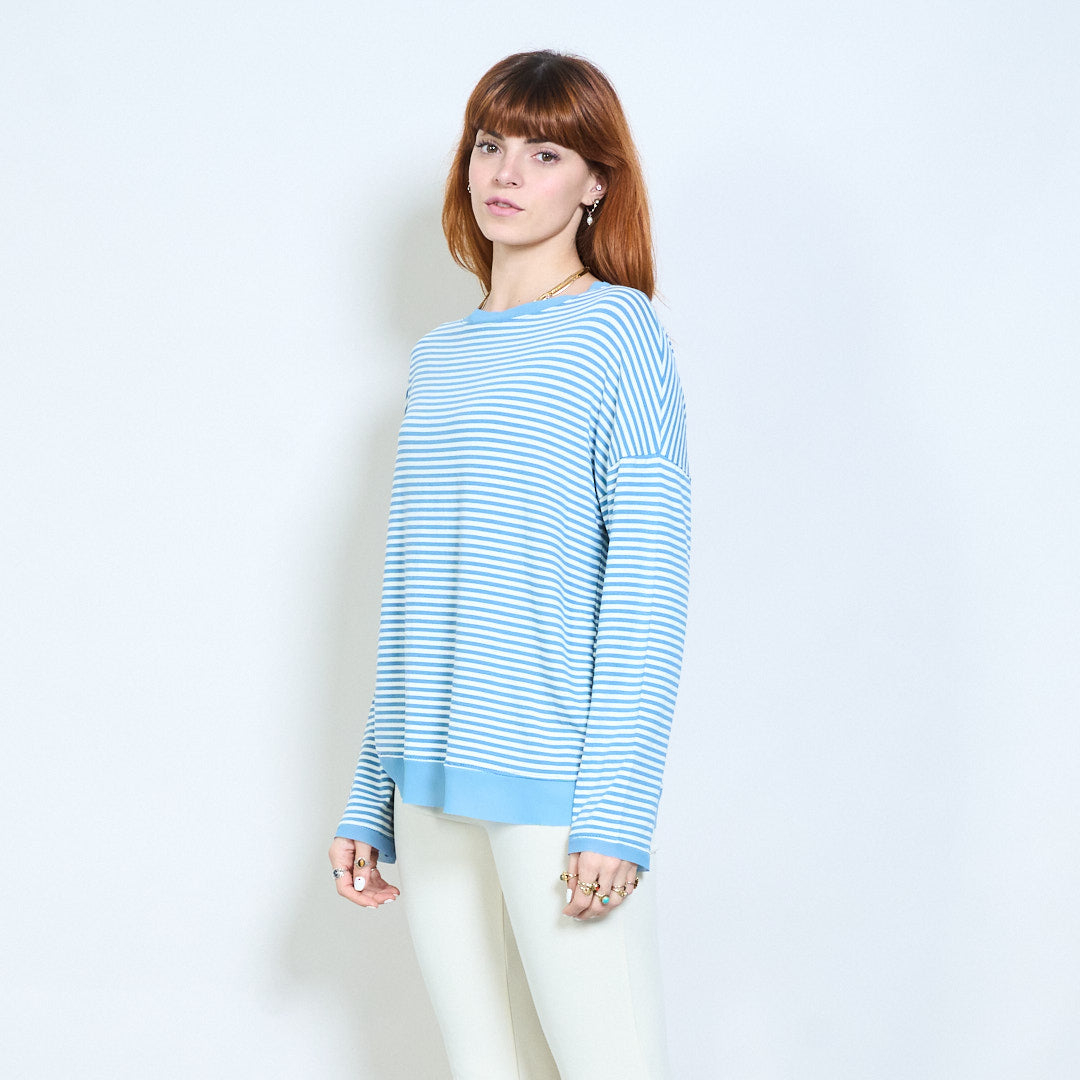 Top a rayas de manga larga y corte relajado con dobladillo acanalado al por mayor