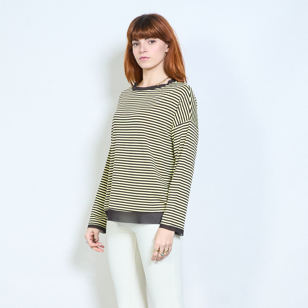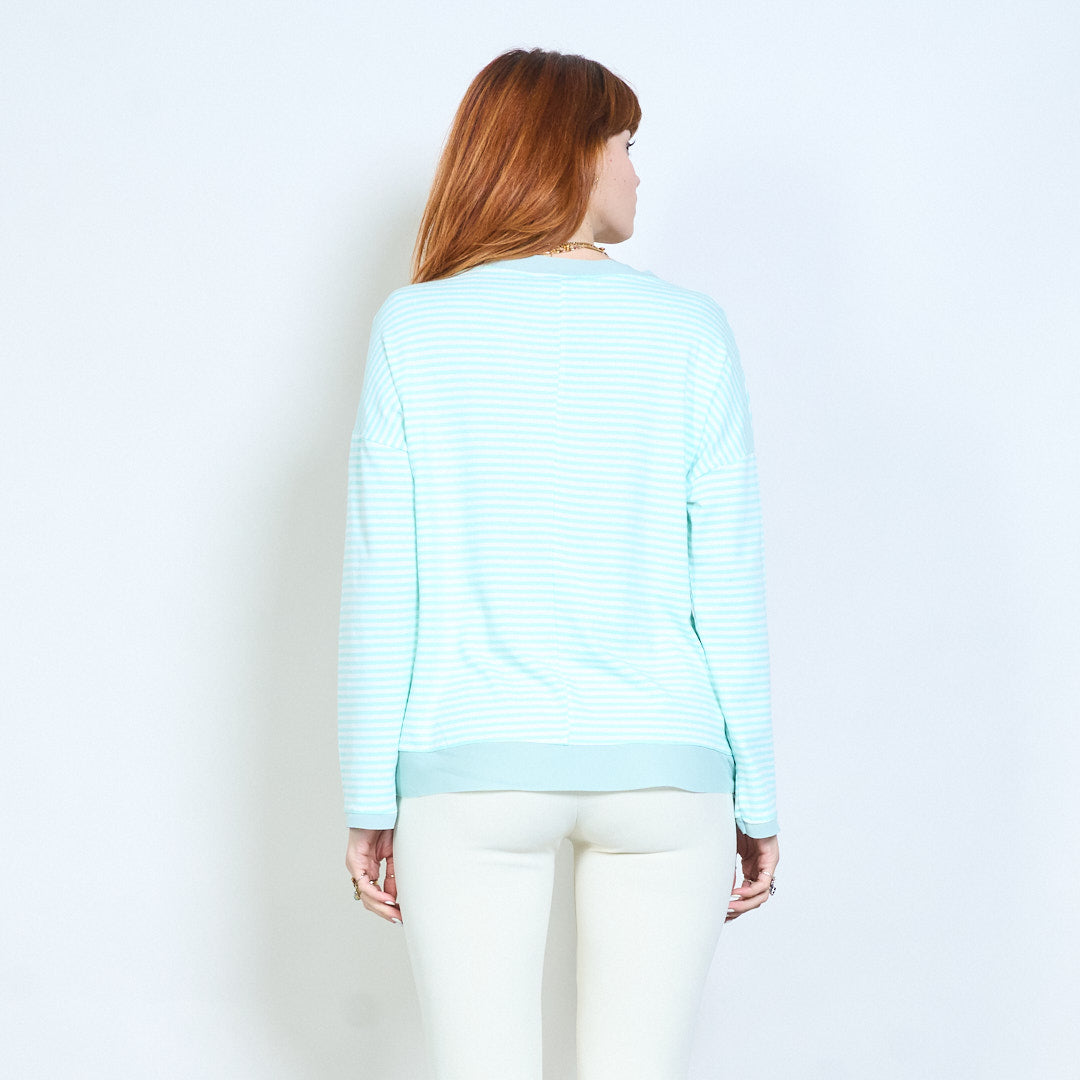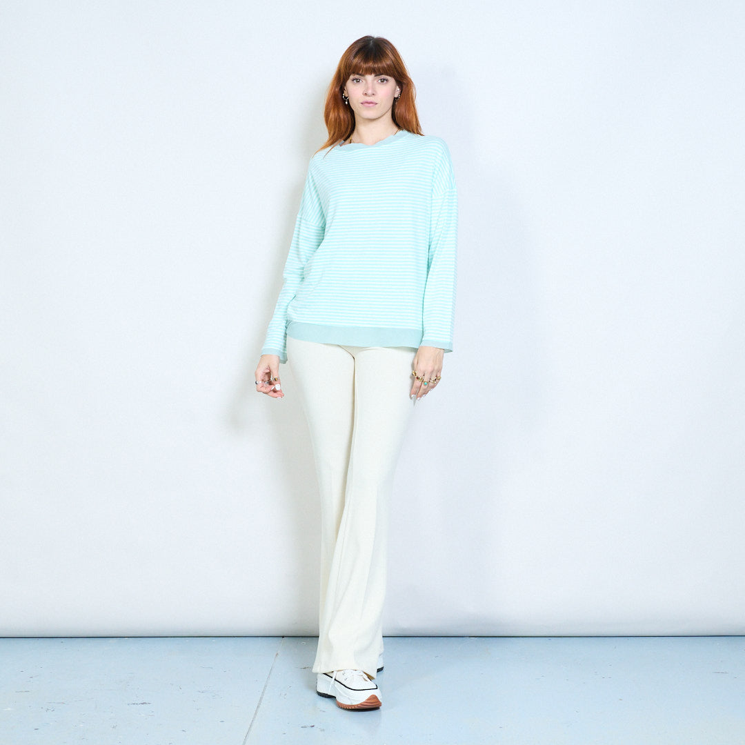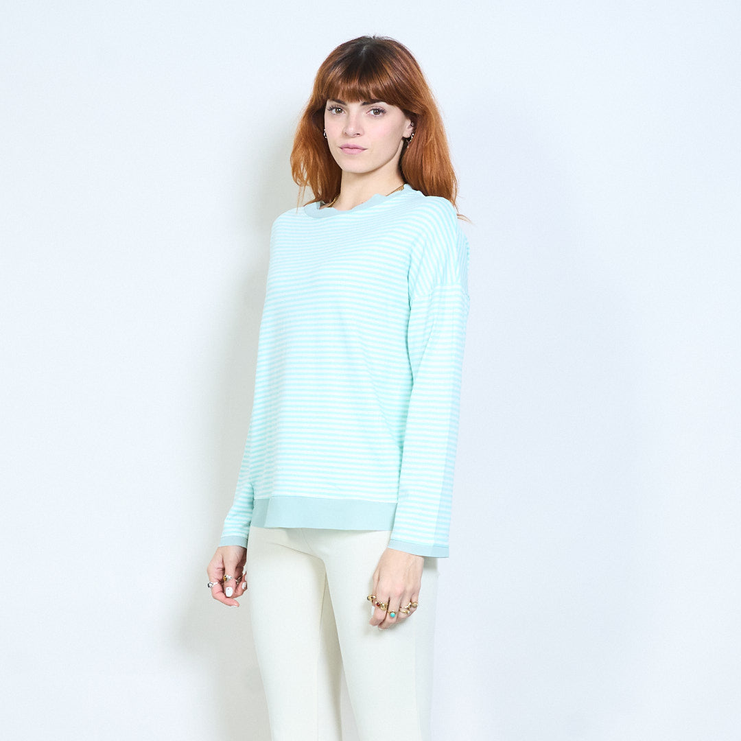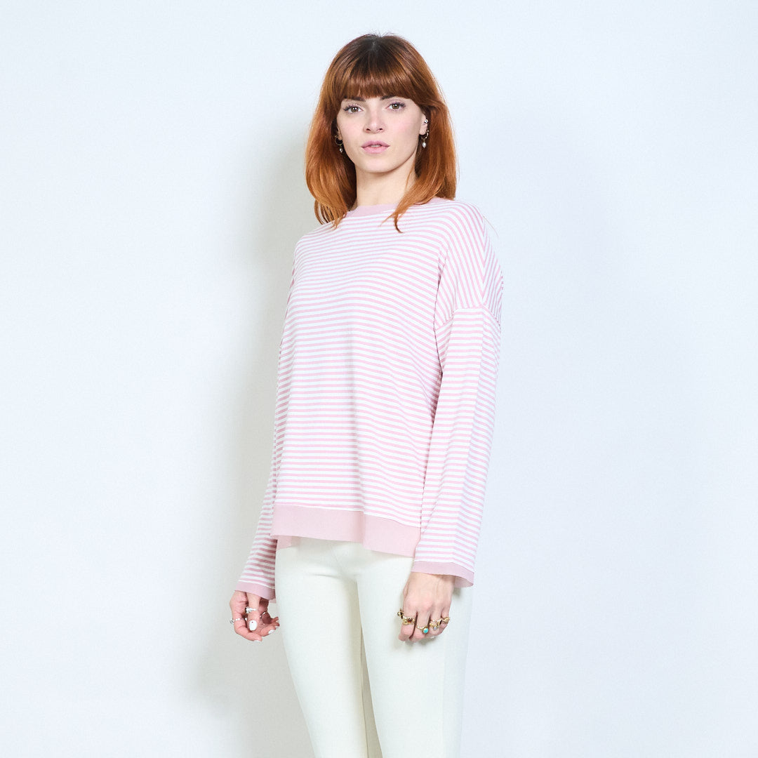 Top a rayas de manga larga y corte relajado con dobladillo acanalado al por mayor
