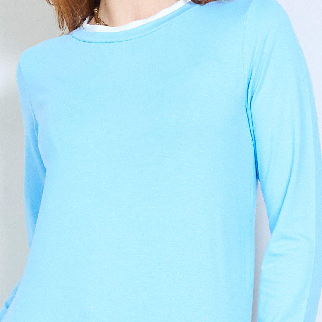 • Escote redondo clásico acabado con un sutil ribete en contraste.