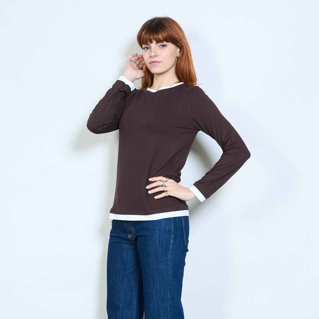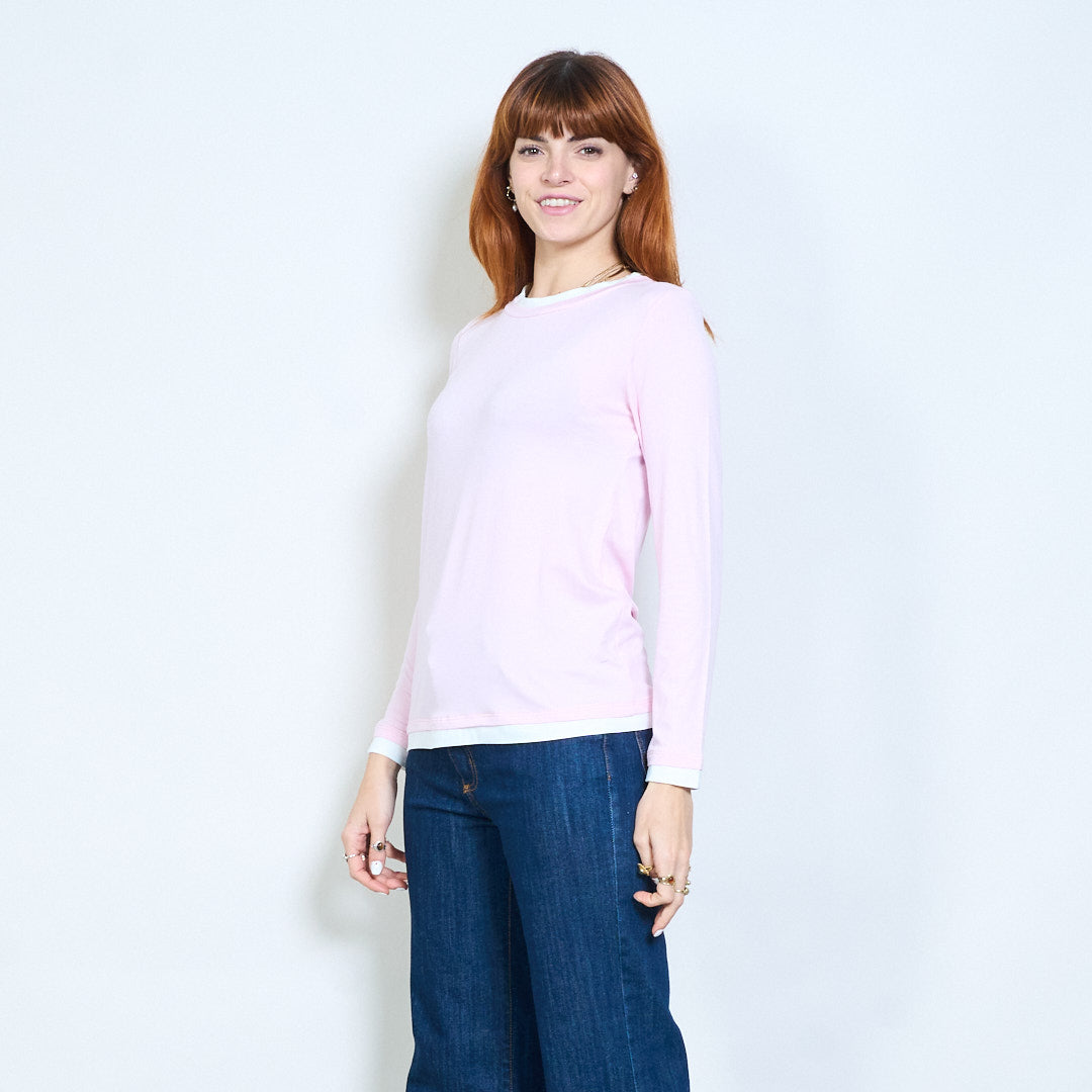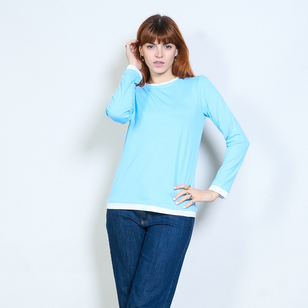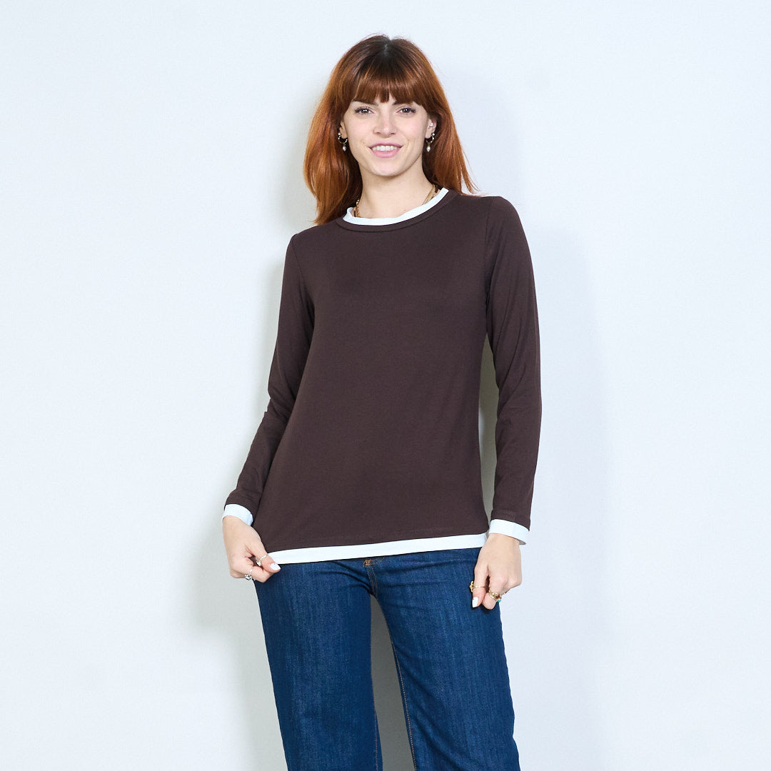 Top de manga larga con cuello redondo y ajuste relajado con ribete en contraste al por mayor