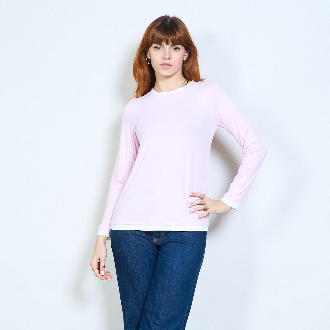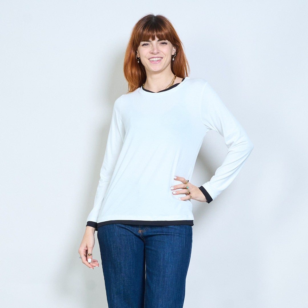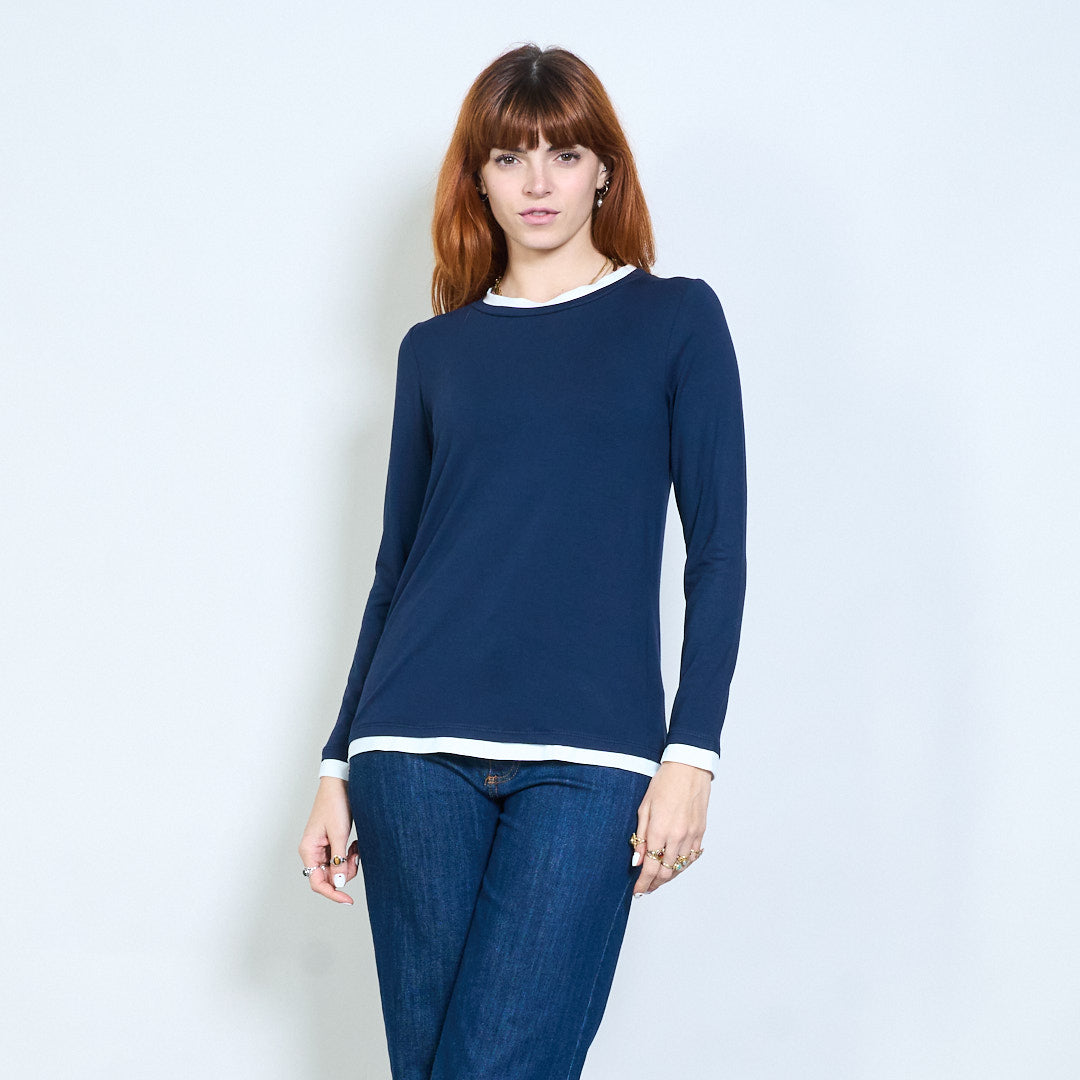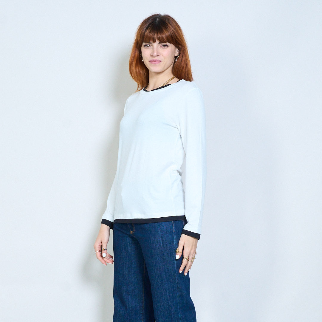 Top de manga larga con cuello redondo y ajuste relajado con ribete en contraste al por mayor