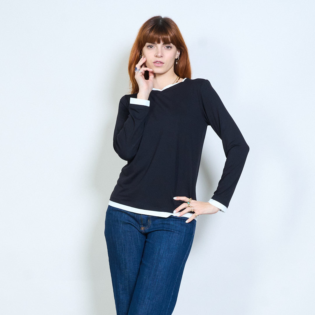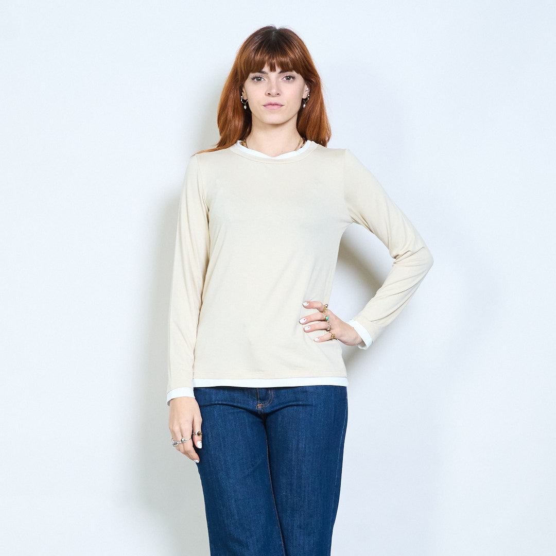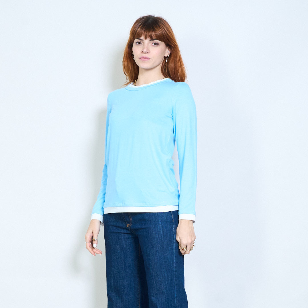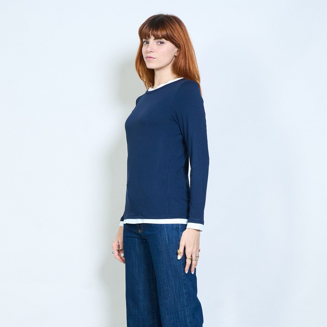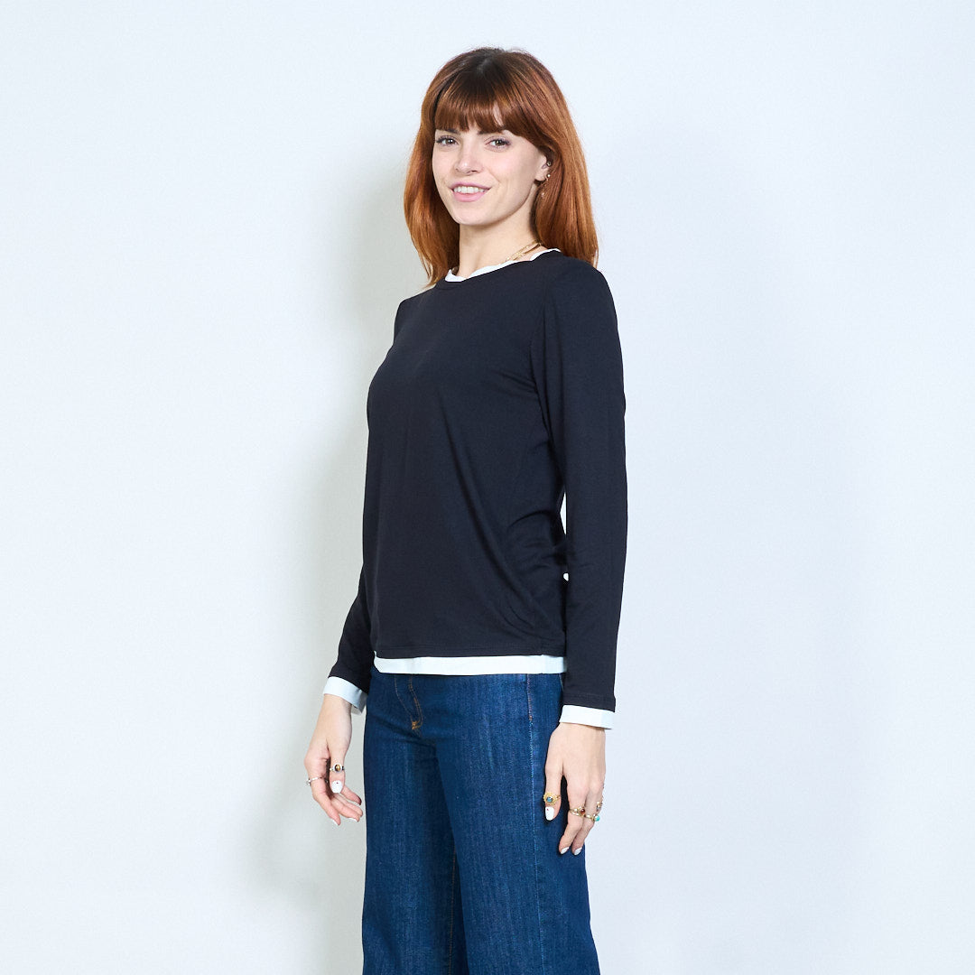 Top de manga larga con cuello redondo y ajuste relajado con ribete en contraste al por mayor