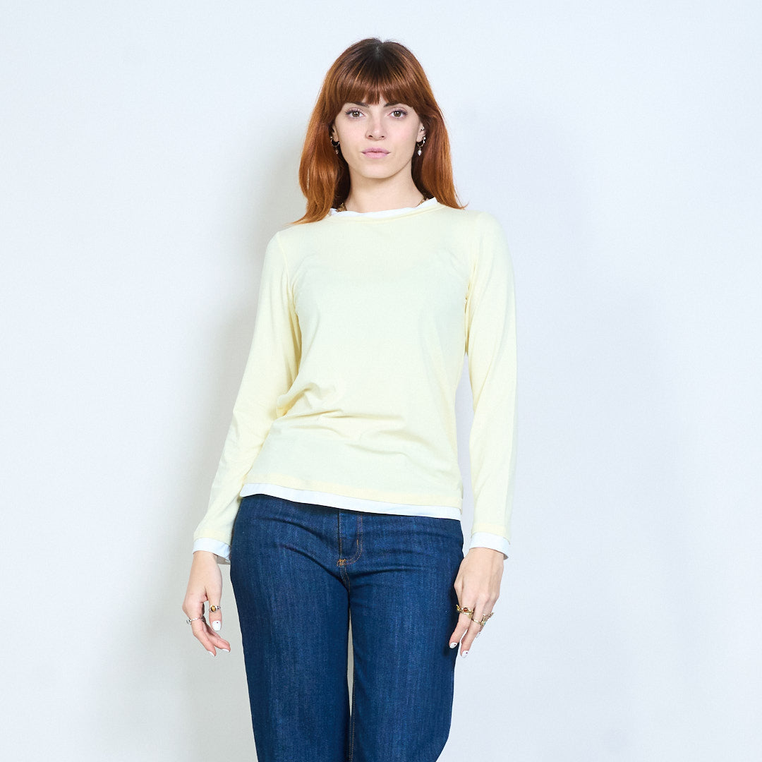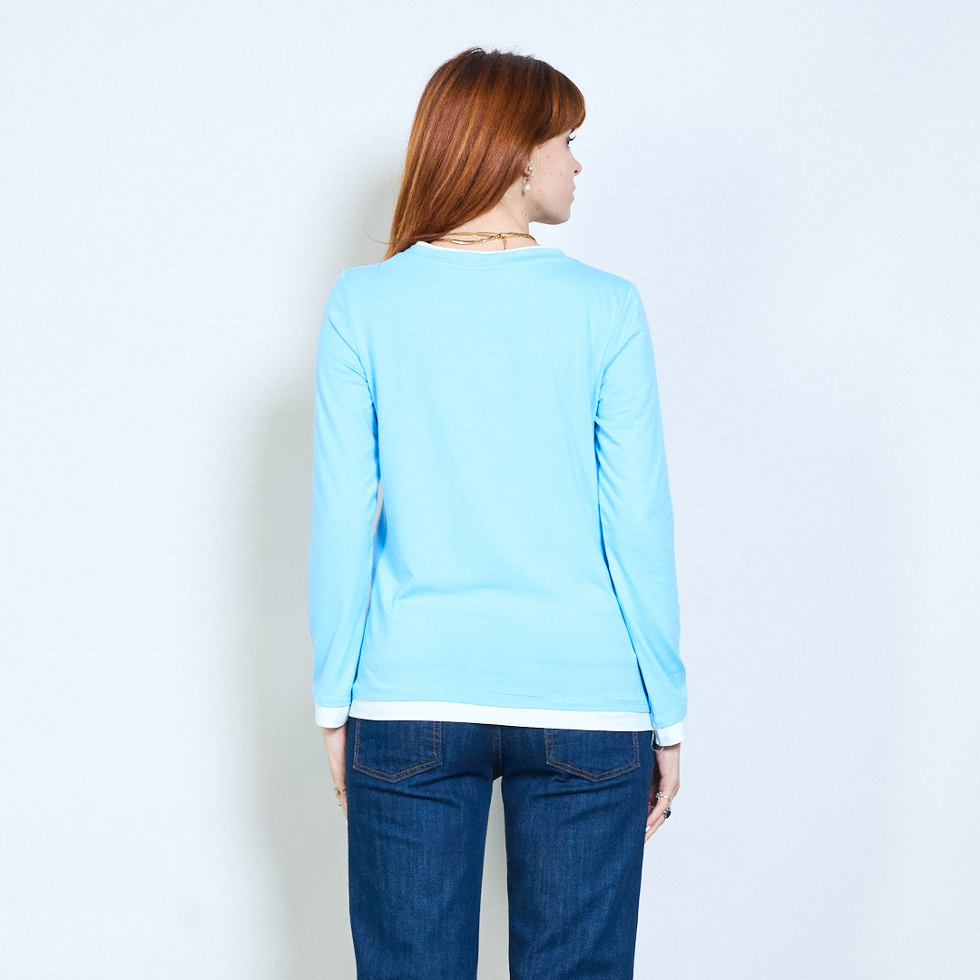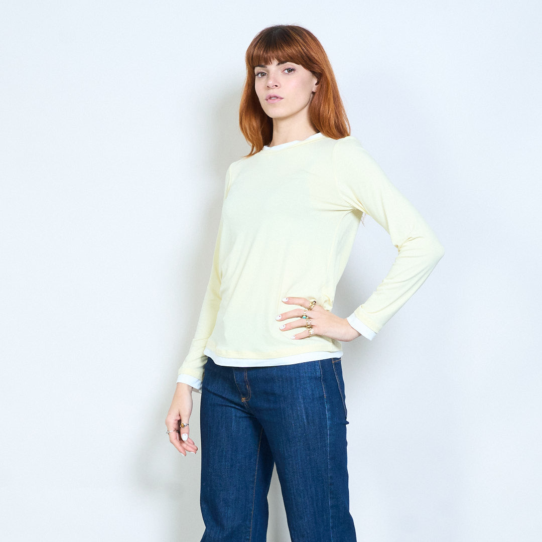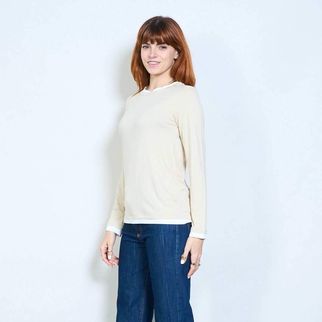 Top de manga larga con cuello redondo y ajuste relajado con ribete en contraste al por mayor