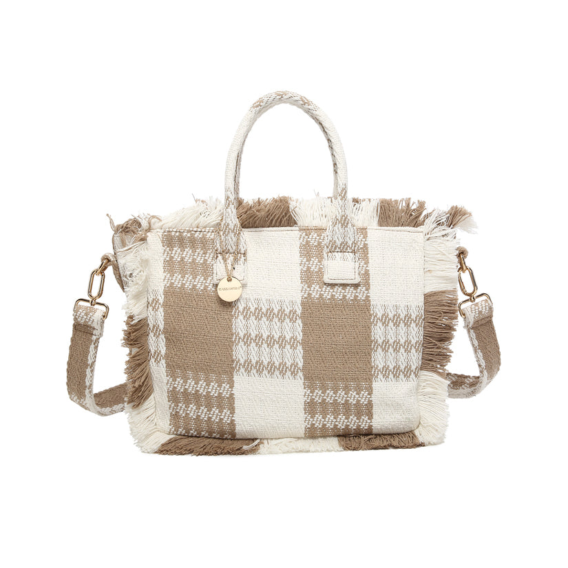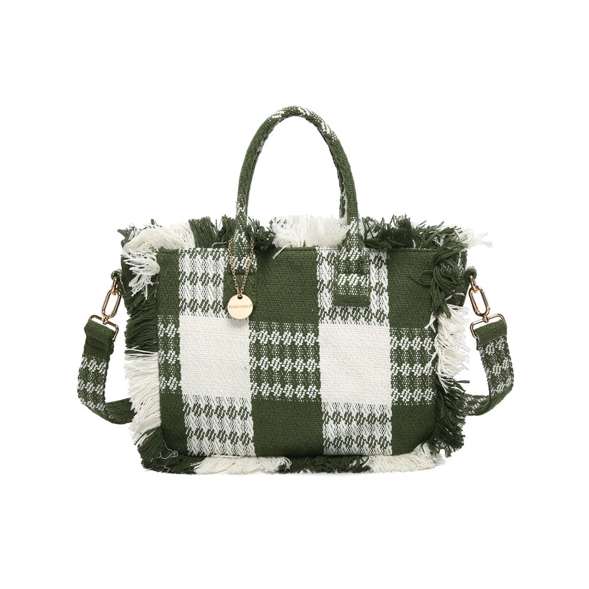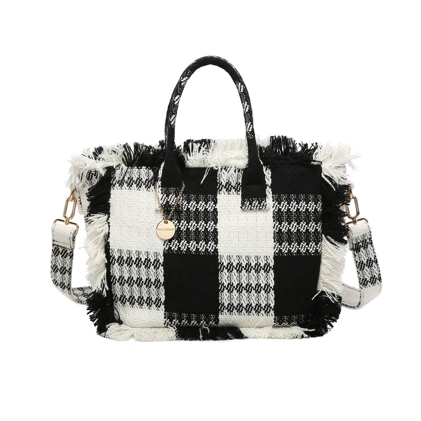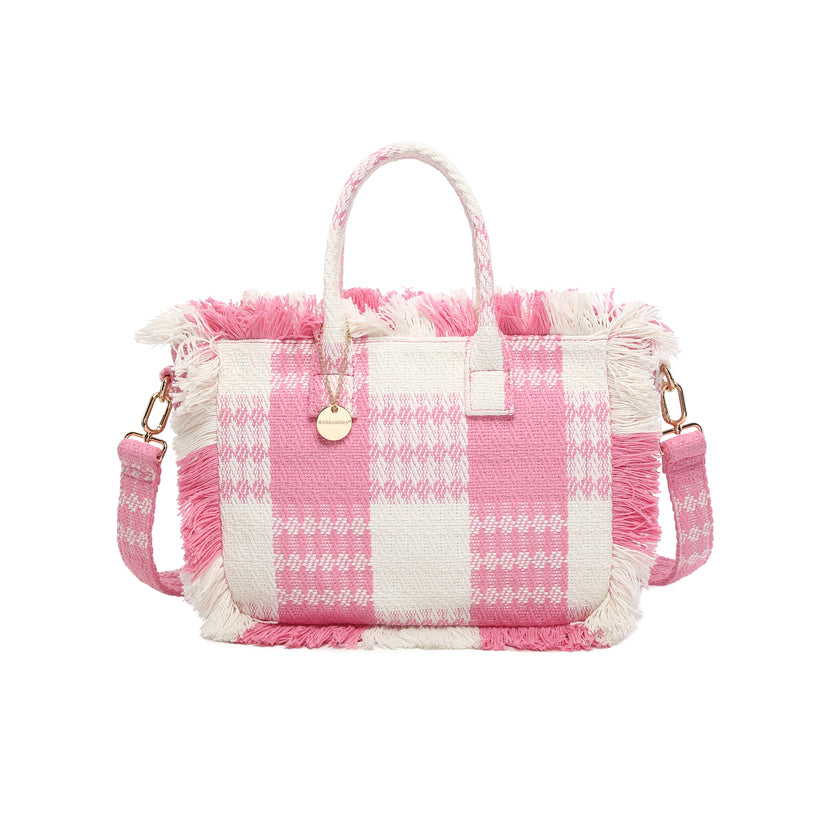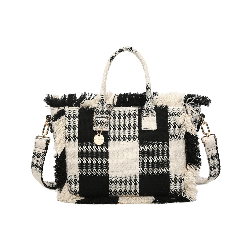 Bolso con flecos a cuadros con correa desmontable al por mayor