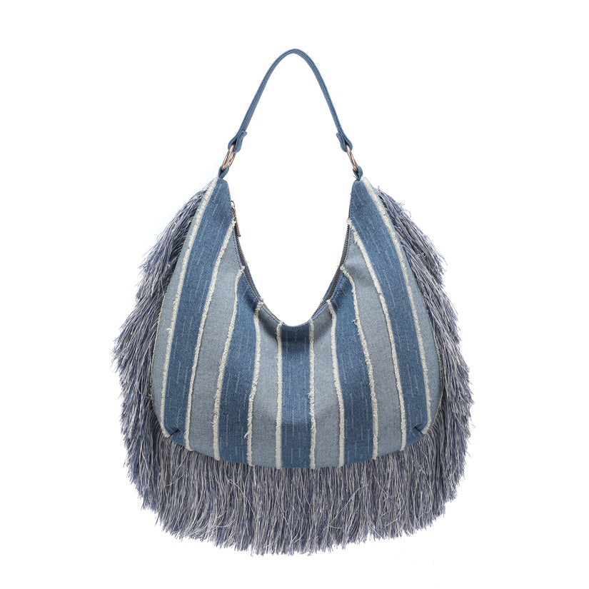 Bolso de hombro a rayas de mezclilla con forma elegante más refrigeradores al por mayor