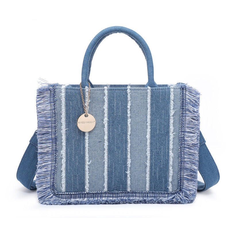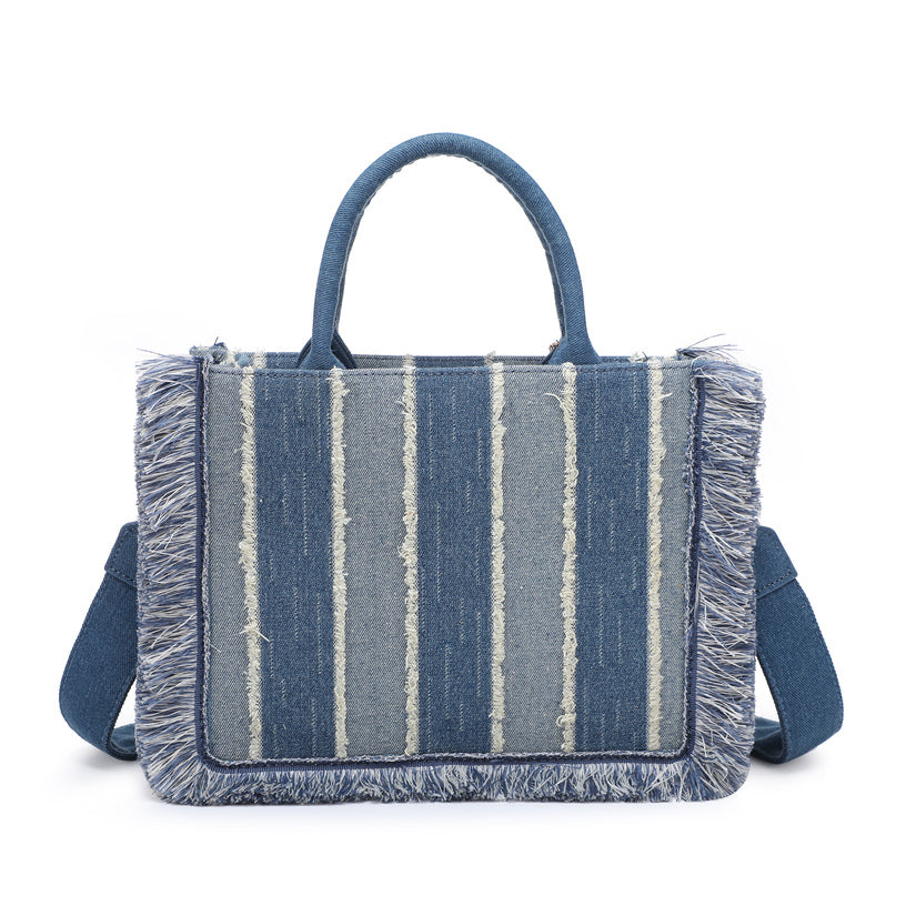 Mini bolsa de mezclilla a rayas con bordes marginales y correa desmontable al por mayor