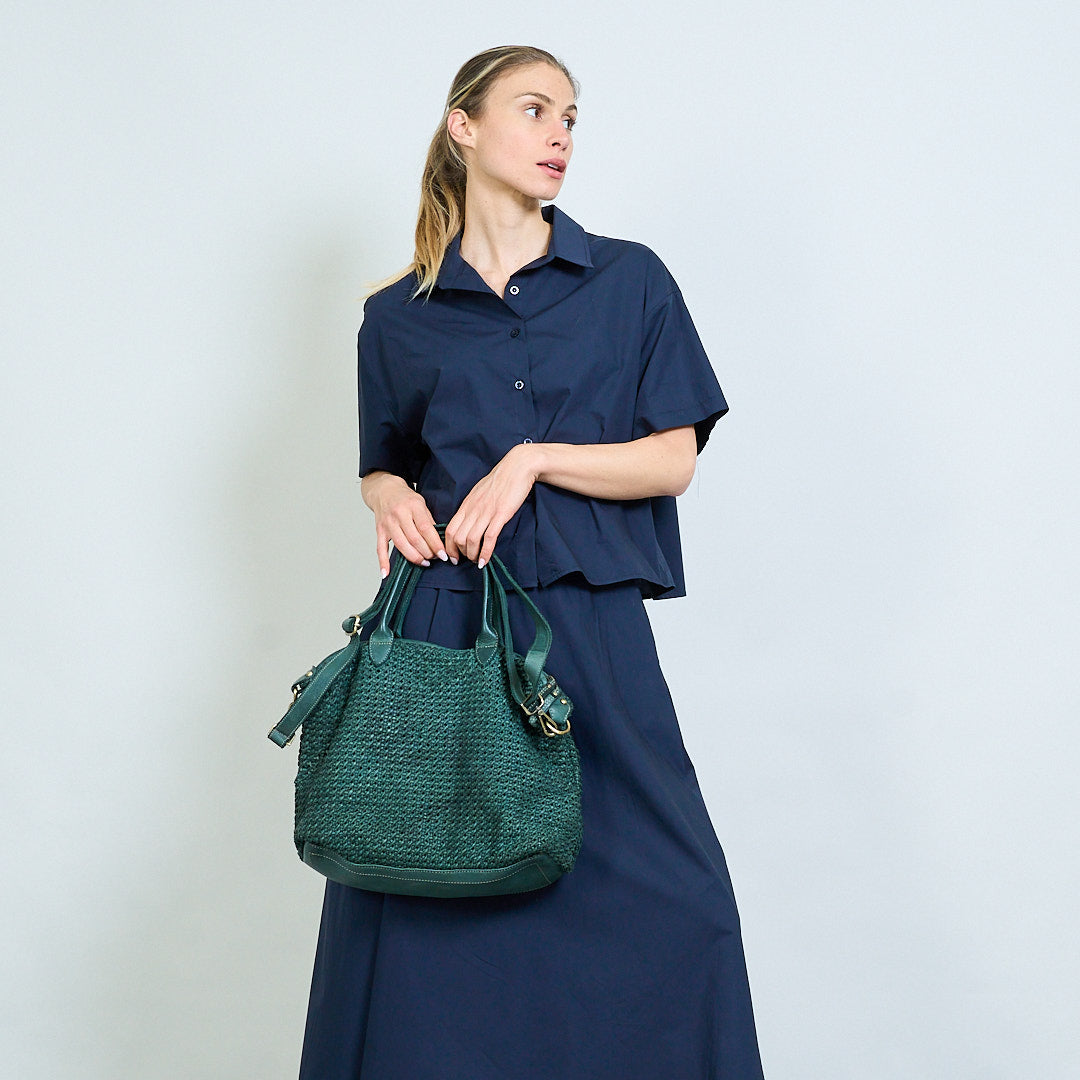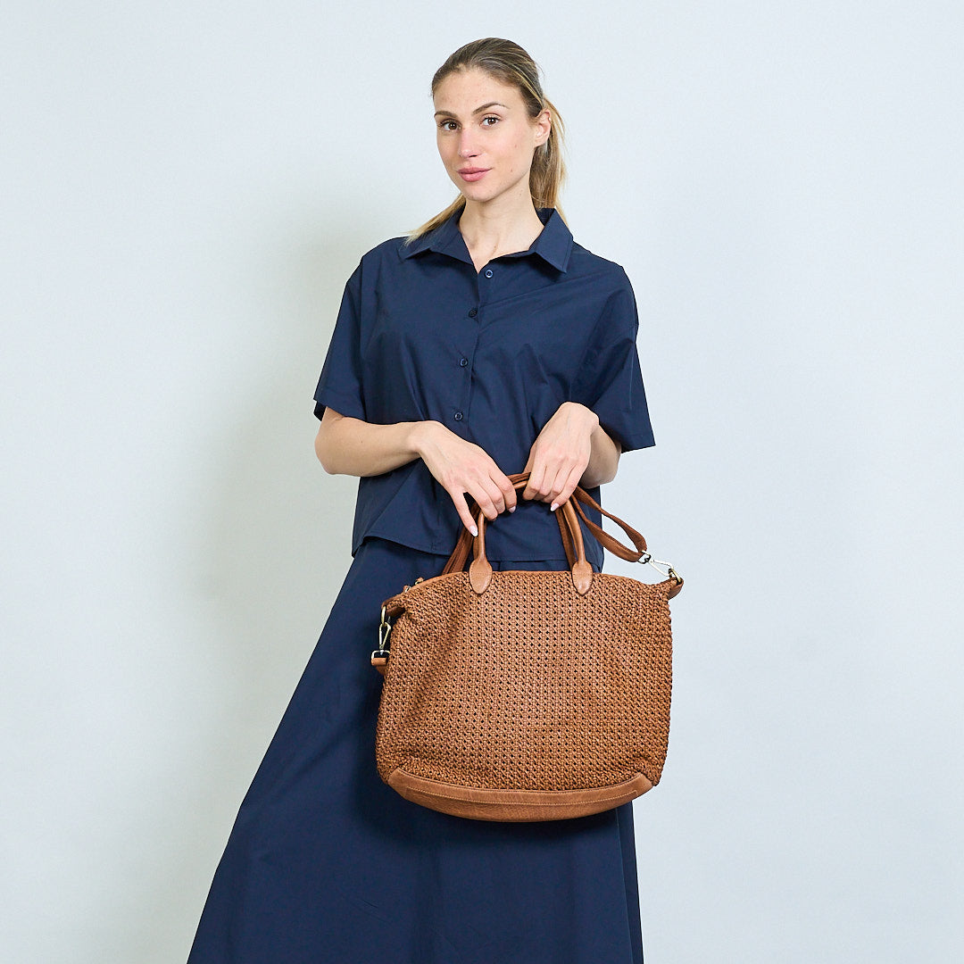 Textura de tejido grande Bolsa de bolso estructurado de doble mango al por mayor