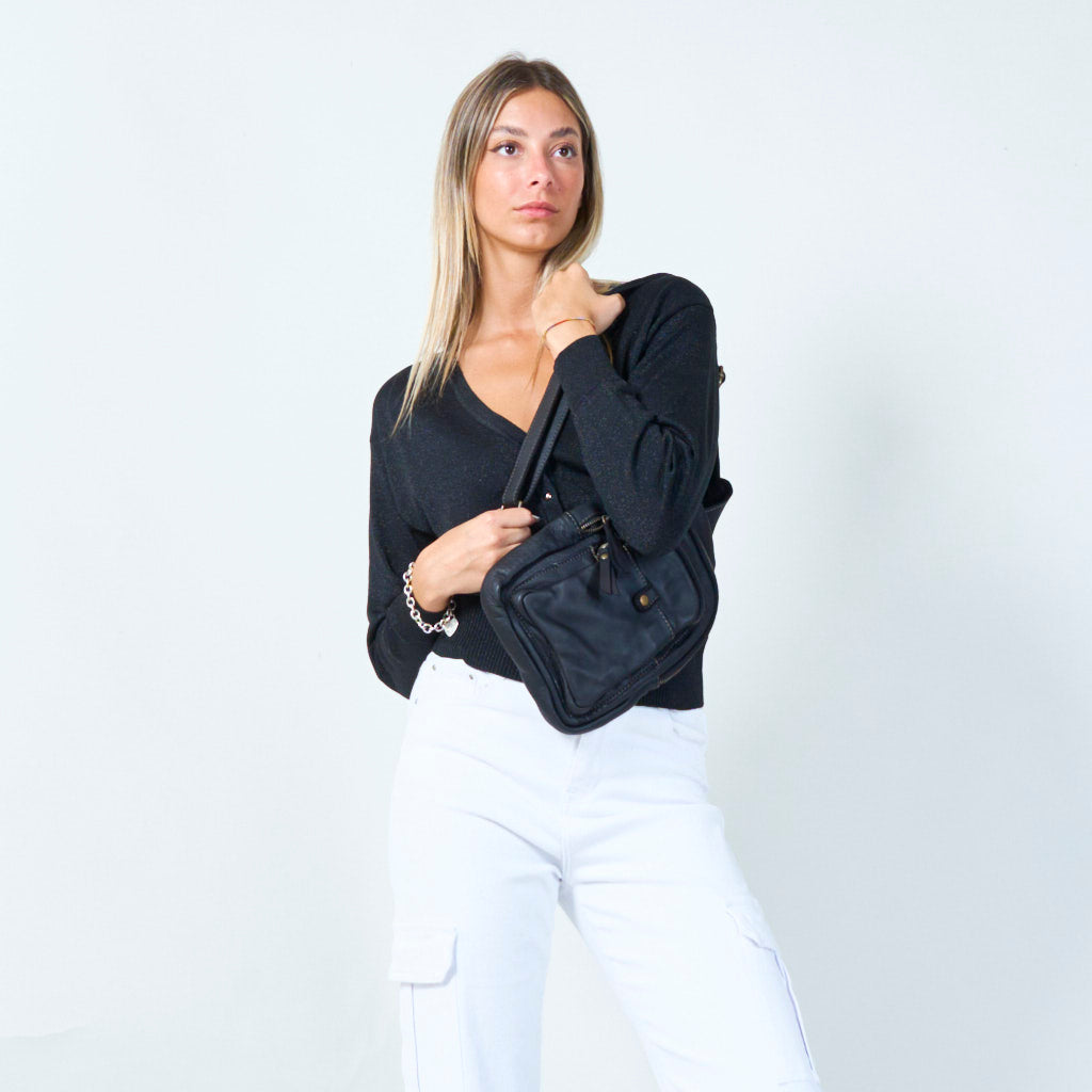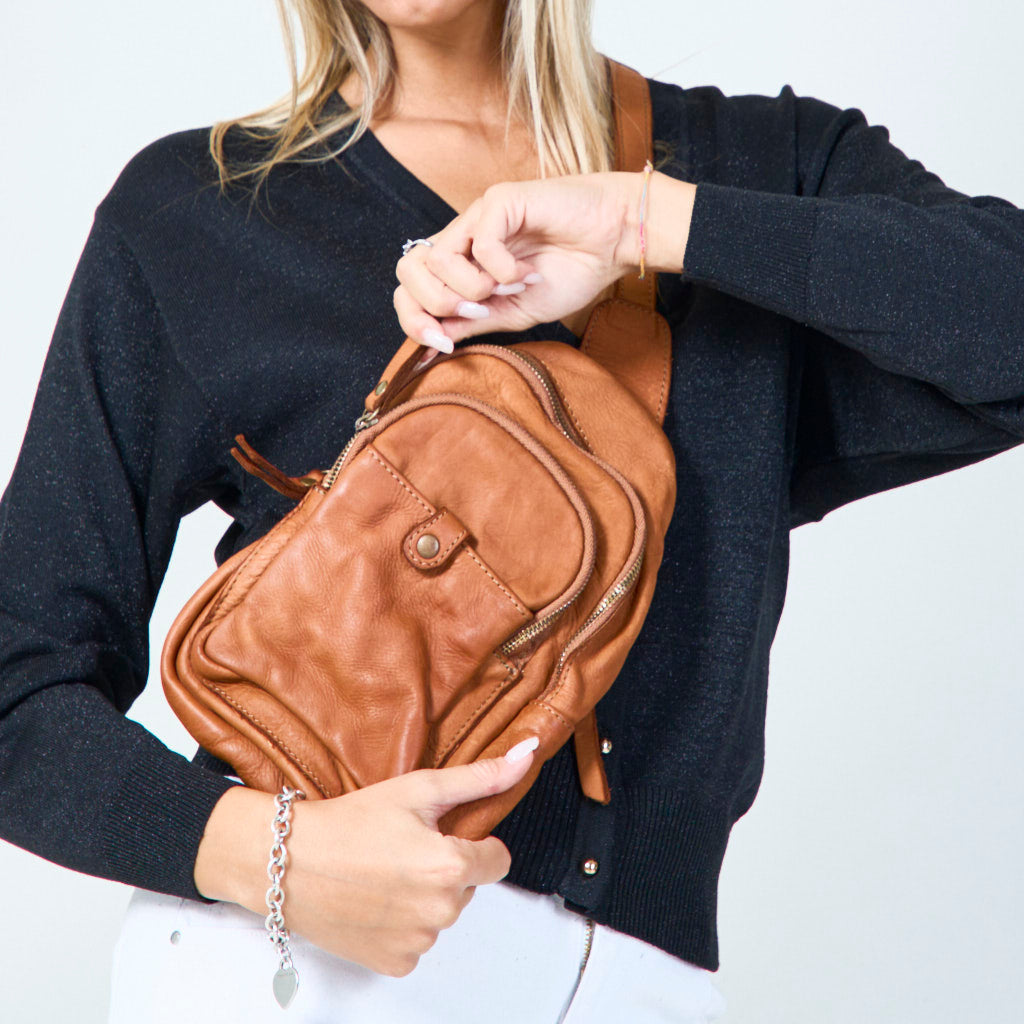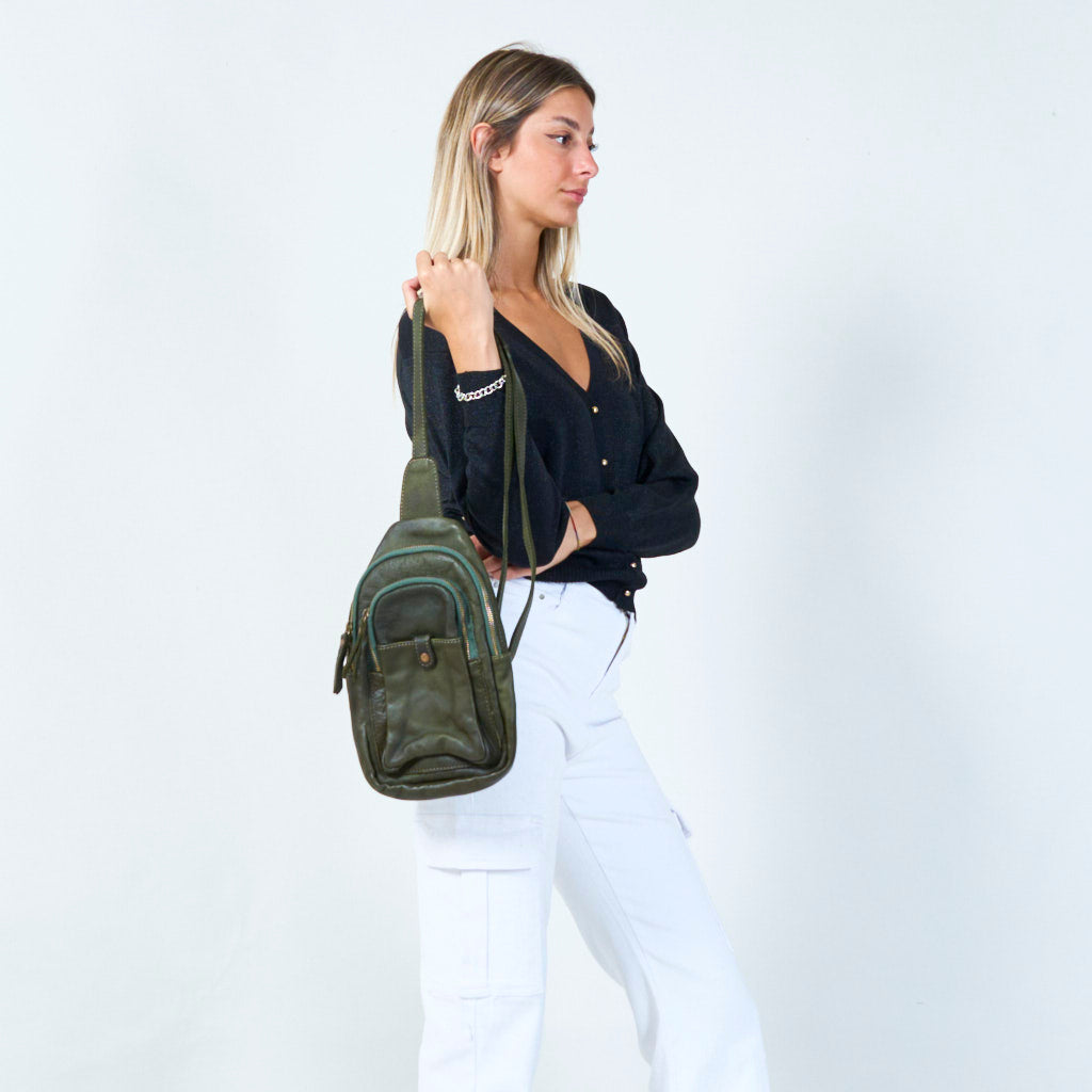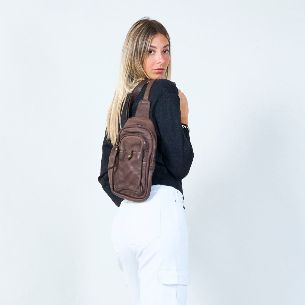 Bolso cruzado de cuero compacto con múltiples bolsillos al por mayor