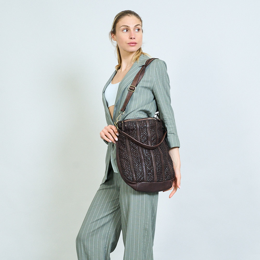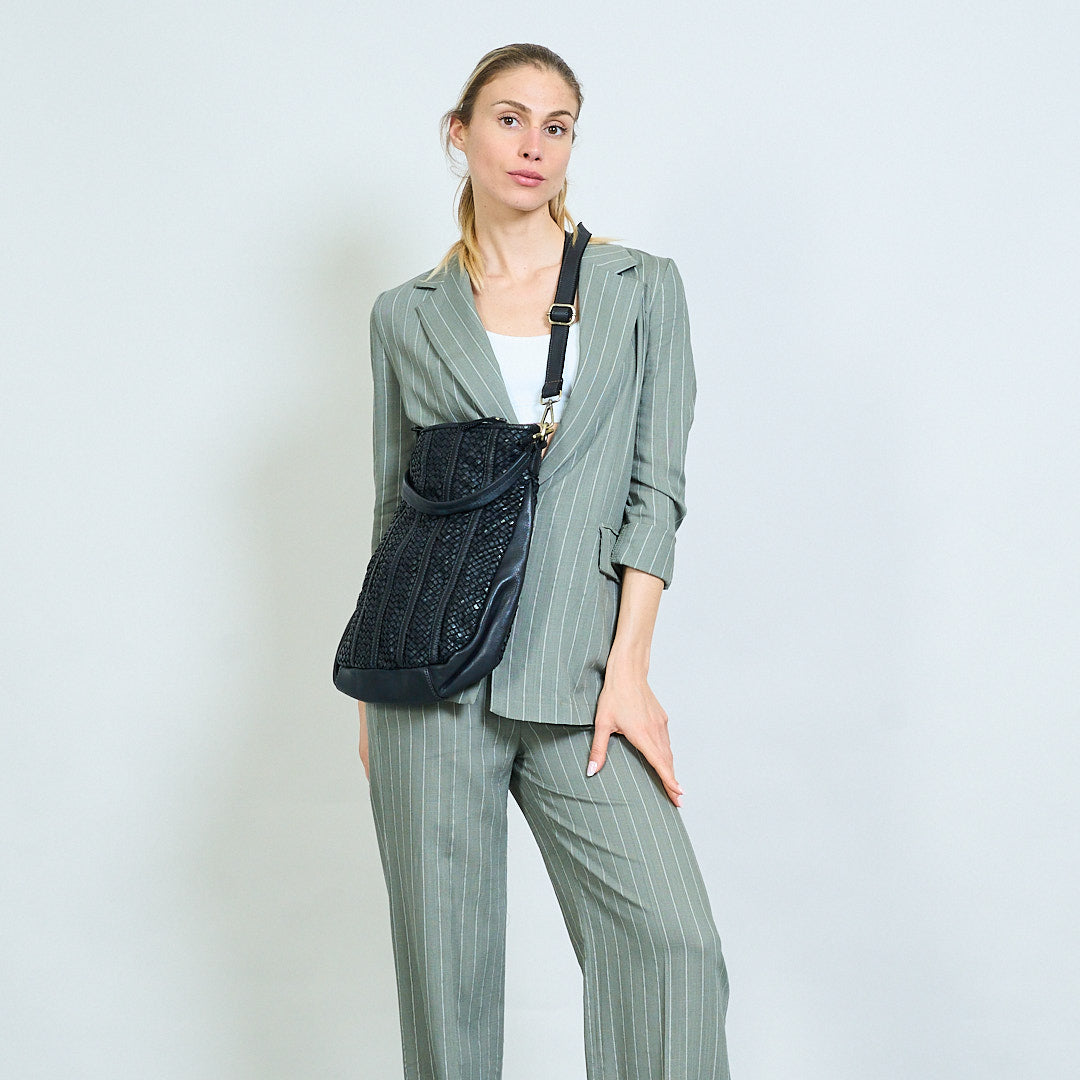 Bolso de hombro de cuerpo cruzado de tejido de panel vertical al por mayor