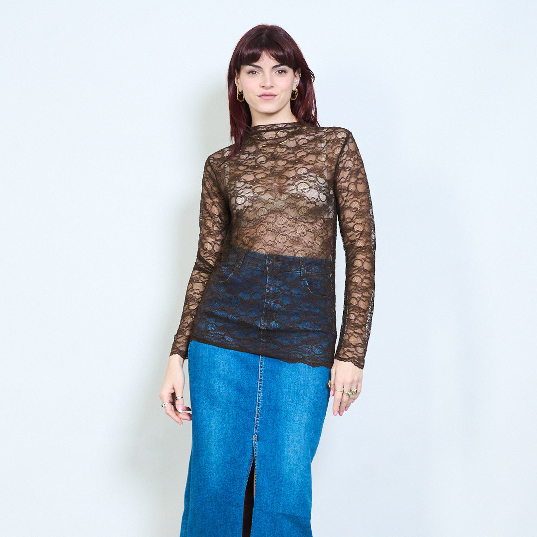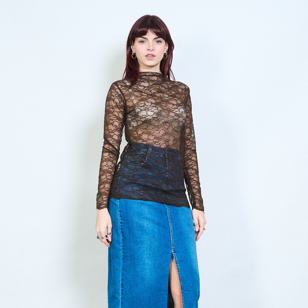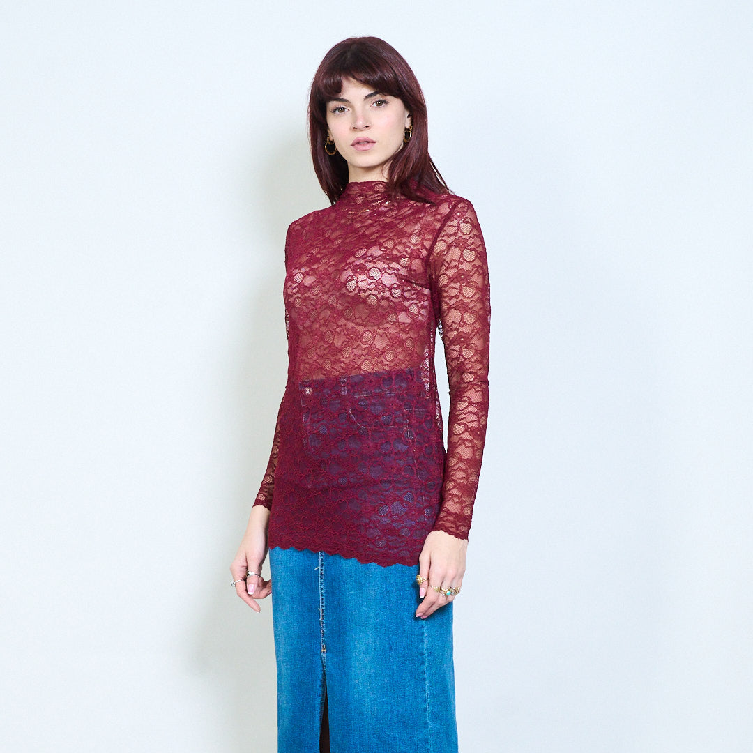 - Top transparente diseñado con un patrón de encaje floral integral