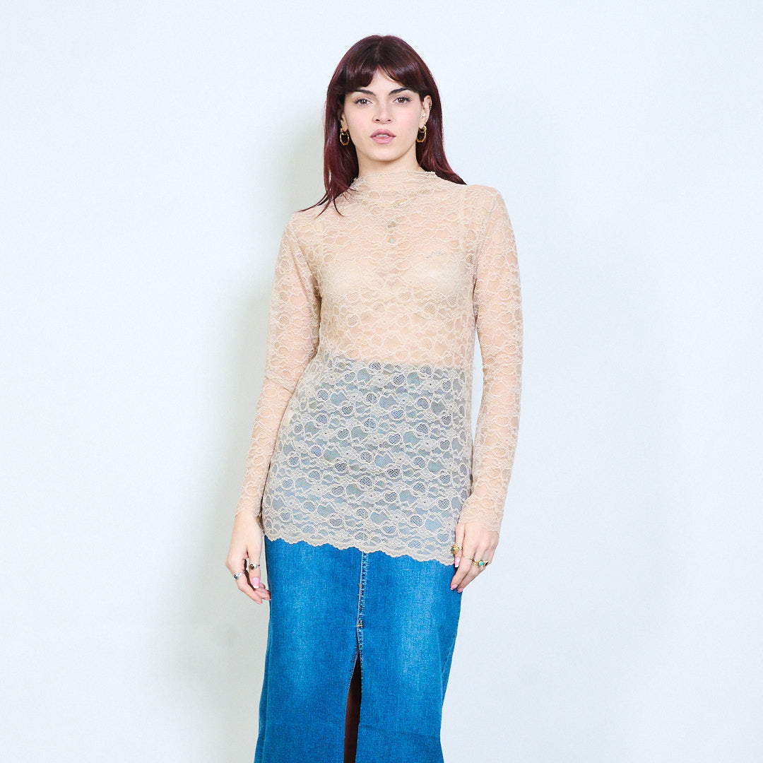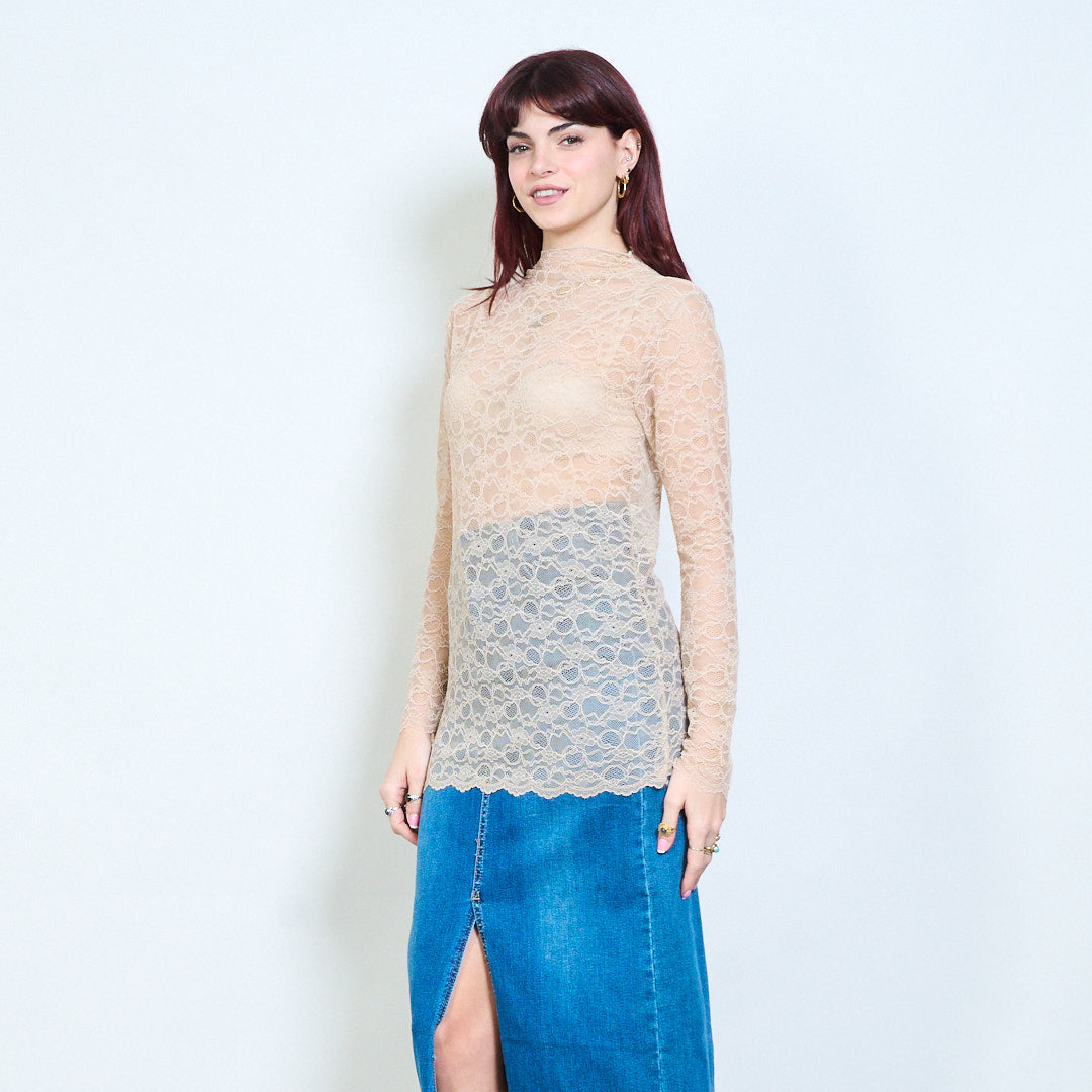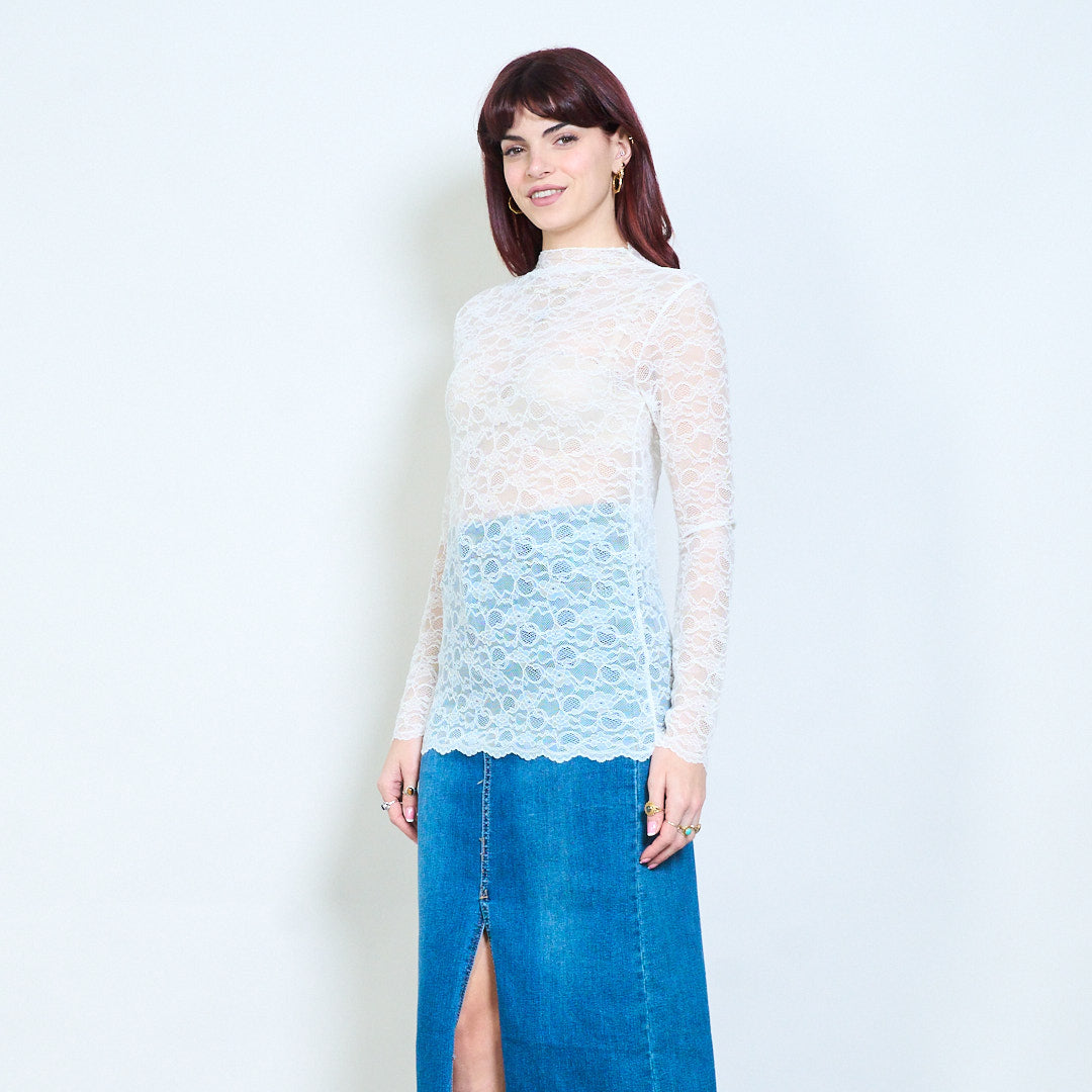 - Top transparente diseñado con un patrón de encaje floral integral