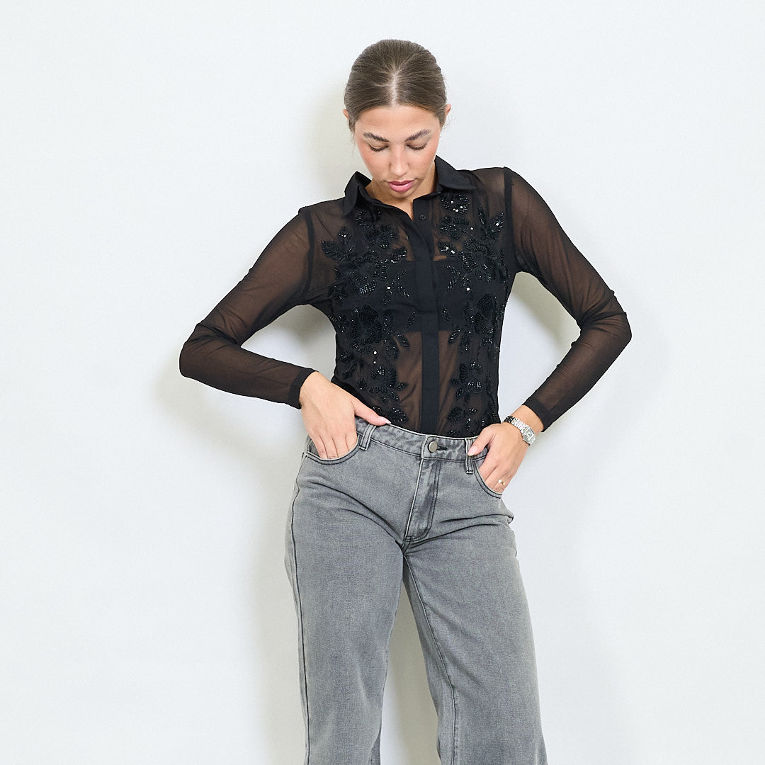 - Bodysuit de malla pura con bordado floral
