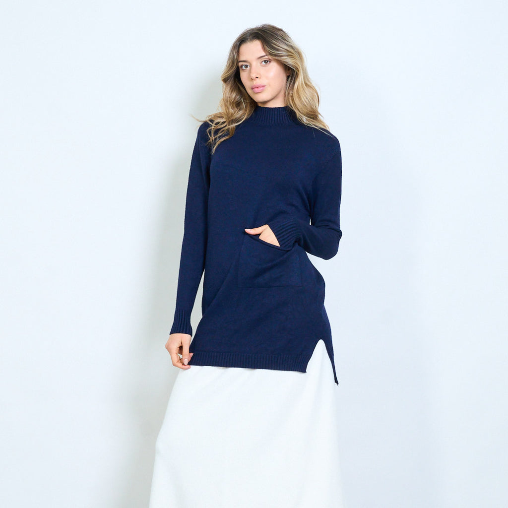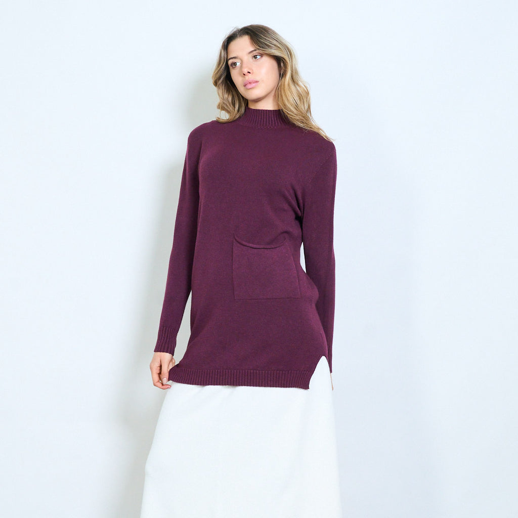 Jersey tejido cuello alto con bolsillo delantero al por mayor