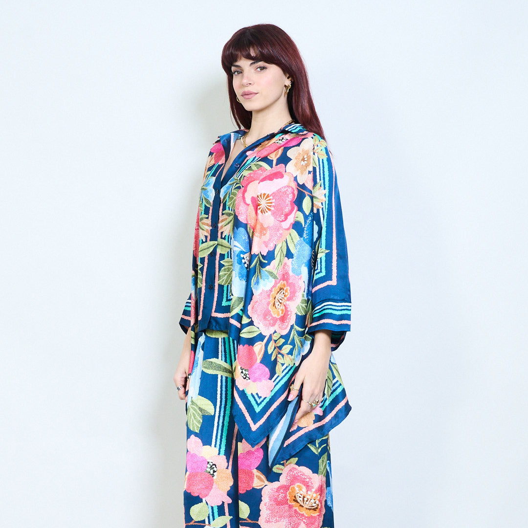 - Diseñado con cuello clásico y cierre frontal con botones completos.