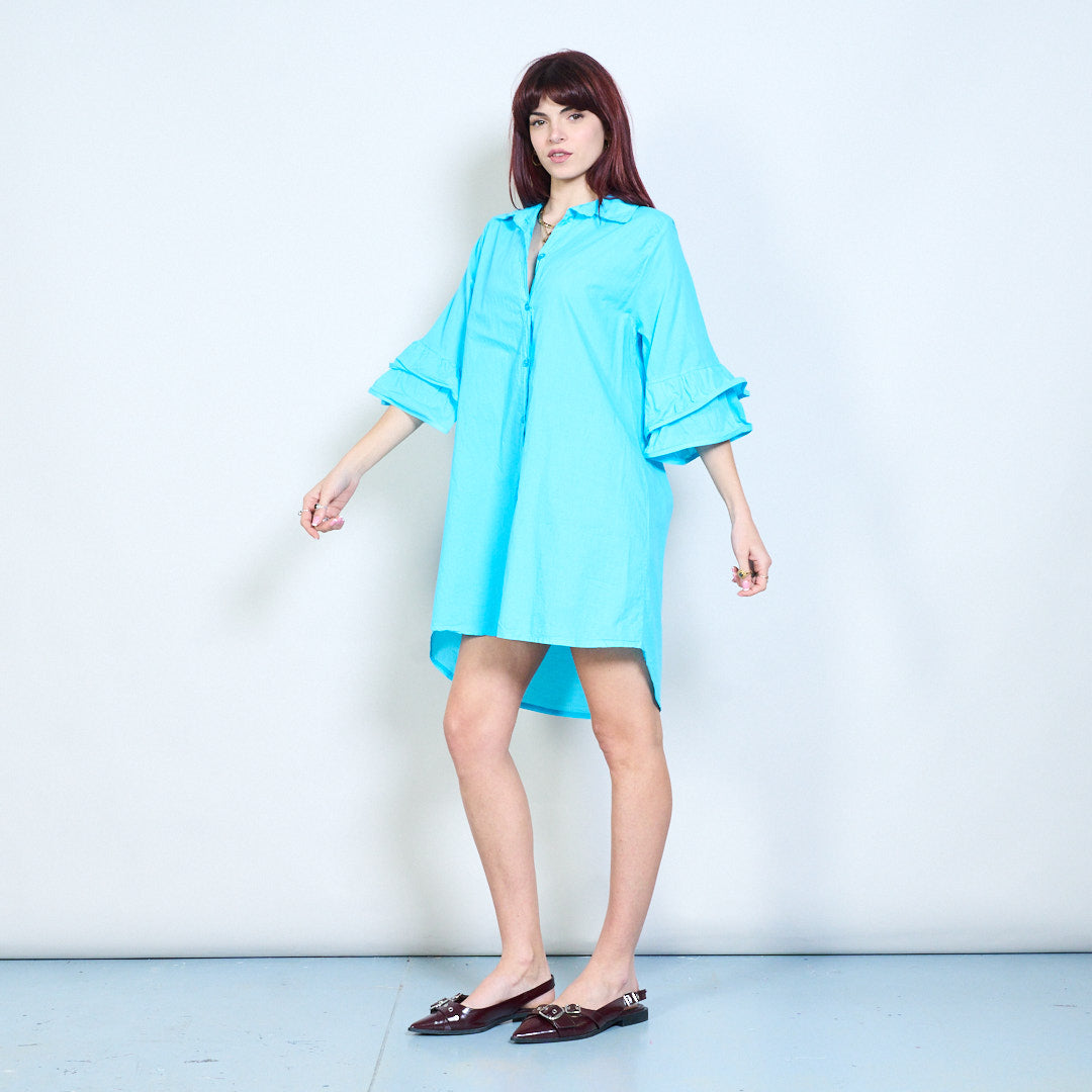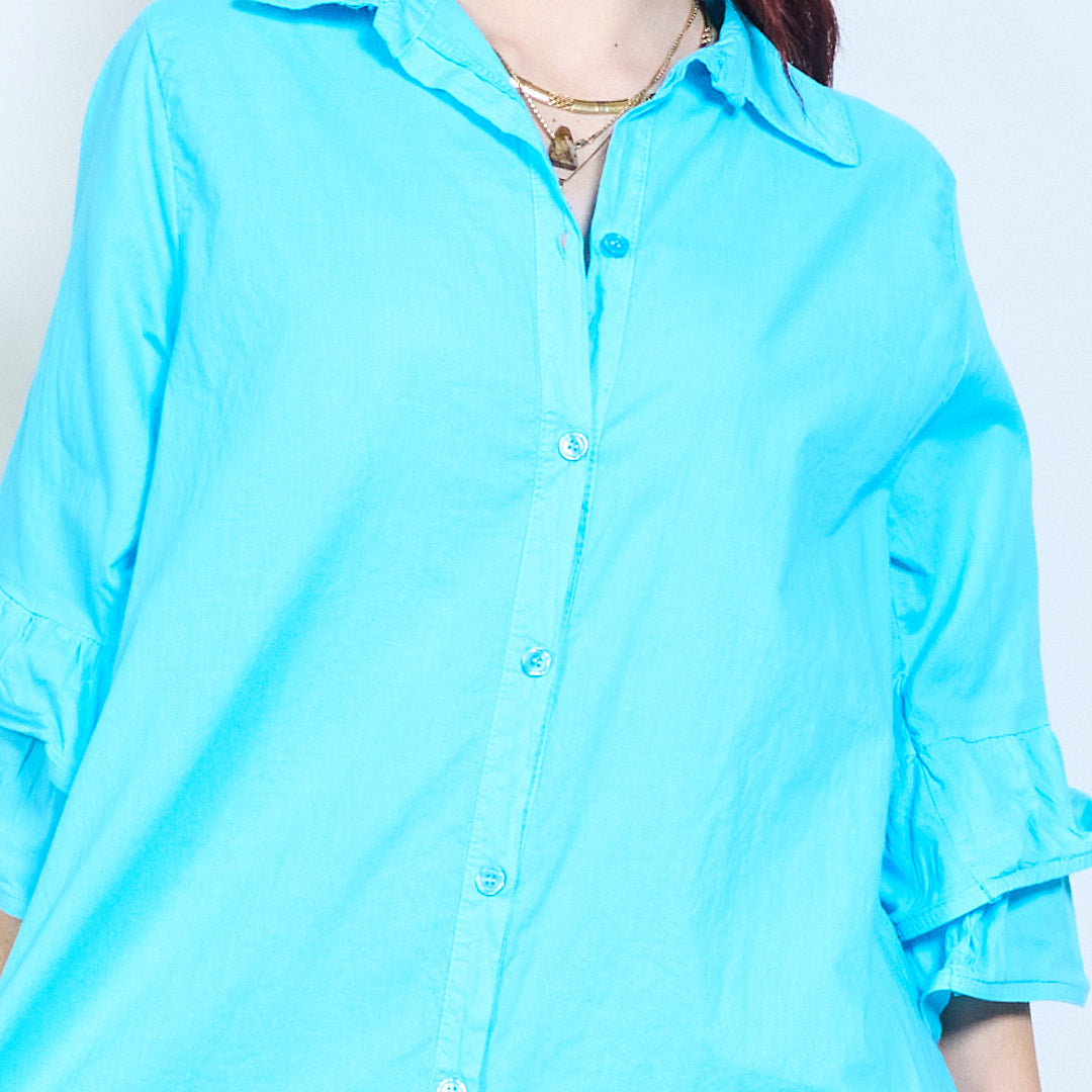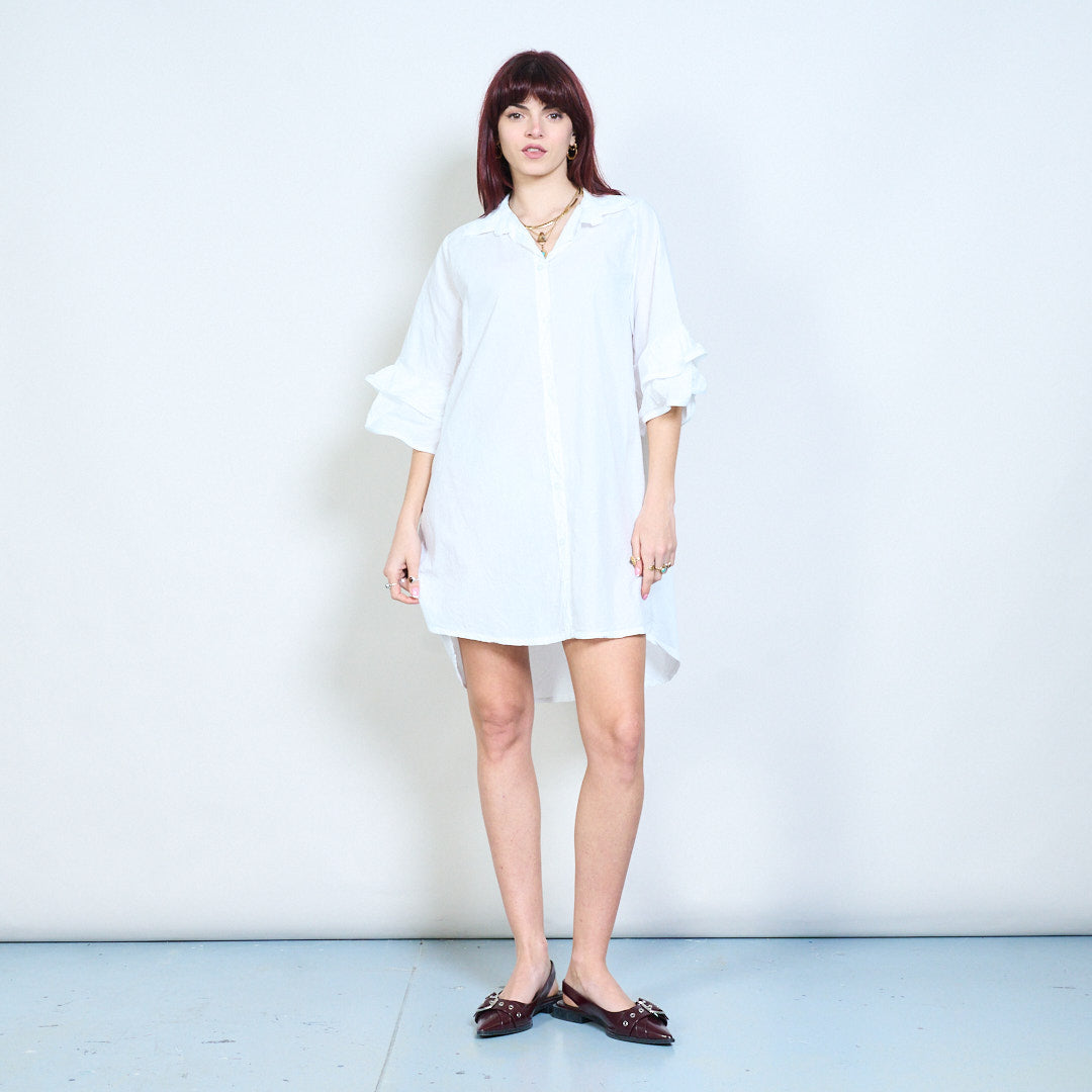 Blusa larga con cuello abotonado y manga con volantes y ajuste relajado al por mayor