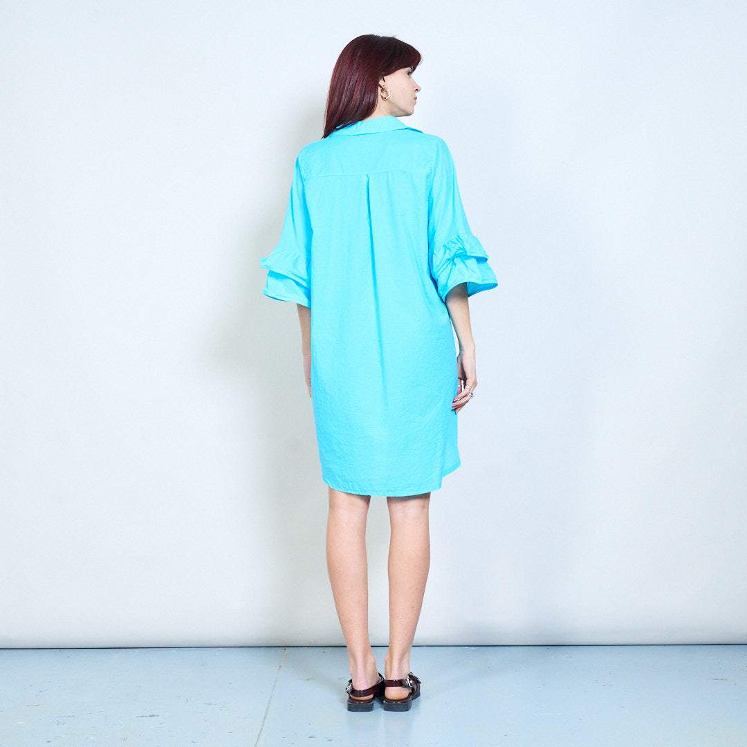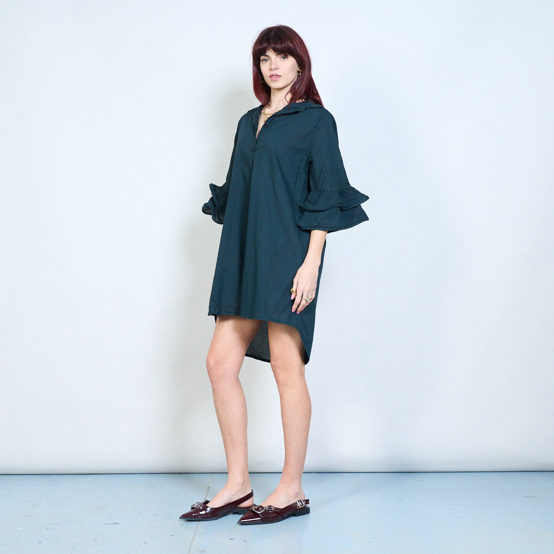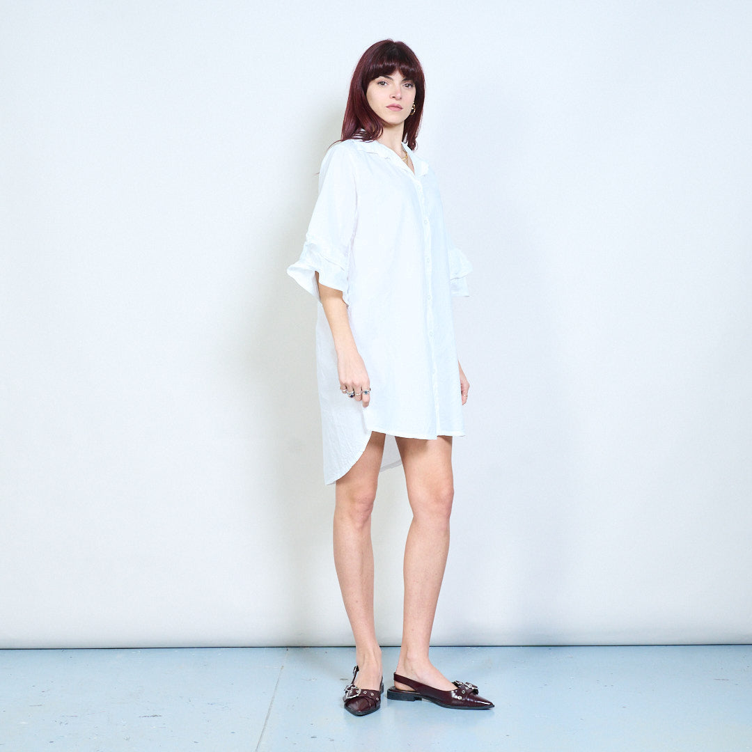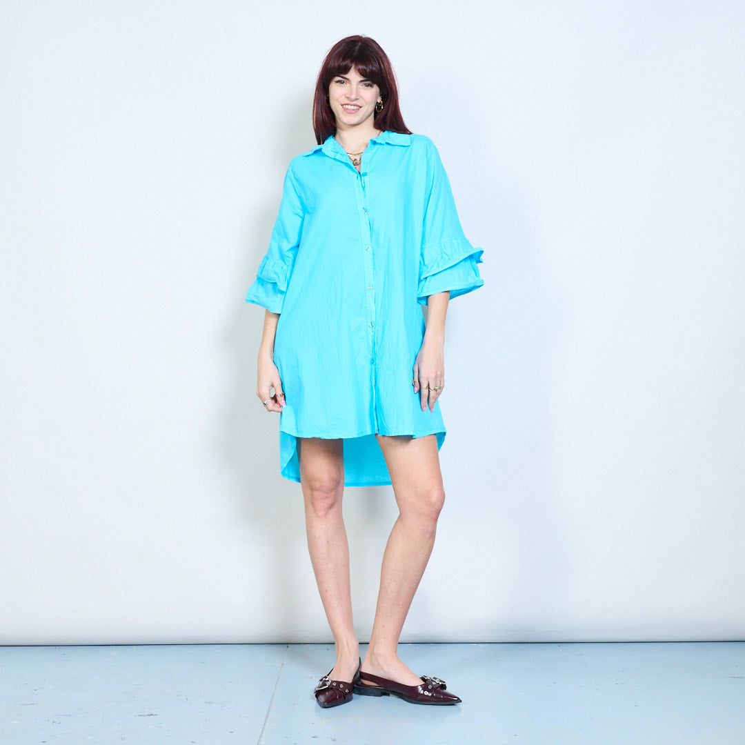 Blusa larga con cuello abotonado y manga con volantes y ajuste relajado al por mayor