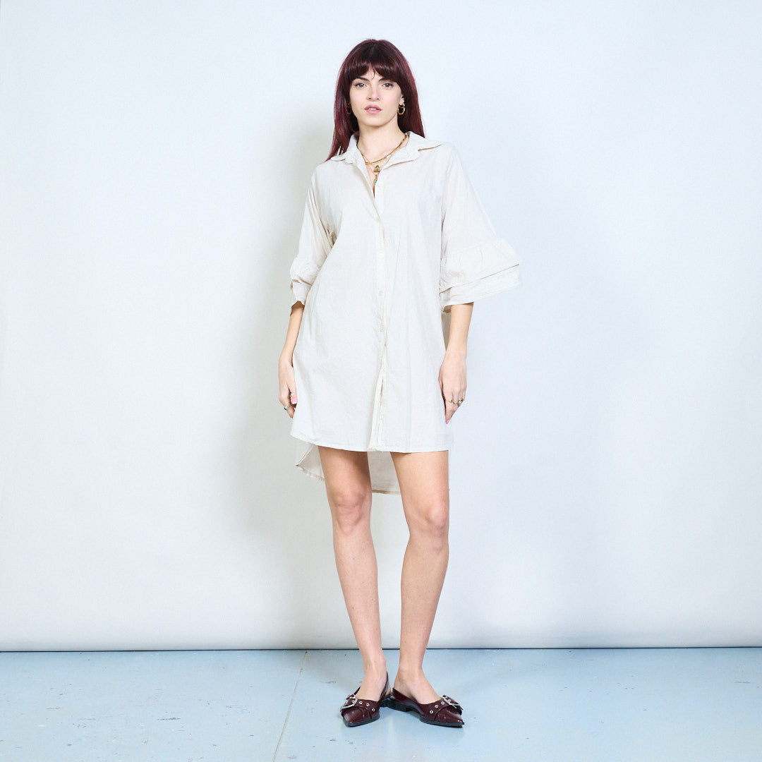 - Mangas enrollables con pestaña con botones para un estilo ajustable.