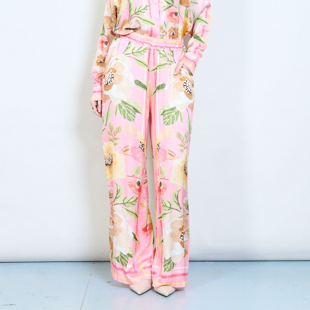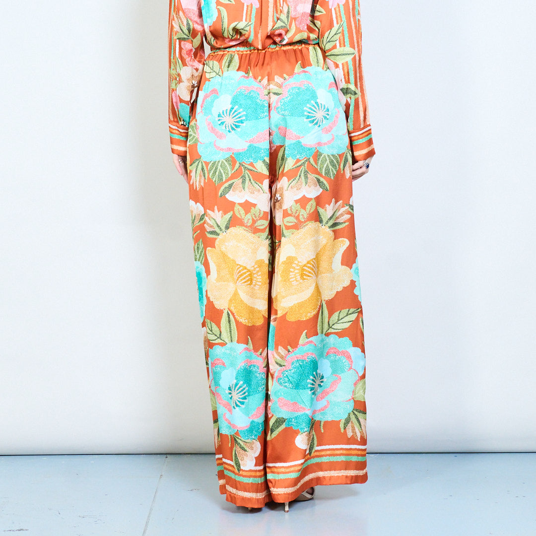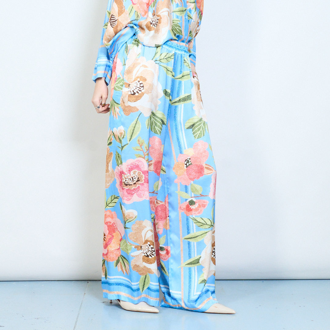 Pantalón ancho con cintura elástica y estampado floral a rayas al por mayor