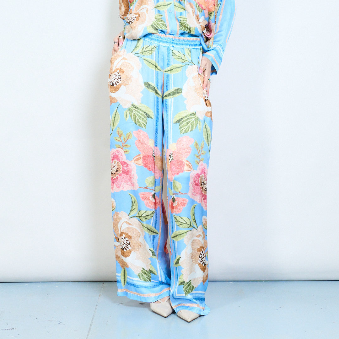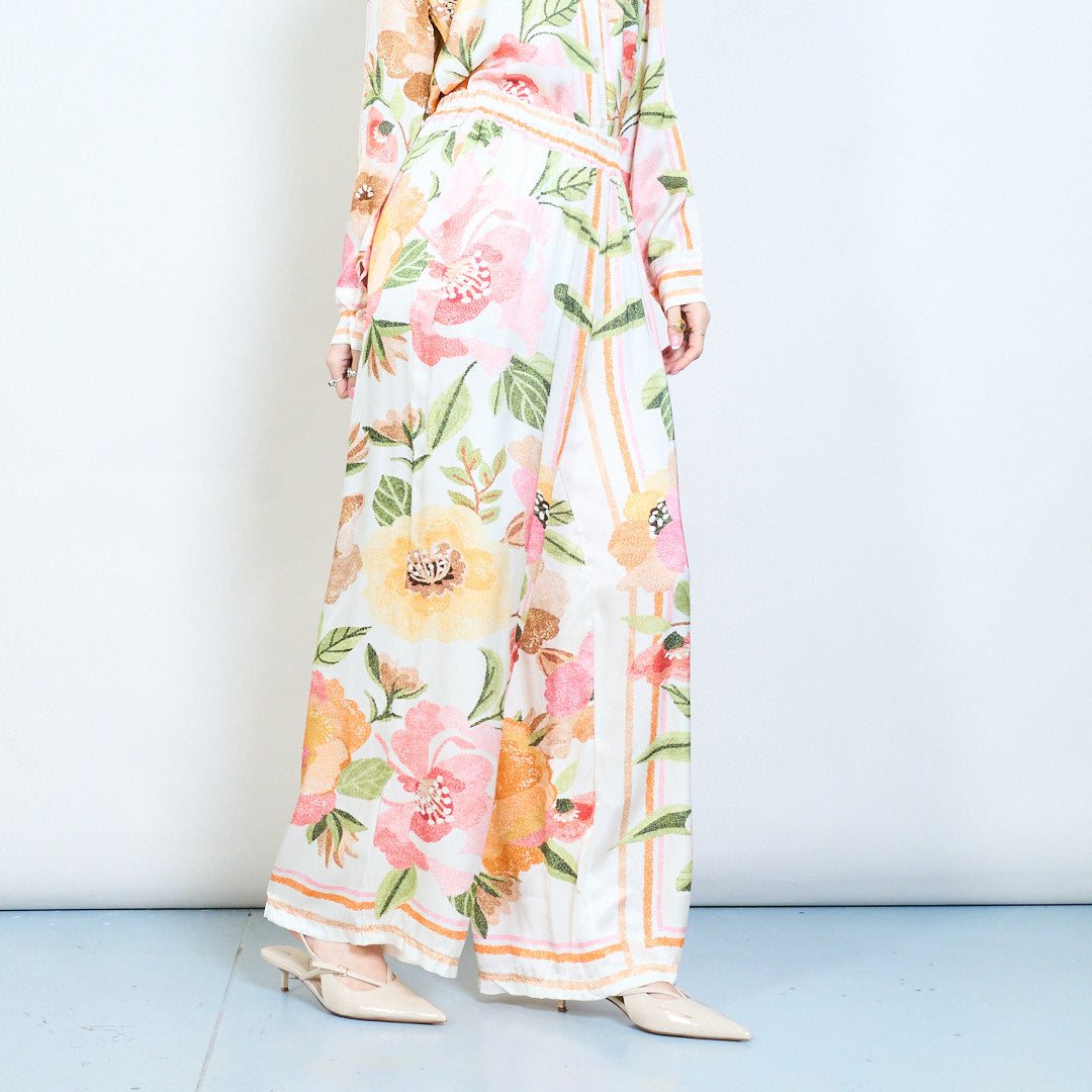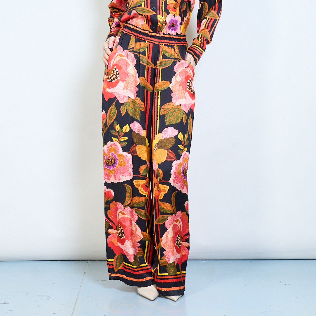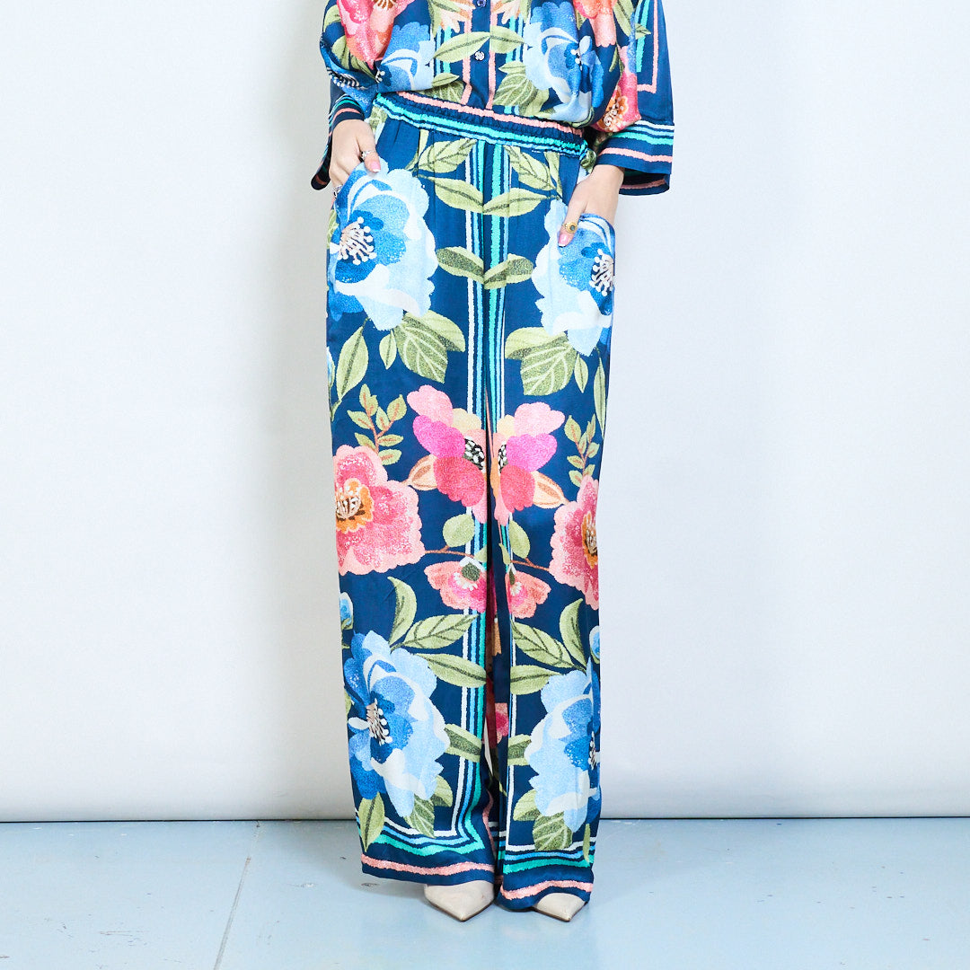 Pantalón ancho con cintura elástica y estampado floral a rayas al por mayor