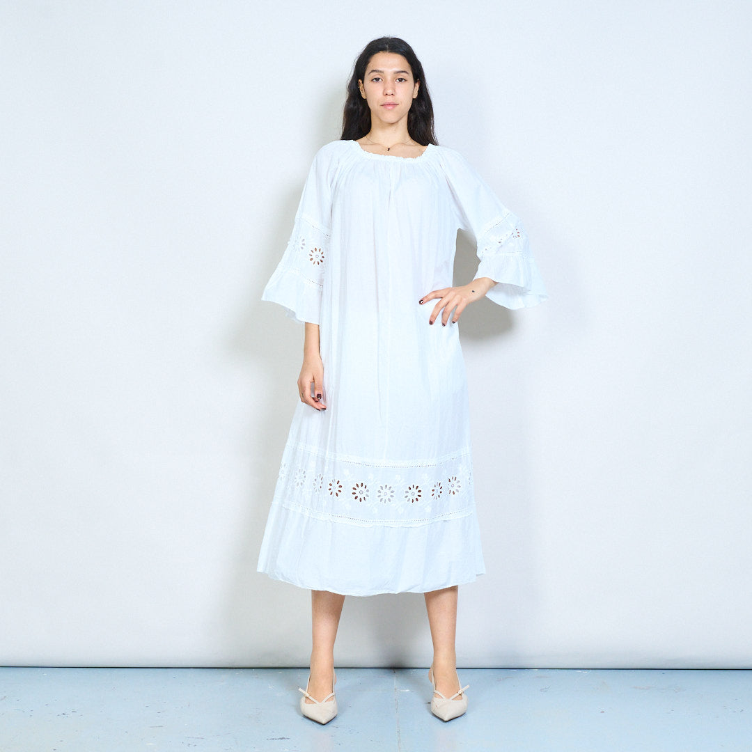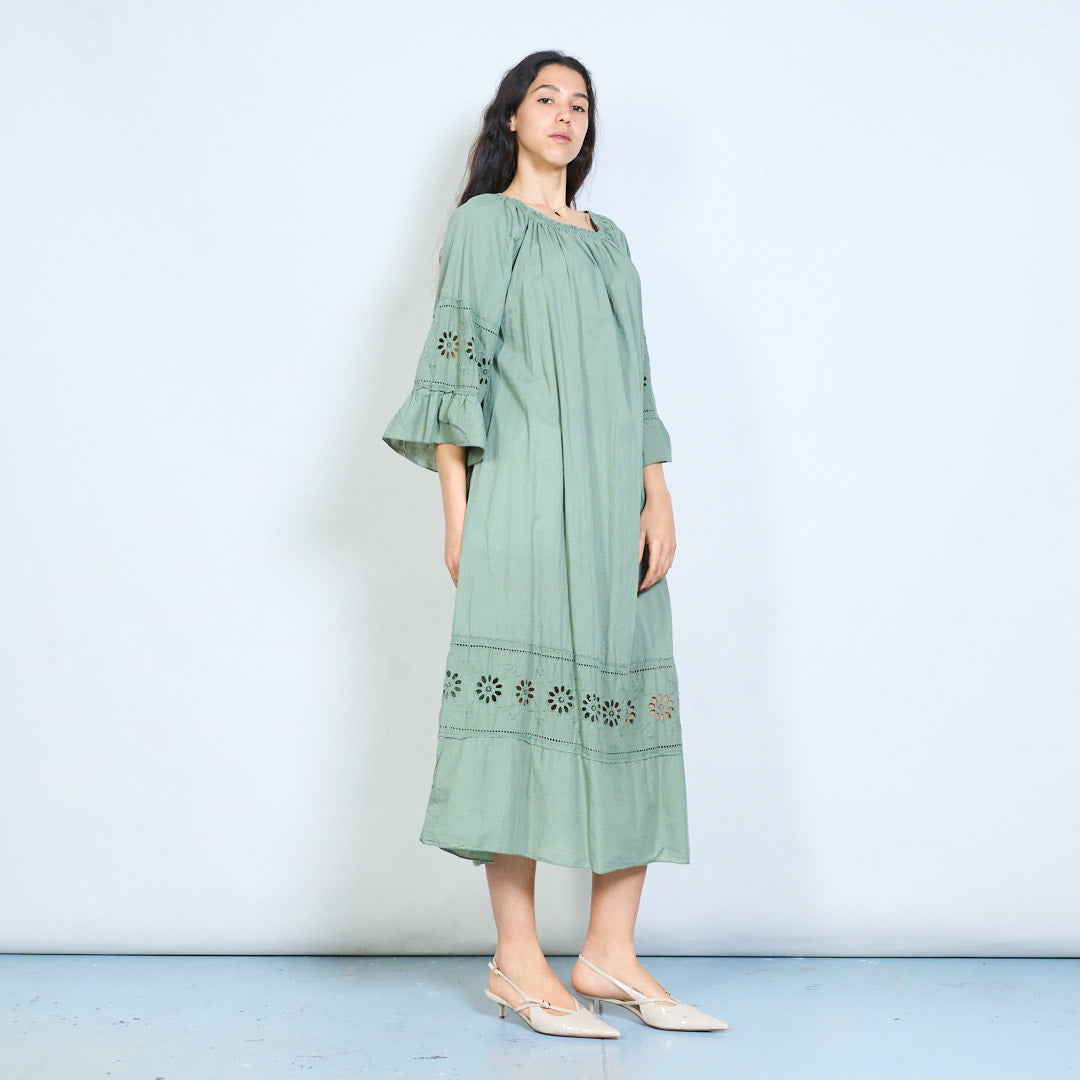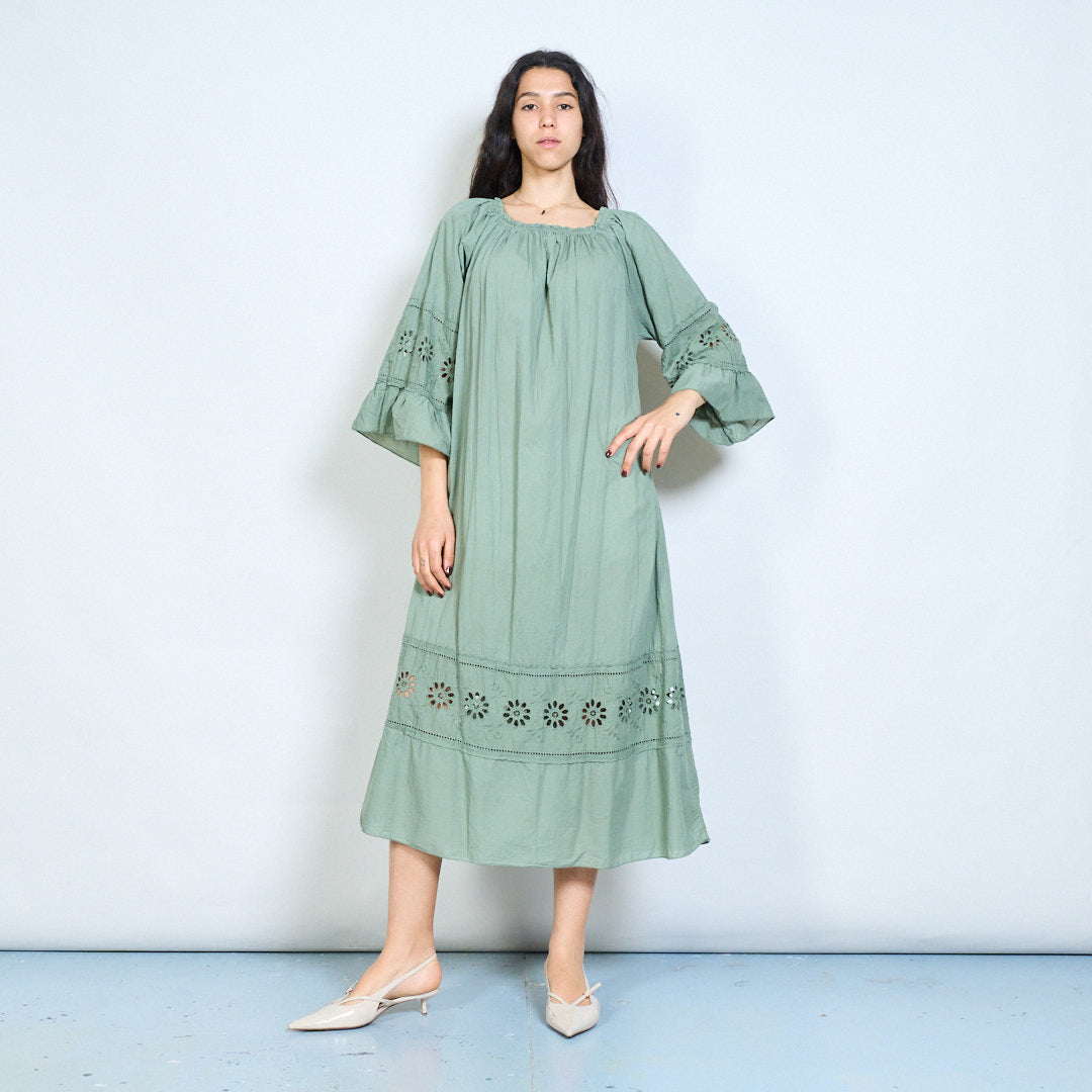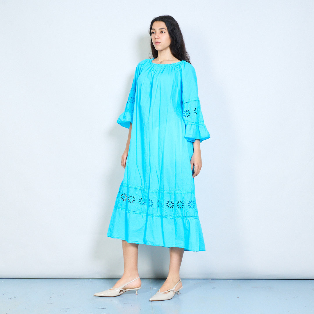 Vestido midi con hombros descubiertos y ribete de bordado inglés al por mayor
