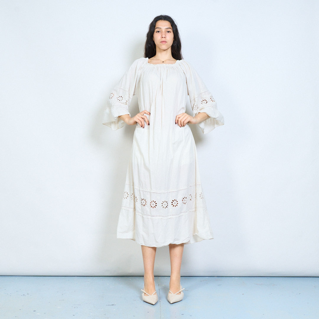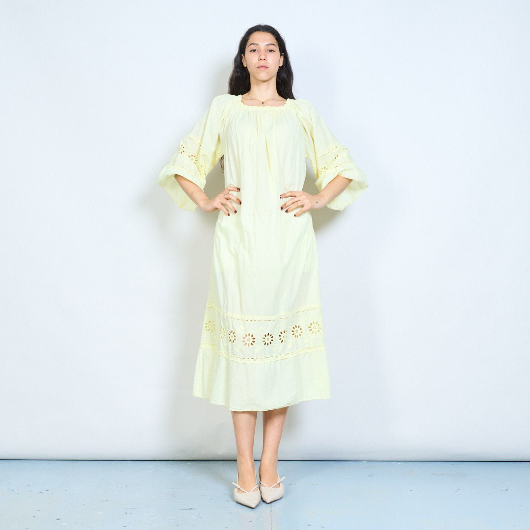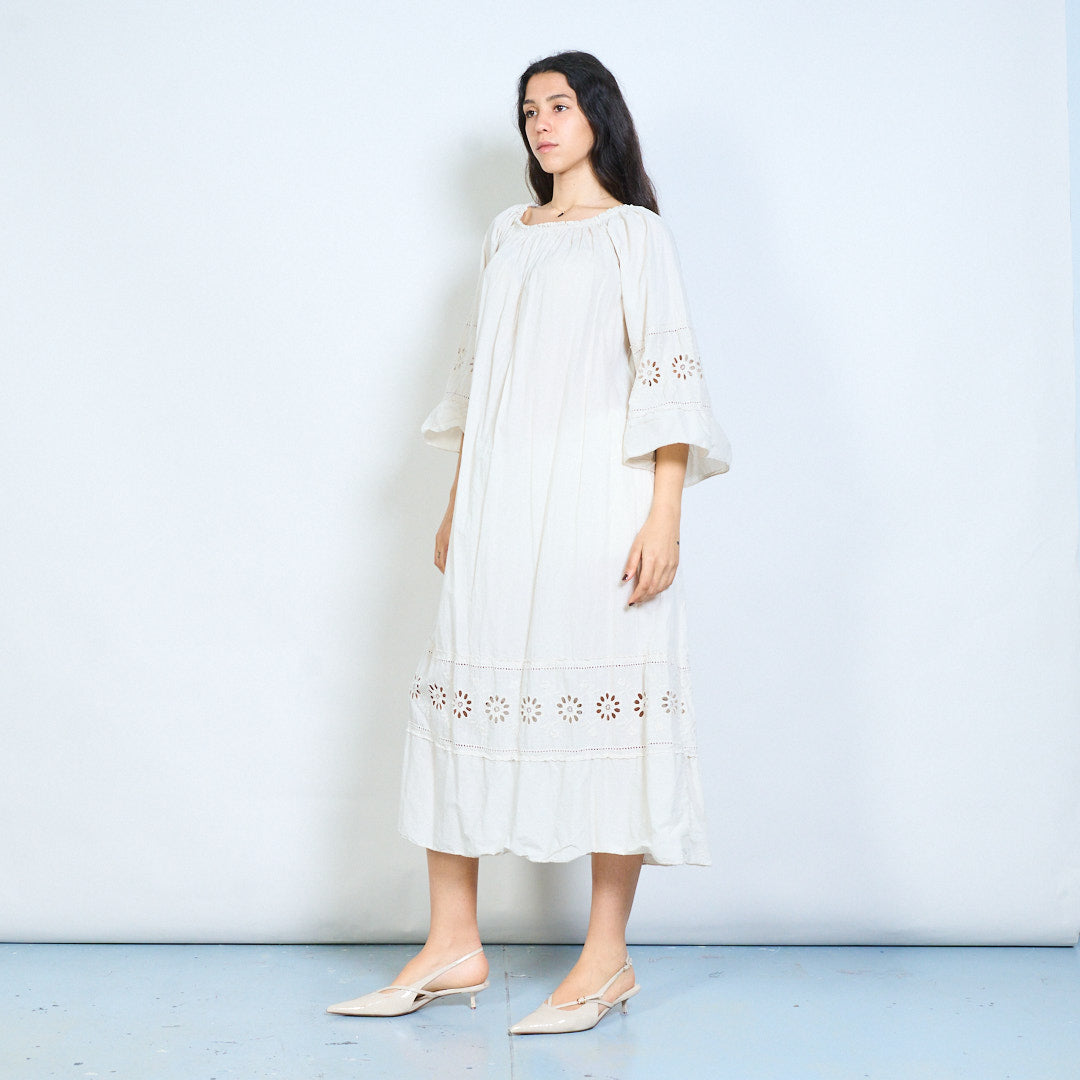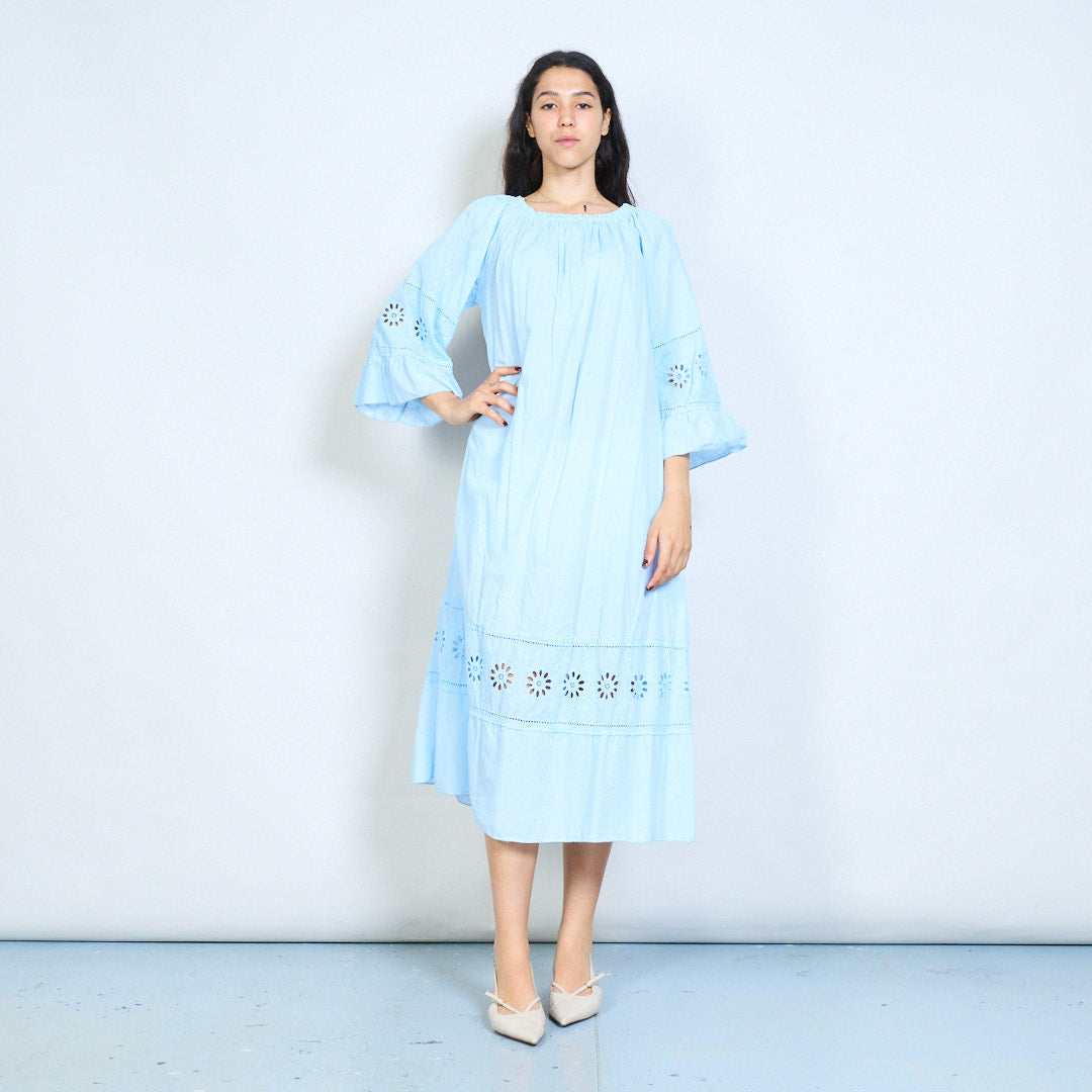Vestido midi con hombros descubiertos y ribete de bordado inglés al por mayor
