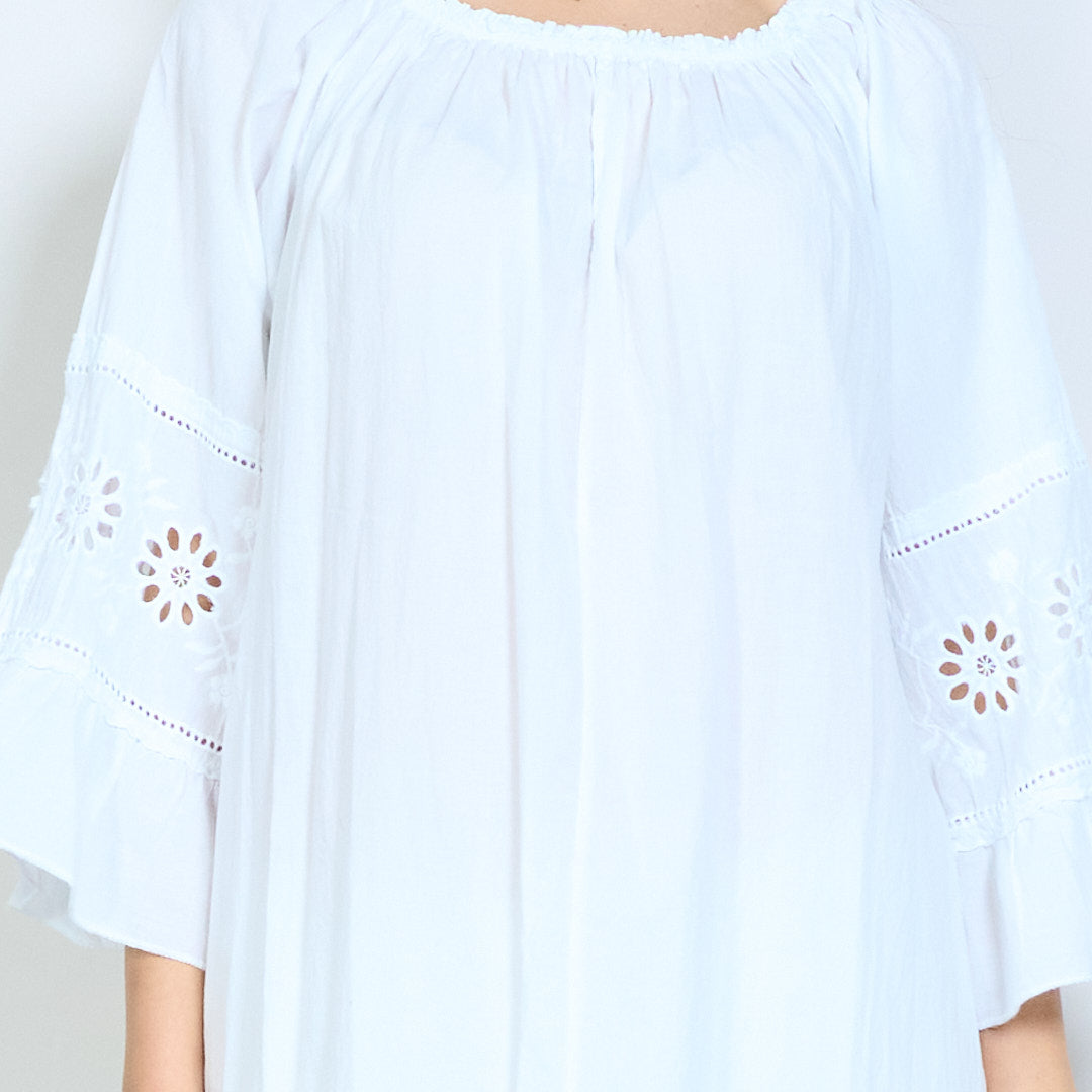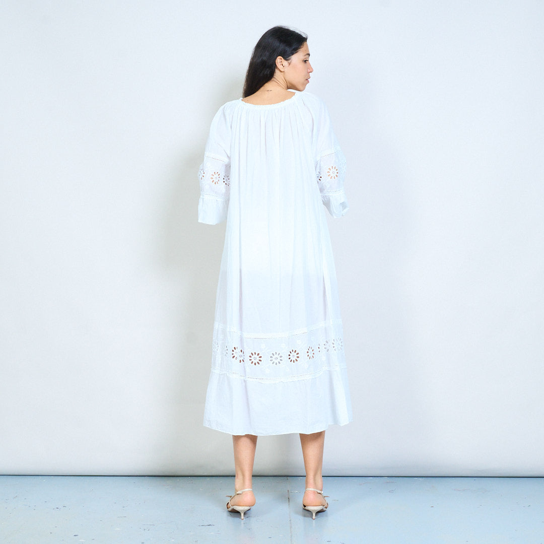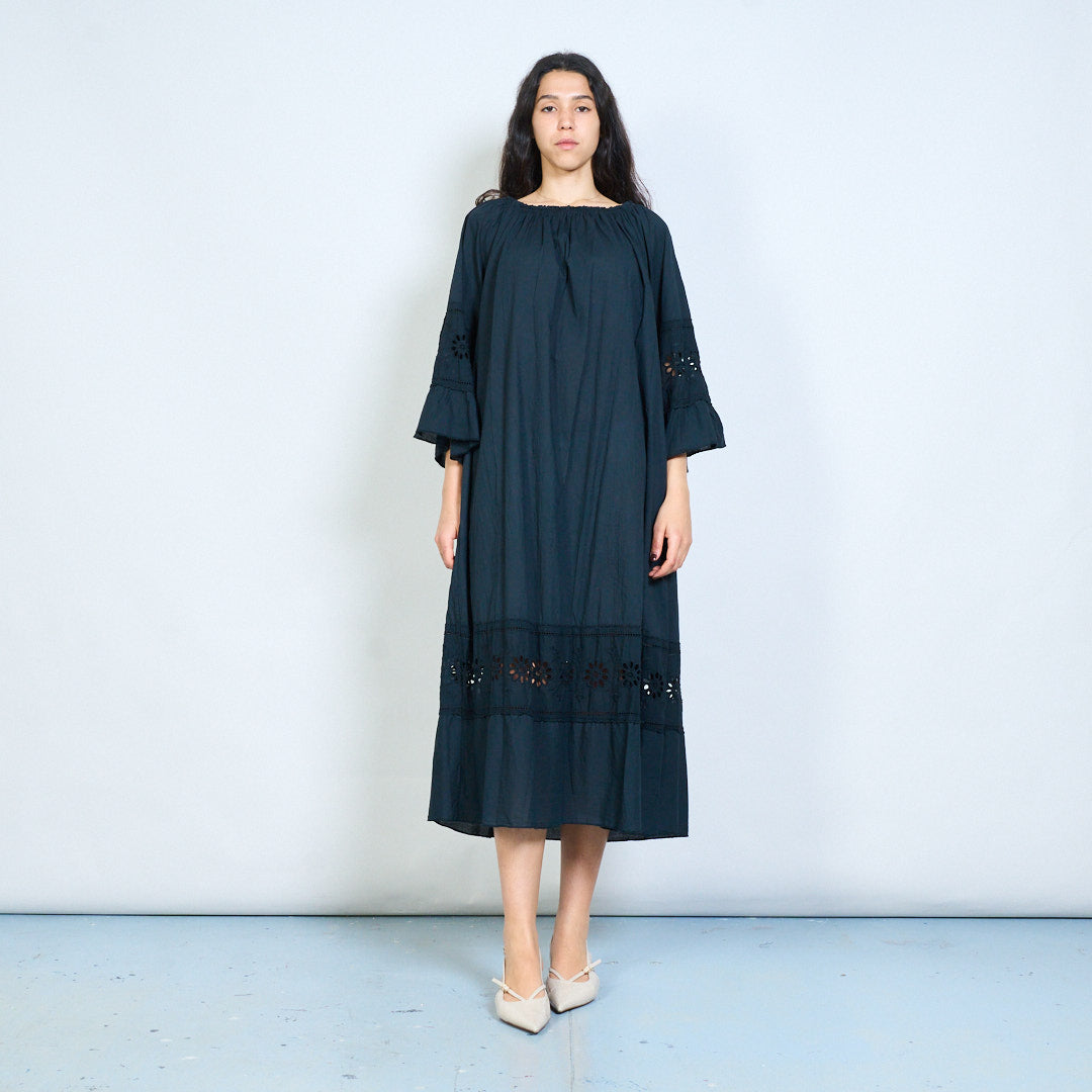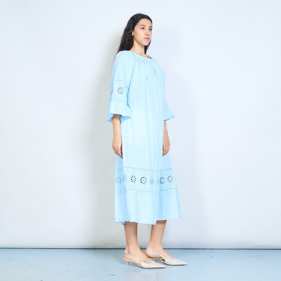 Vestido midi con hombros descubiertos y ribete de bordado inglés al por mayor