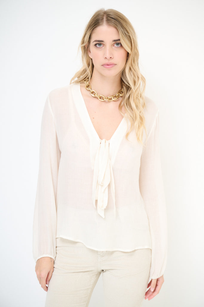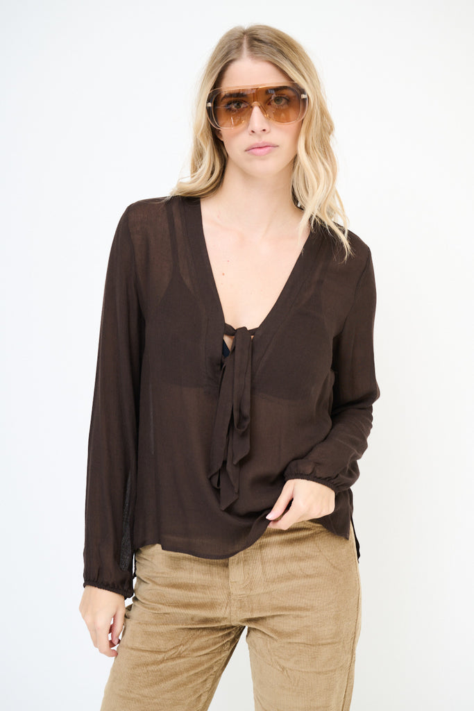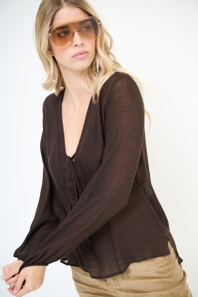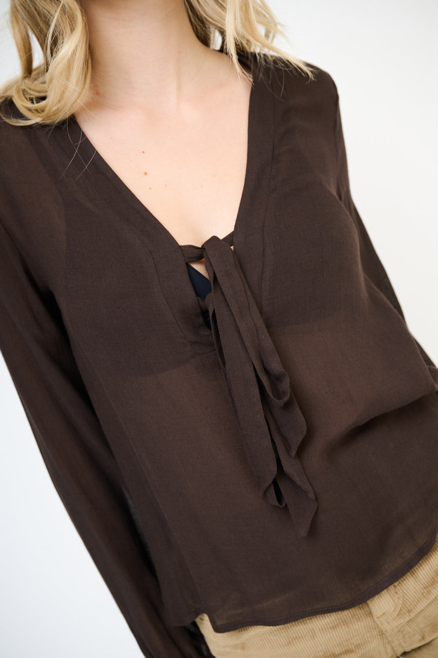 Blusa de gasa fluida con escote de pajarita al por mayor