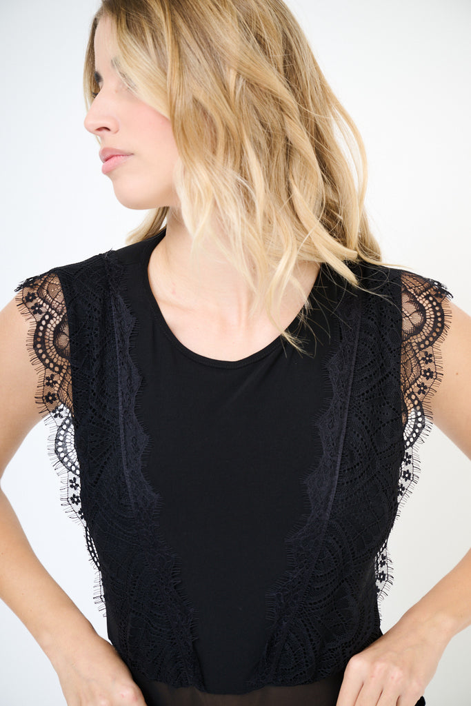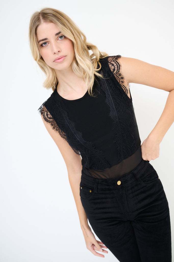 Body sin mangas con panel transparente y ribete de encaje al por mayor